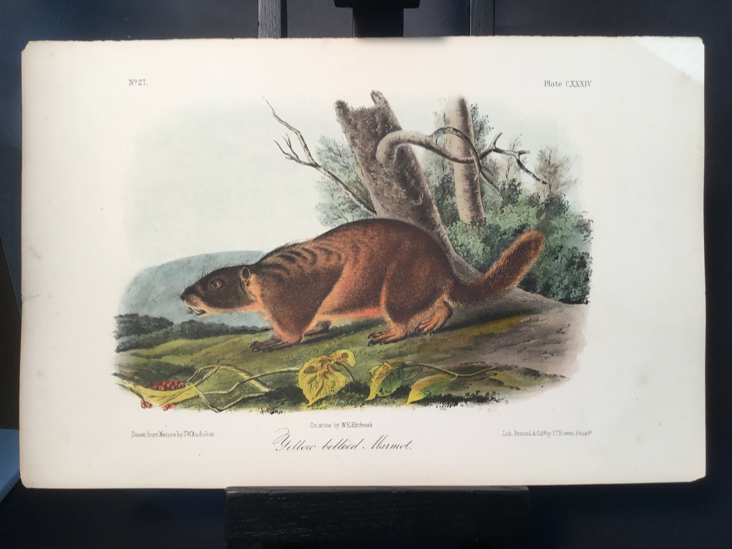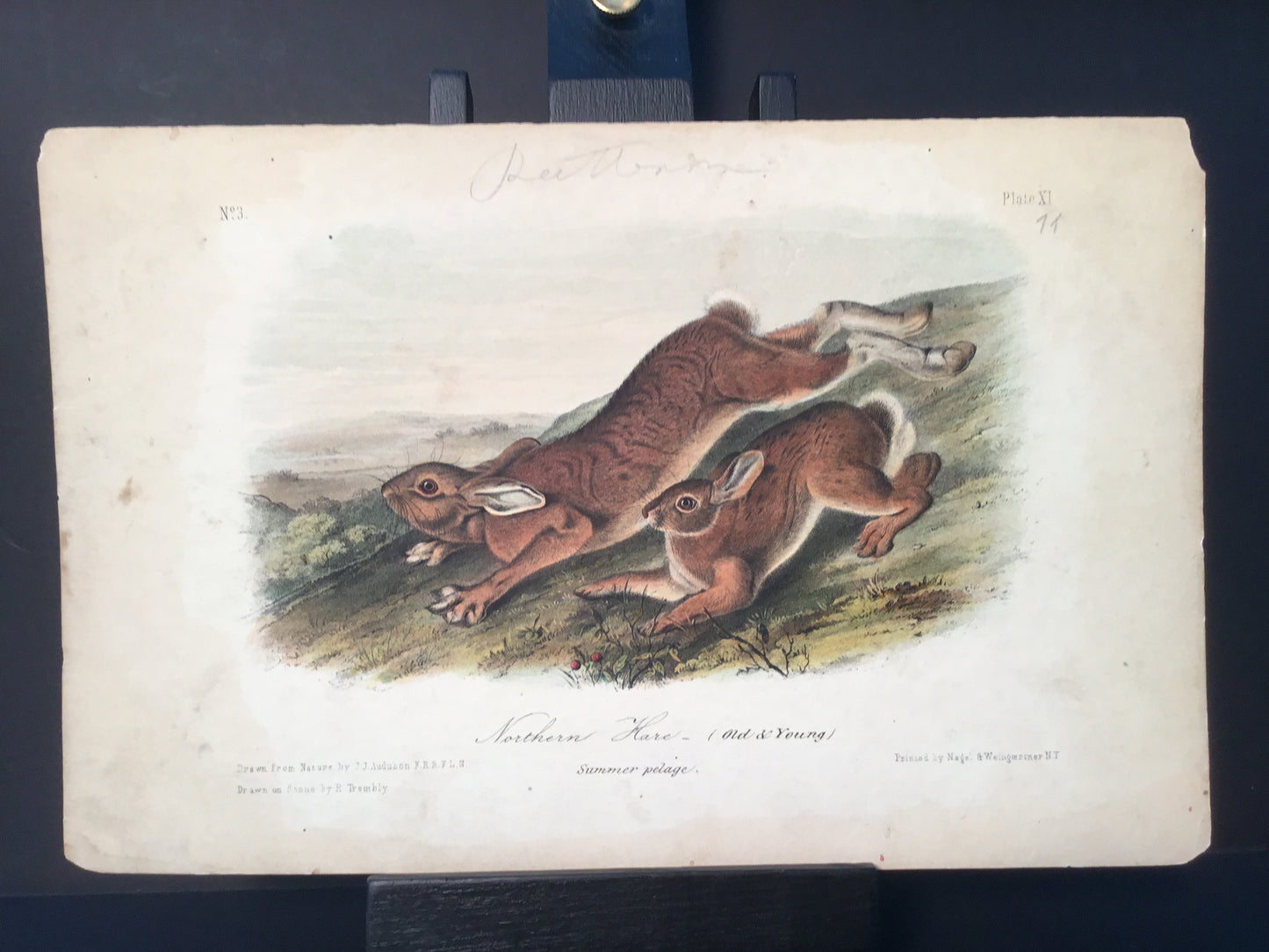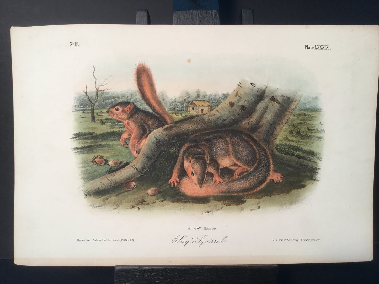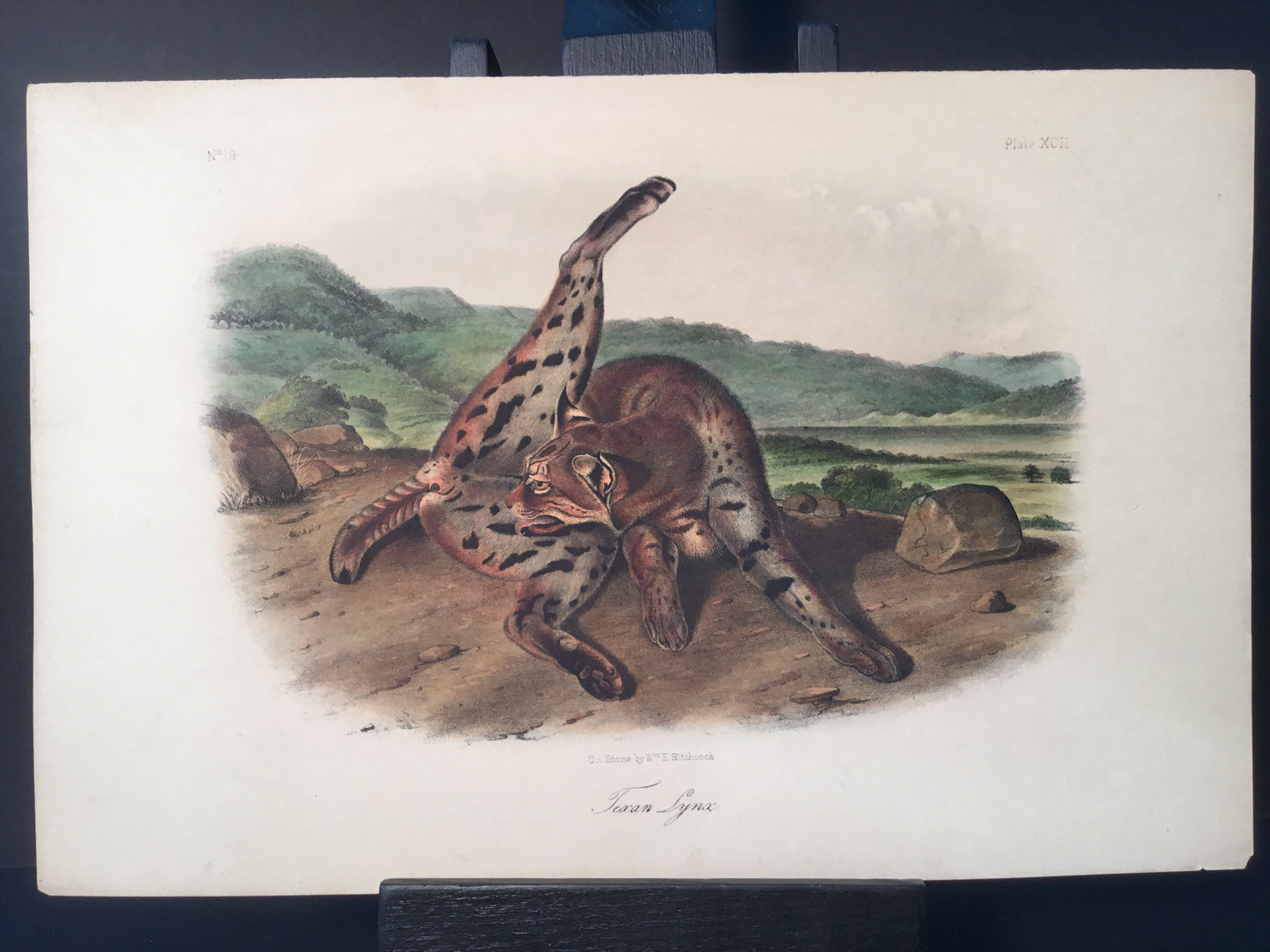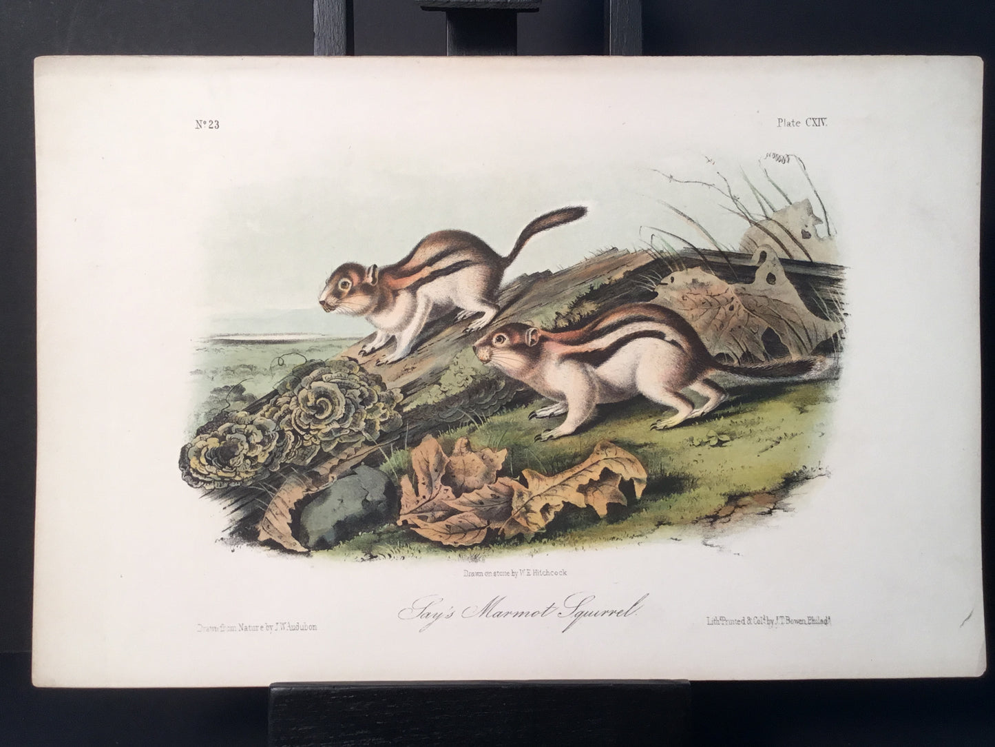 Audubon's sons saw the need to reduce the size of the Imperials, and beginning in 1849, the octavo edition of The Quadrupeds of North America was published in three volumes. Volume 1 was followed in 1851 with the second volume, and the final, the third volume was published in 1854. Between 1,999 and 2,004 sets were published in this first edition. The size for these editions was about 6 1/2 x 10 1/2 inches.
