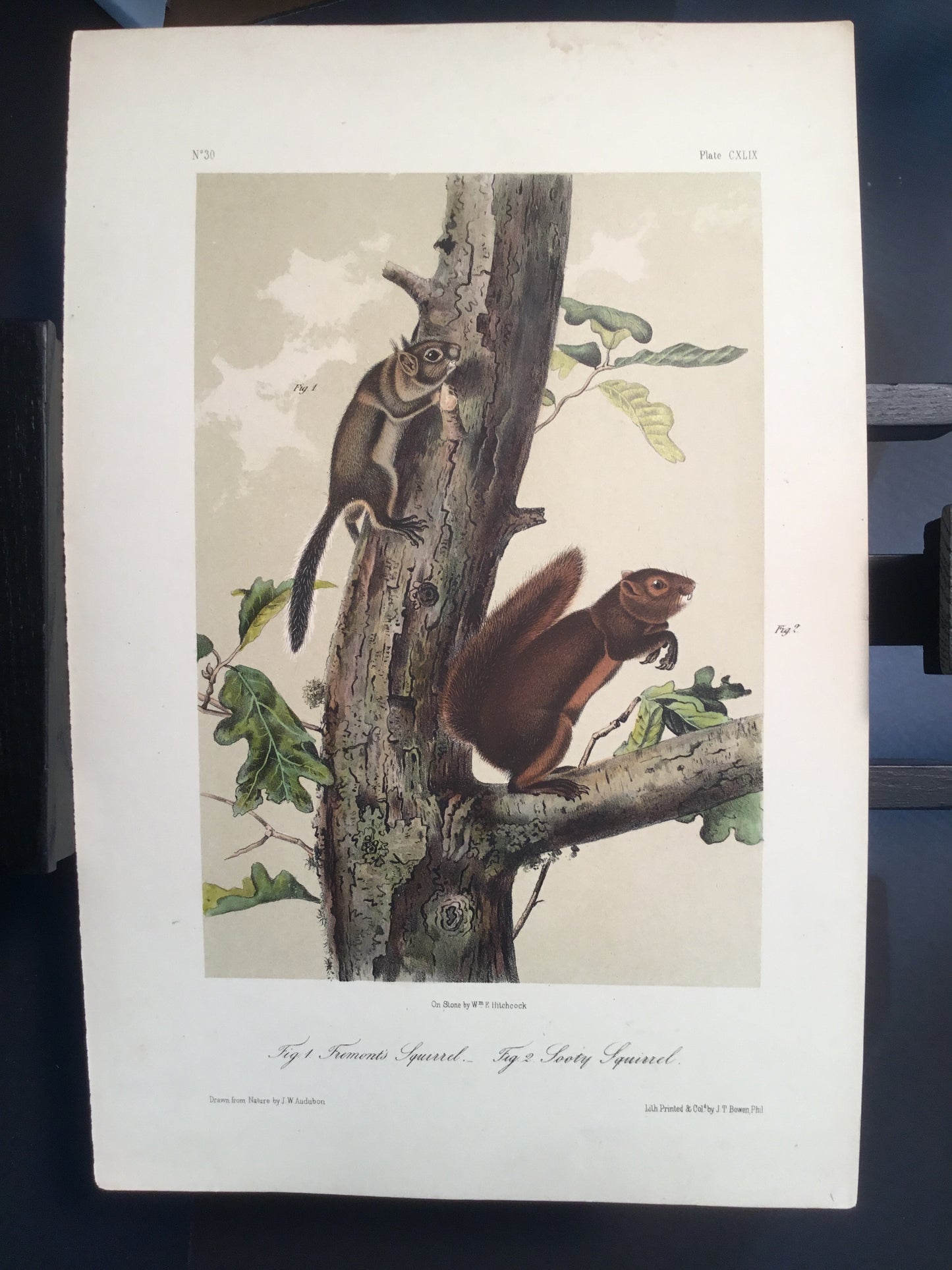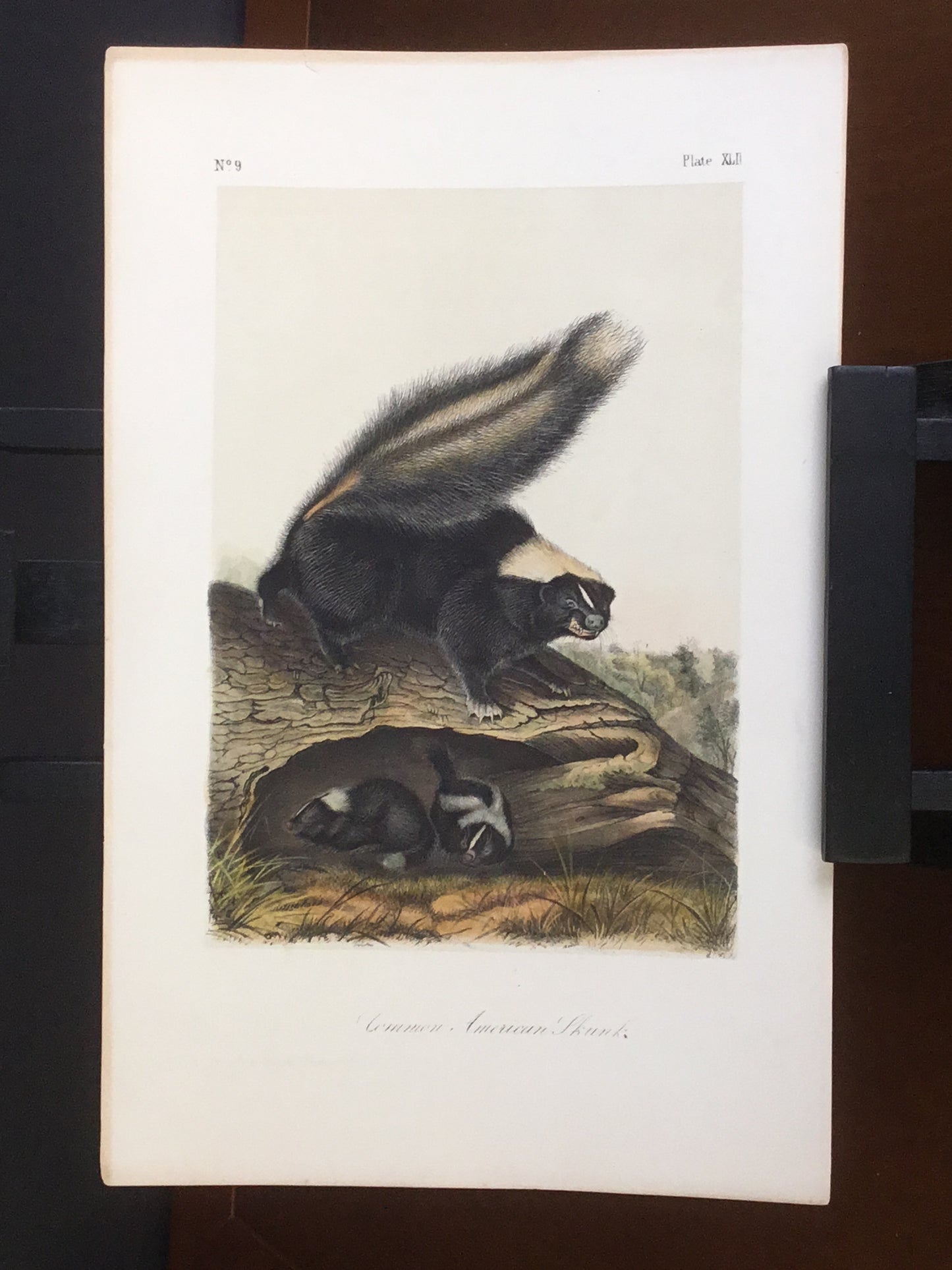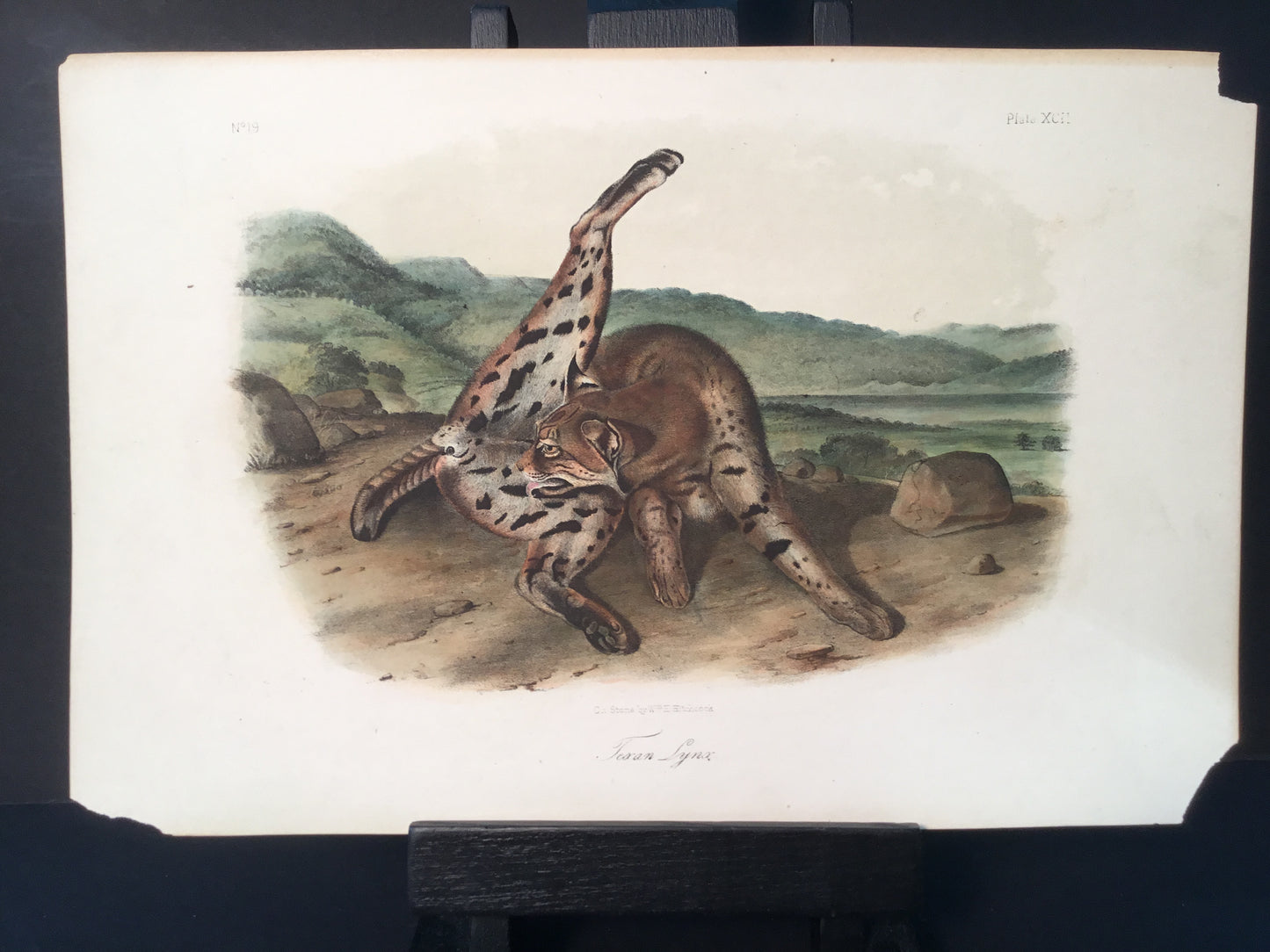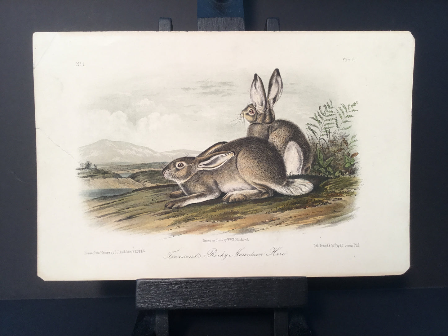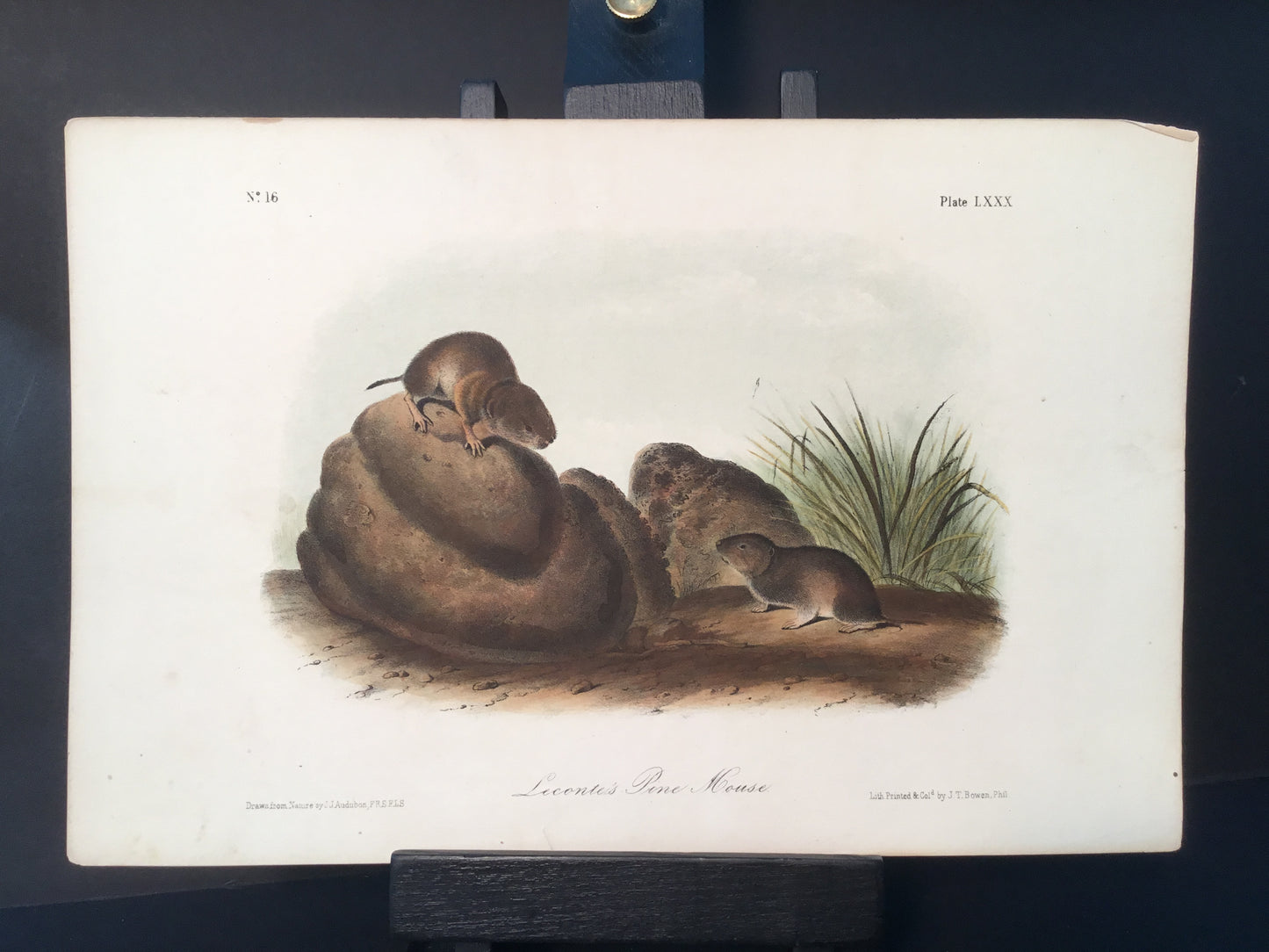 Audubon's sons saw the need to reduce the size of the Imperials, and beginning in 1849, the octavo edition of The Quadrupeds of North America was published in three volumes. Volume 1 was followed in 1851 with the second volume, and the final, the third volume was published in 1854. Between 1,999 and 2,004 sets were published in this first edition. The size for these editions was about 6 1/2 x 10 1/2 inches.
