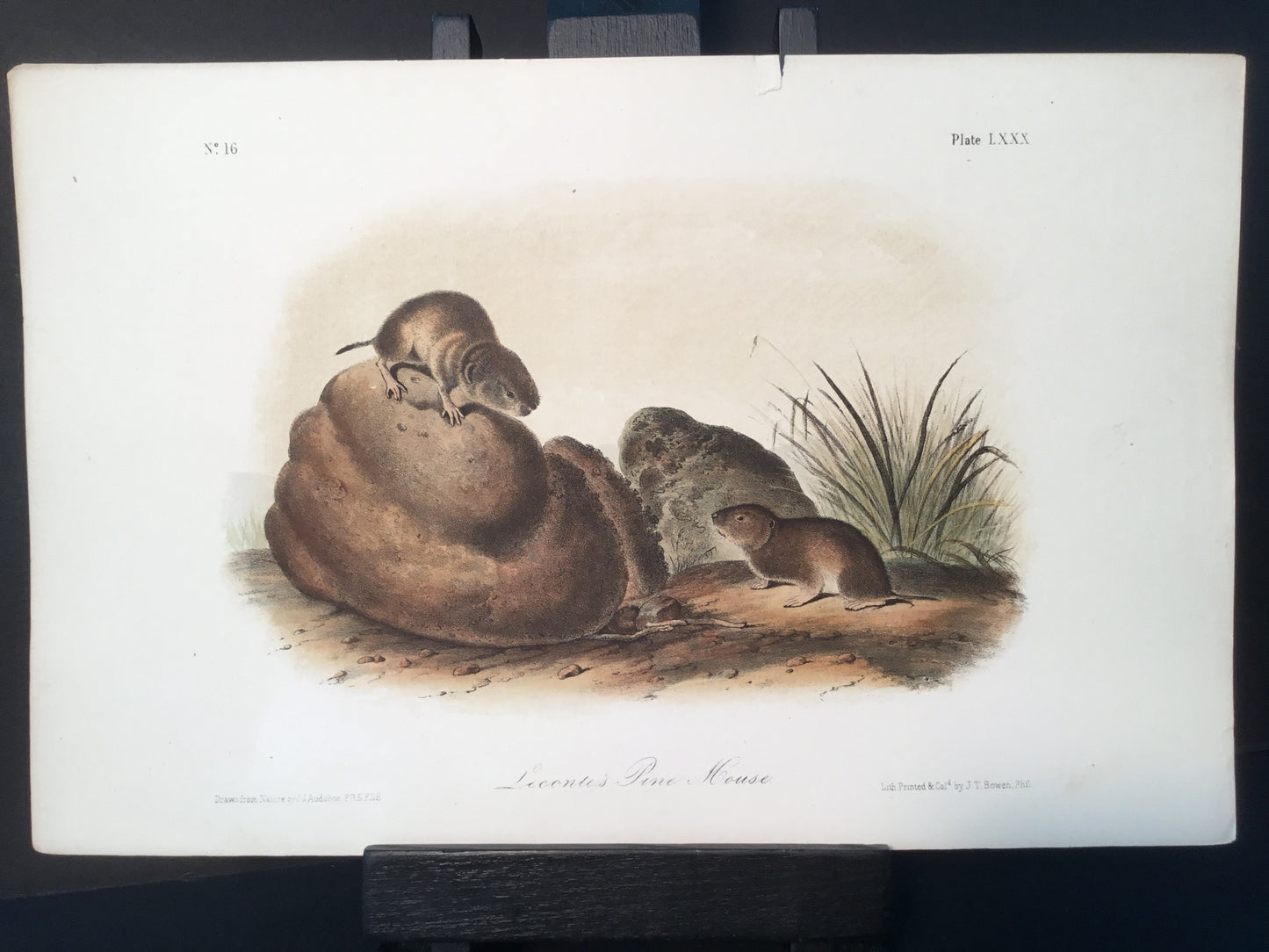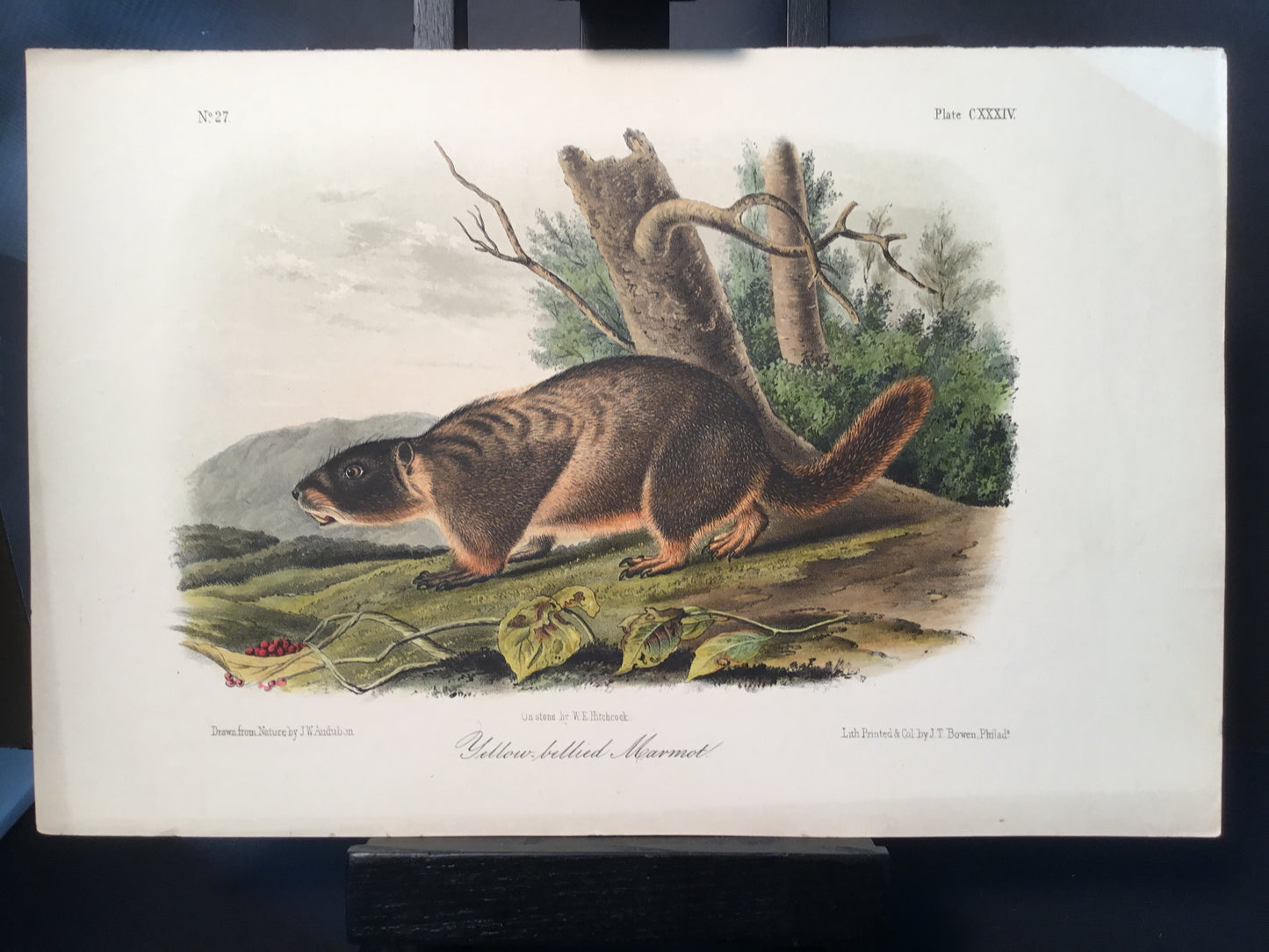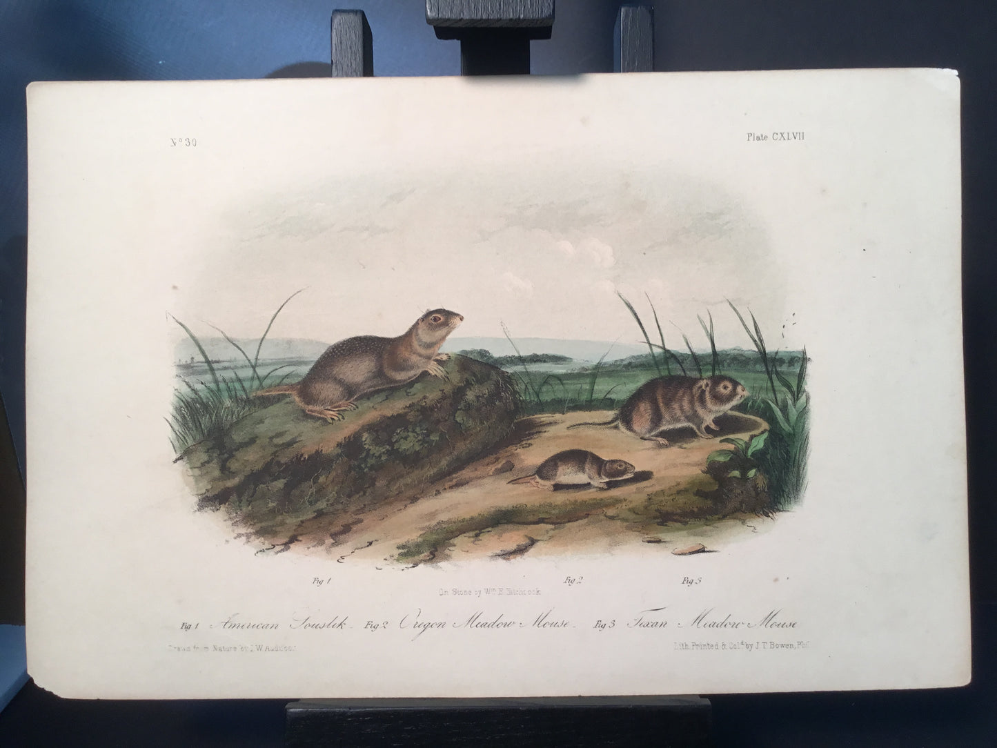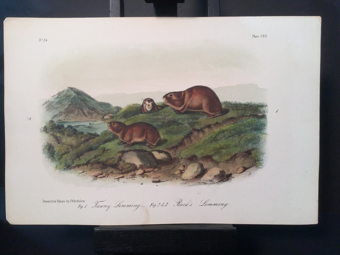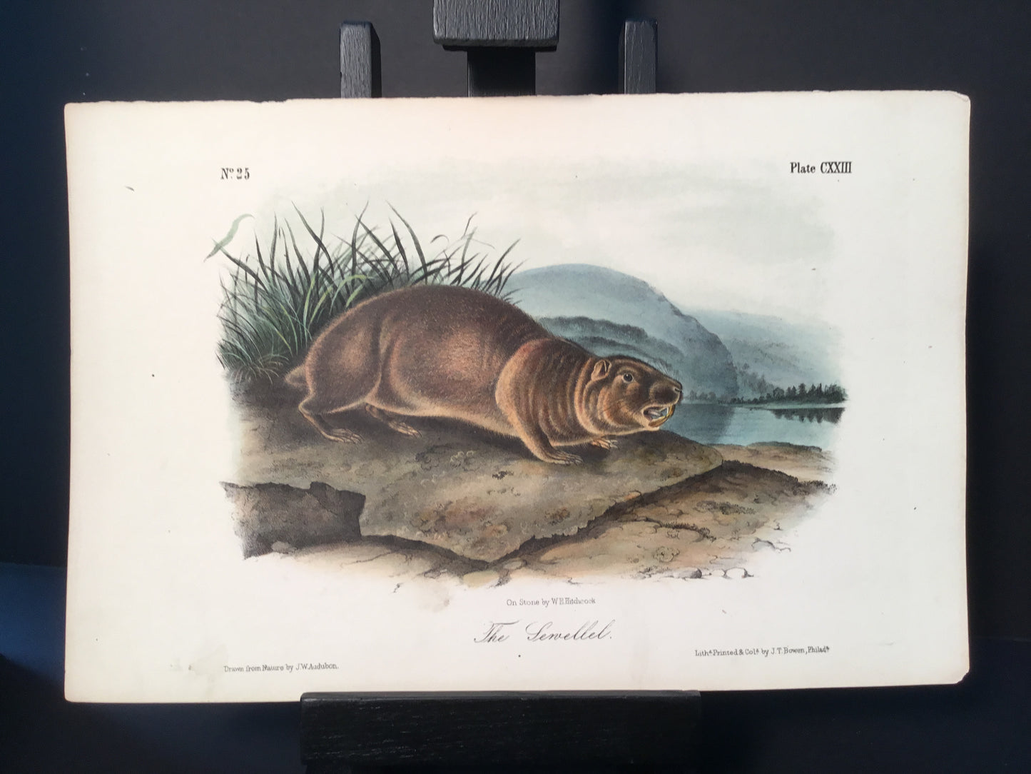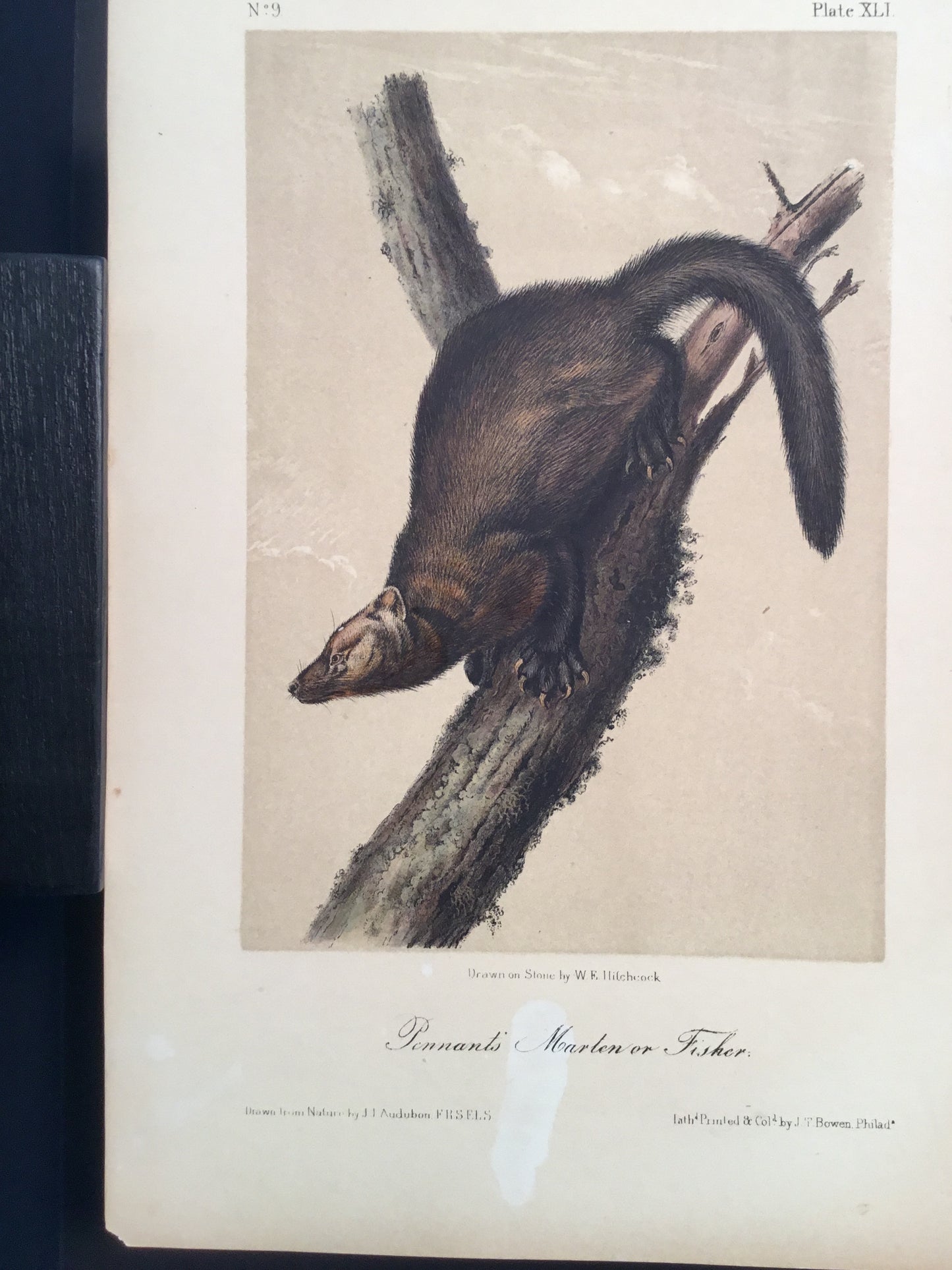 Audubon's sons saw the need to reduce the size of the Imperials, and beginning in 1849, the octavo edition of The Quadrupeds of North America was published in three volumes. Volume 1 was followed in 1851 with the second volume, and the final, the third volume was published in 1854. Between 1,999 and 2,004 sets were published in this first edition. The size for these editions was about 6 1/2 x 10 1/2 inches.