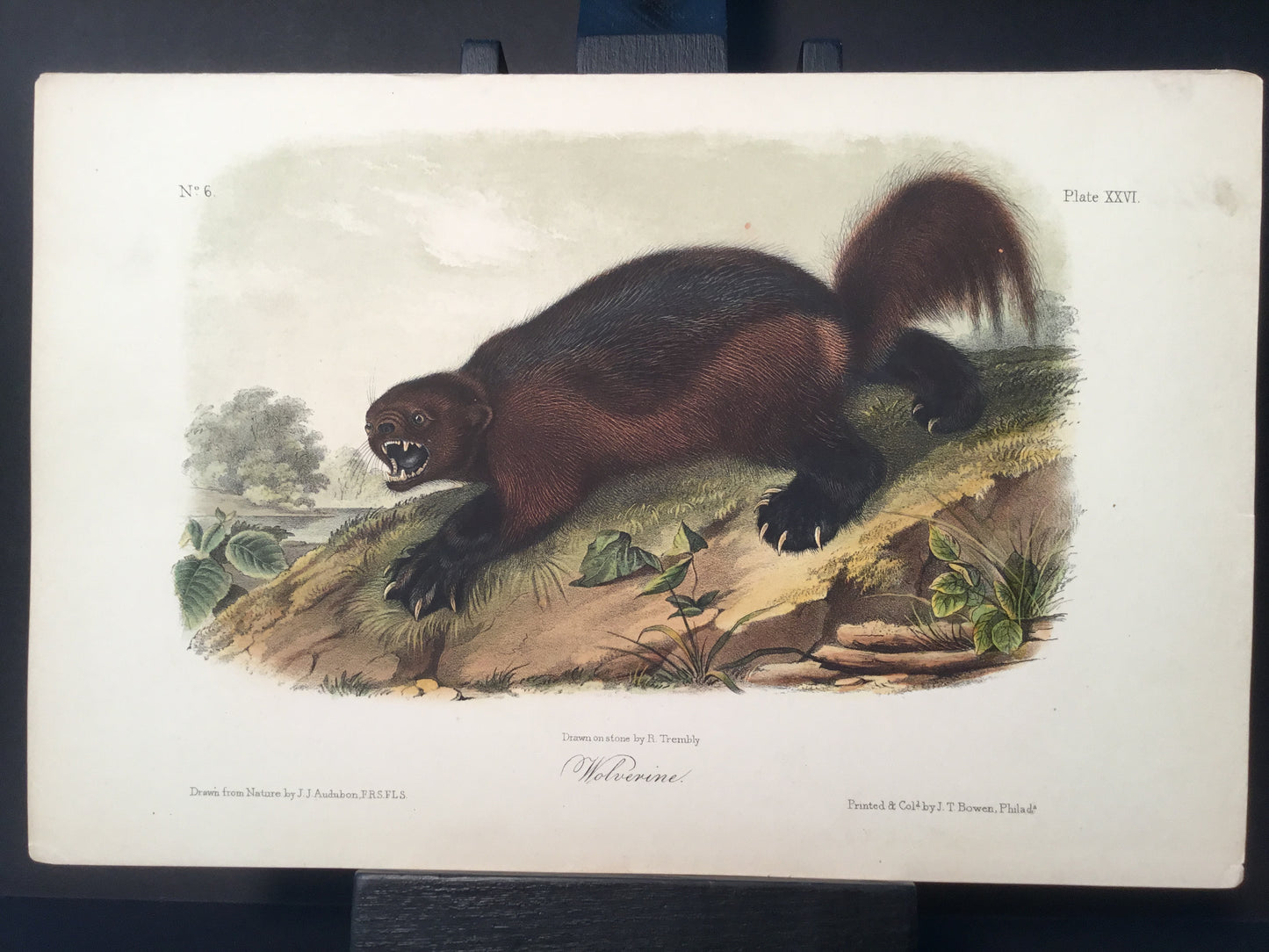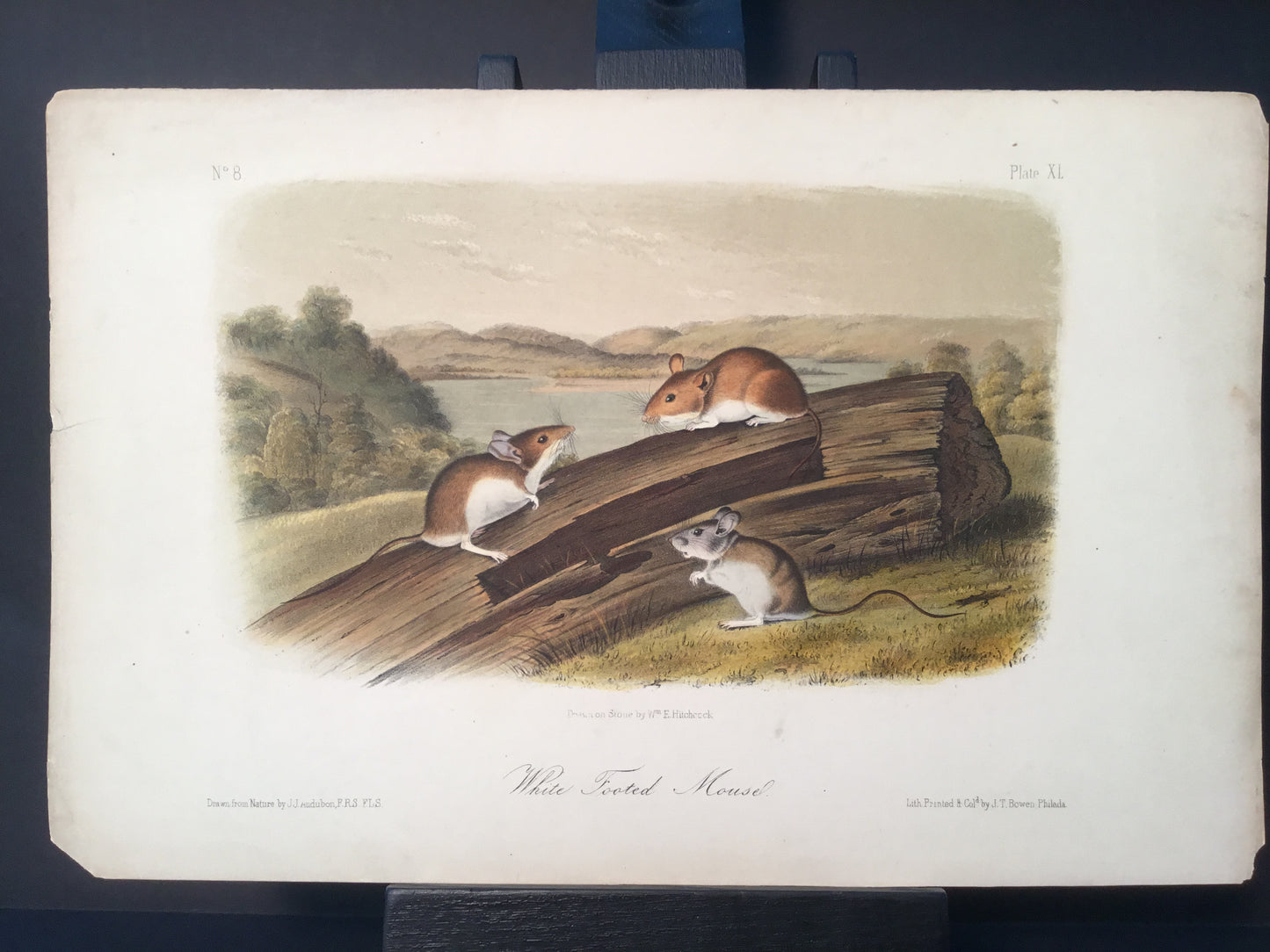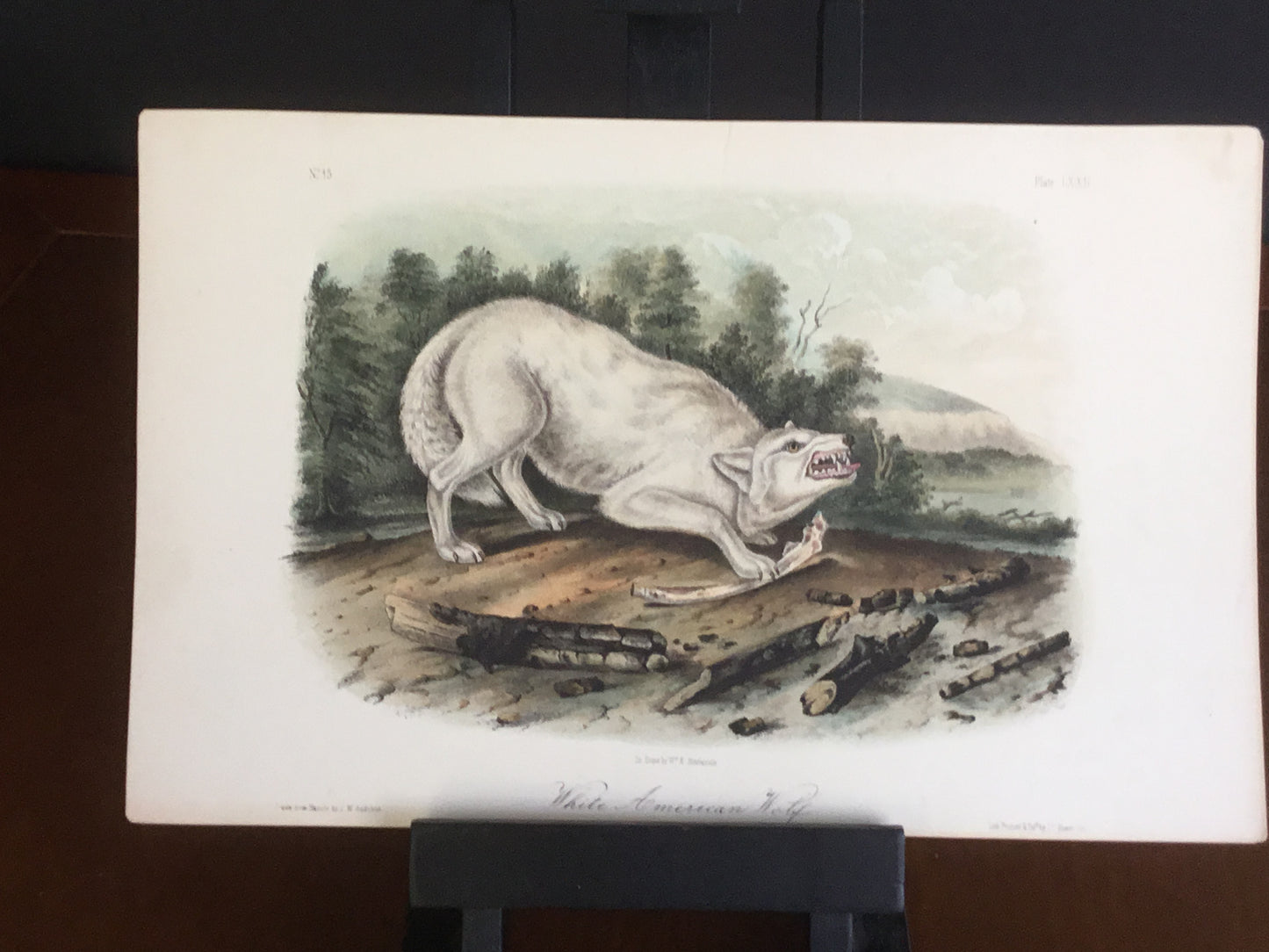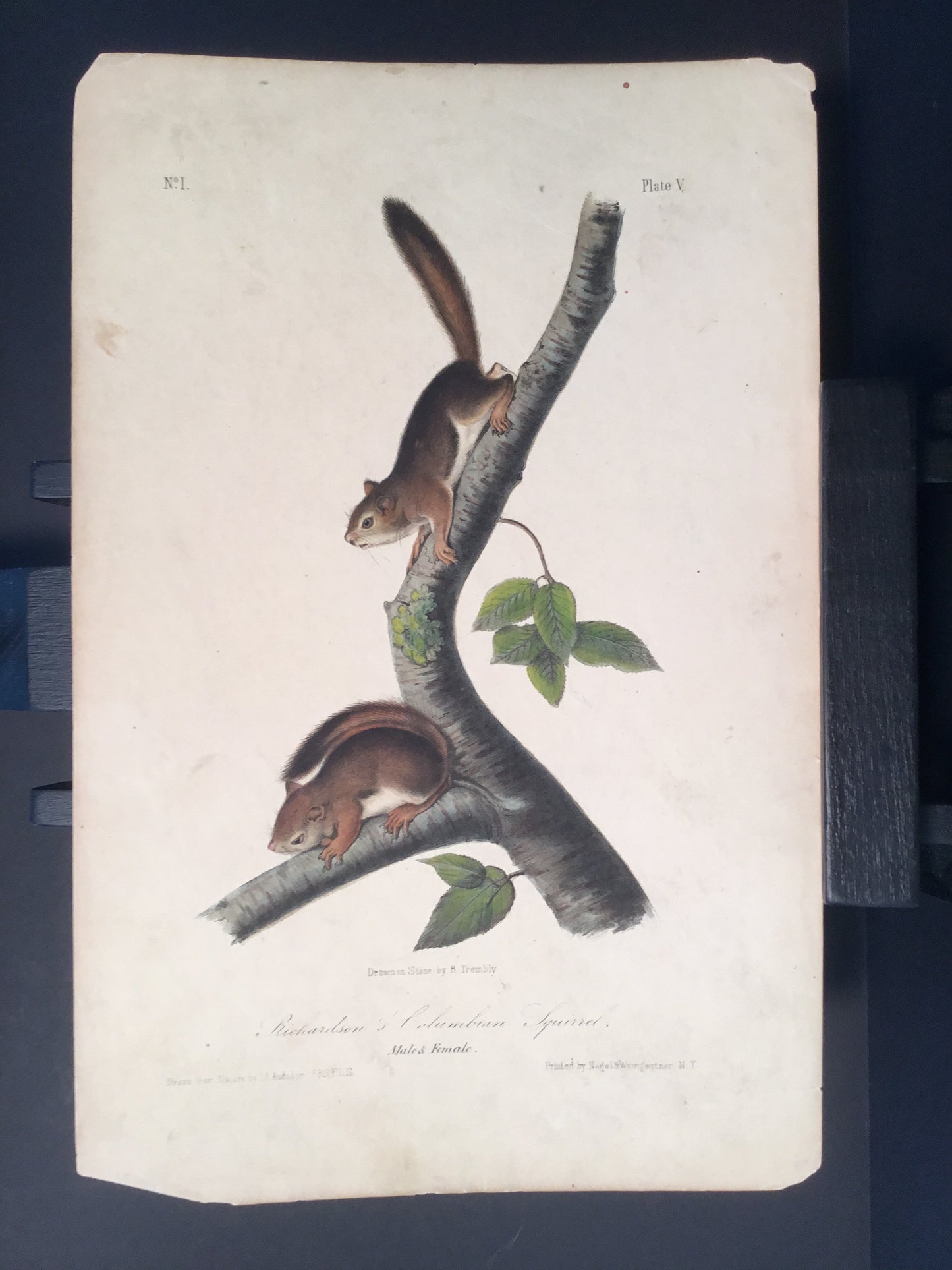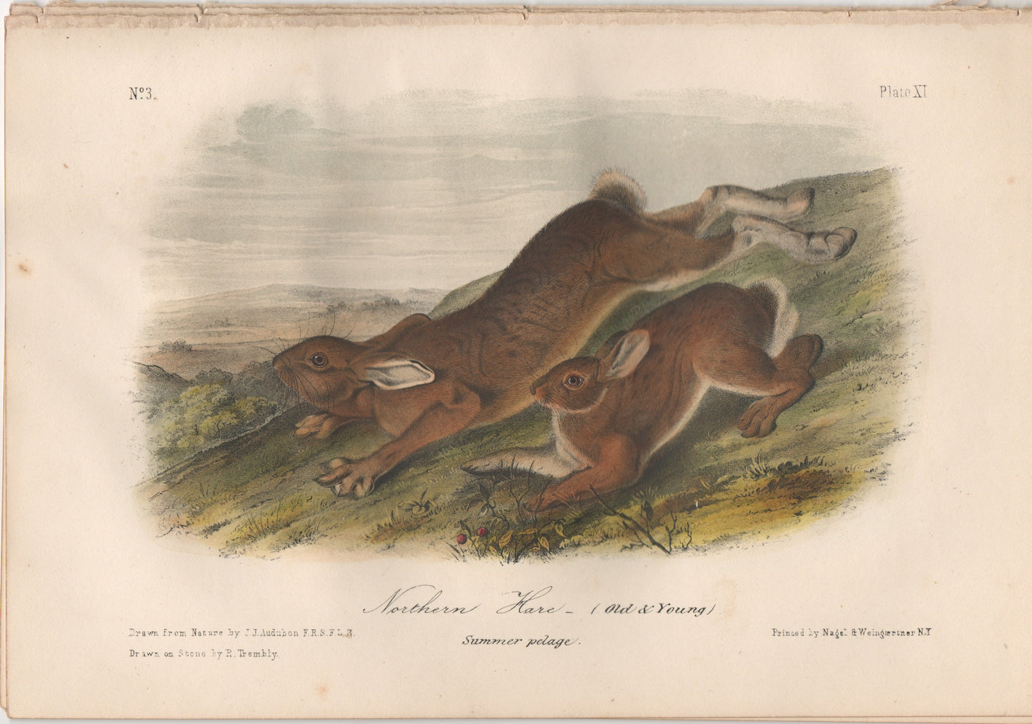 Audubon's sons saw the need to reduce the size of the Imperials, and beginning in 1849, the octavo edition of The Quadrupeds of North America was published in three volumes. Volume 1 was followed in 1851 with the second volume, and the final, the third volume was published in 1854. Between 1,999 and 2,004 sets were published in this first edition. The size for these editions was about 6 1/2 x 10 1/2 inches.