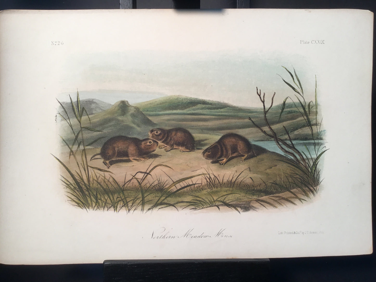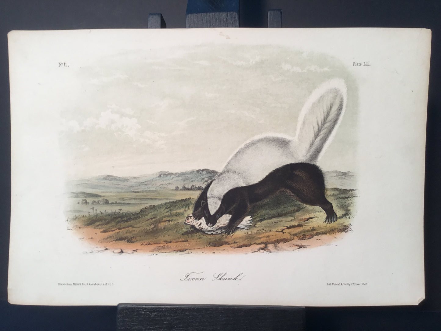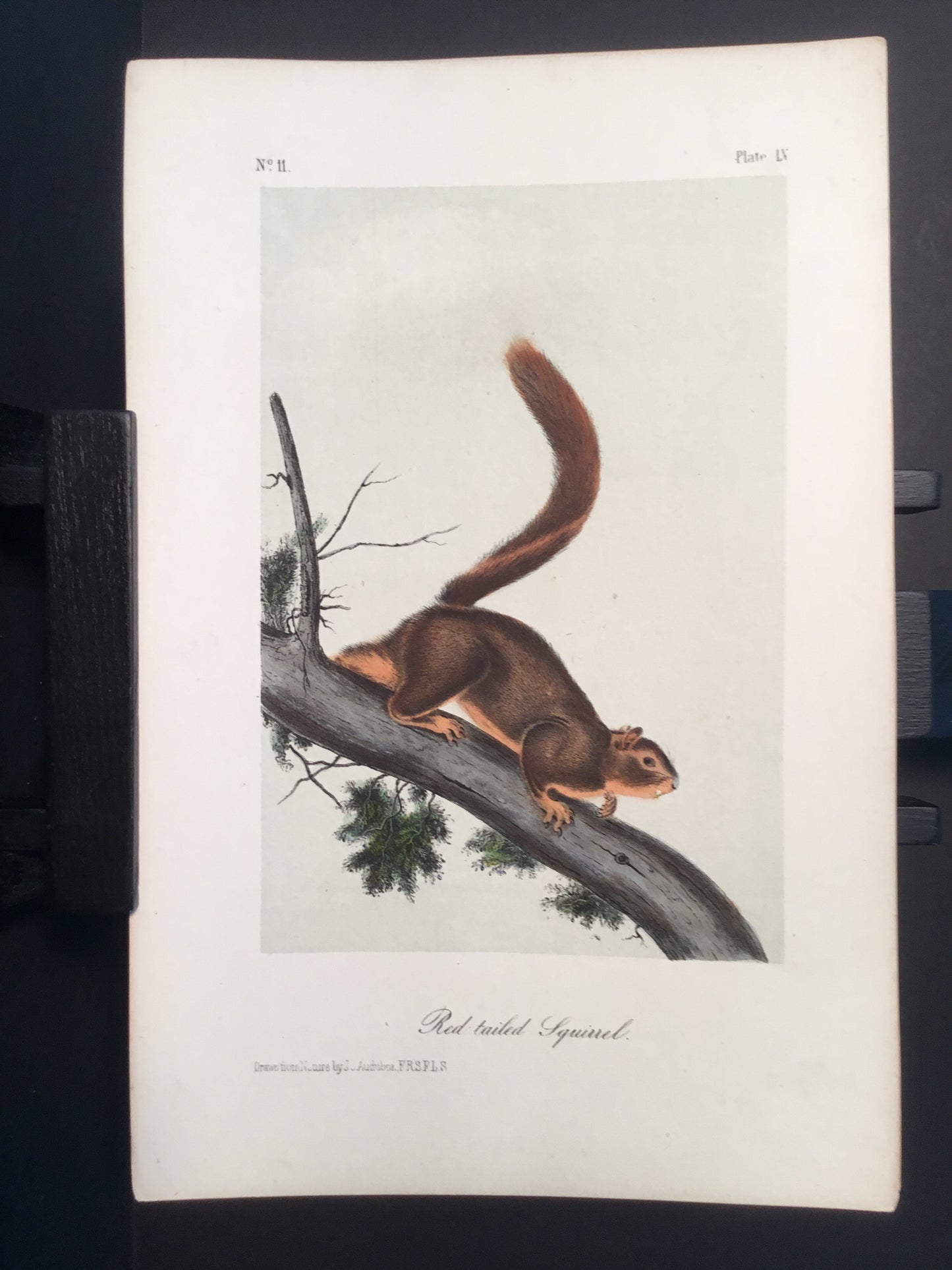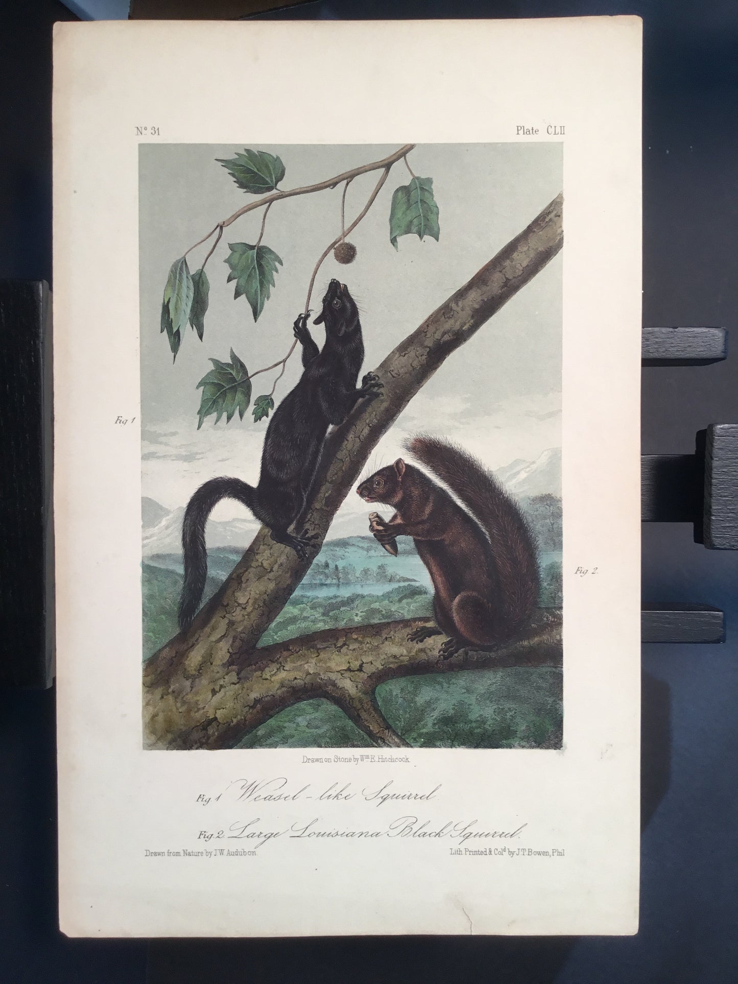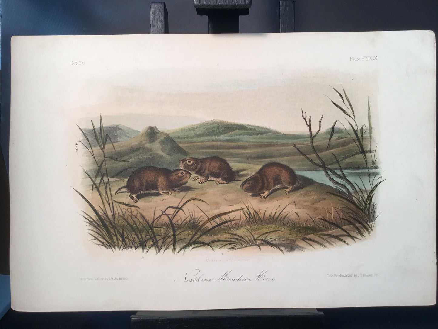 Audubon's sons saw the need to reduce the size of the Imperials, and beginning in 1849, the octavo edition of The Quadrupeds of North America was published in three volumes. Volume 1 was followed in 1851 with the second volume, and the final, the third volume was published in 1854. Between 1,999 and 2,004 sets were published in this first edition. The size for these editions was about 6 1/2 x 10 1/2 inches.