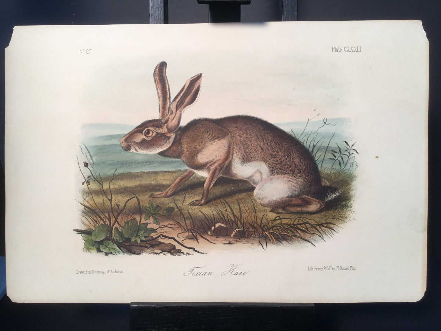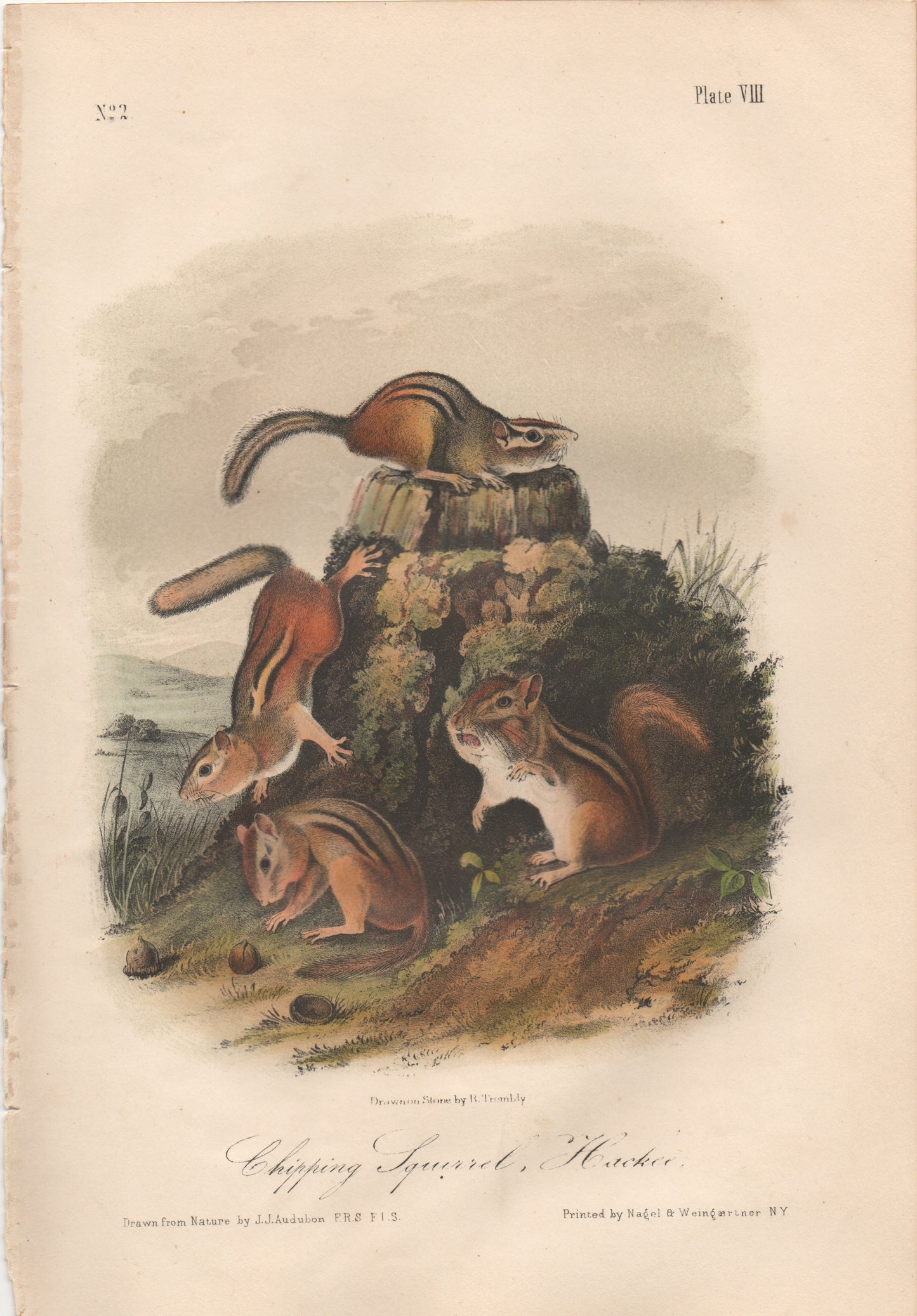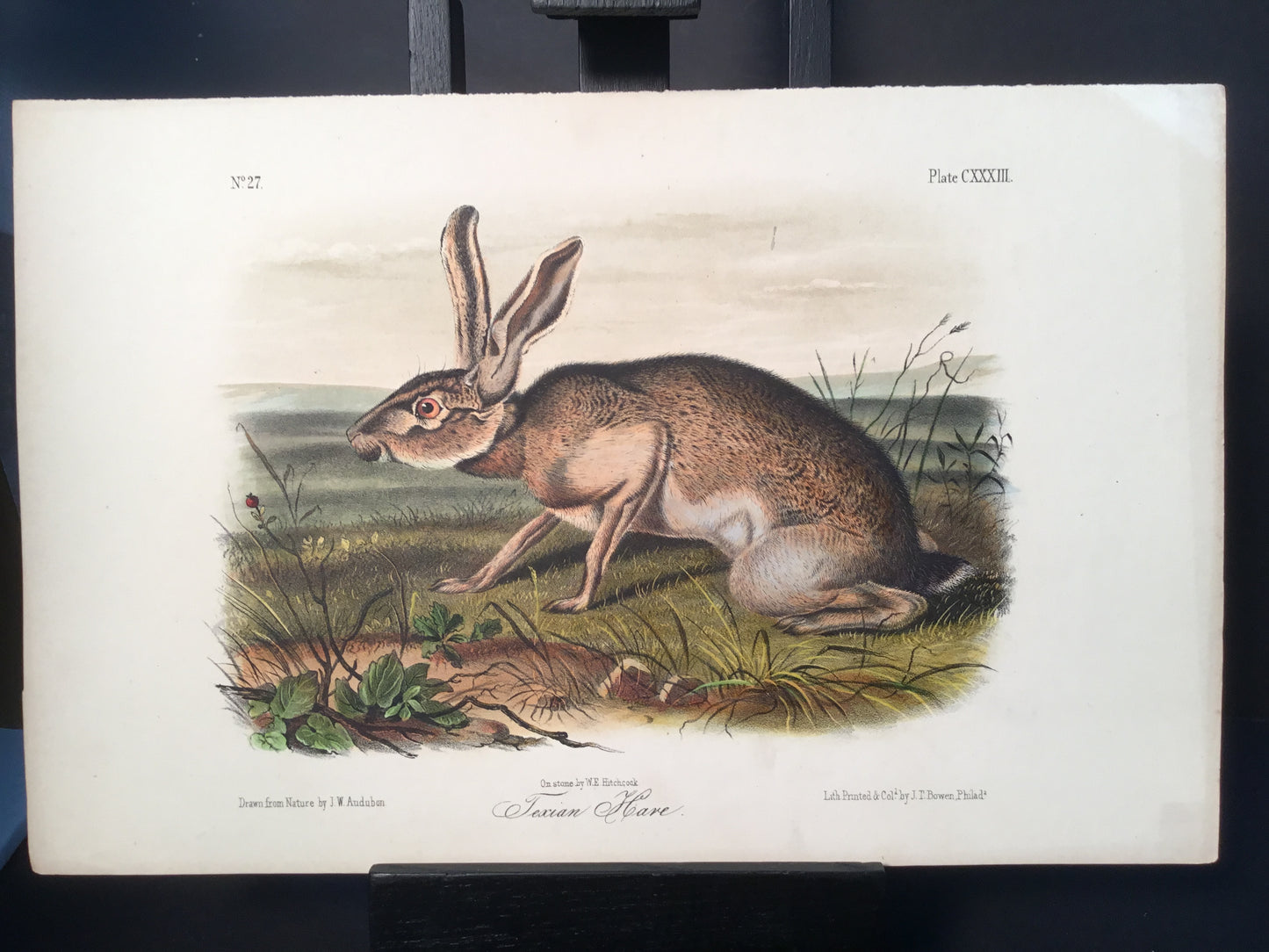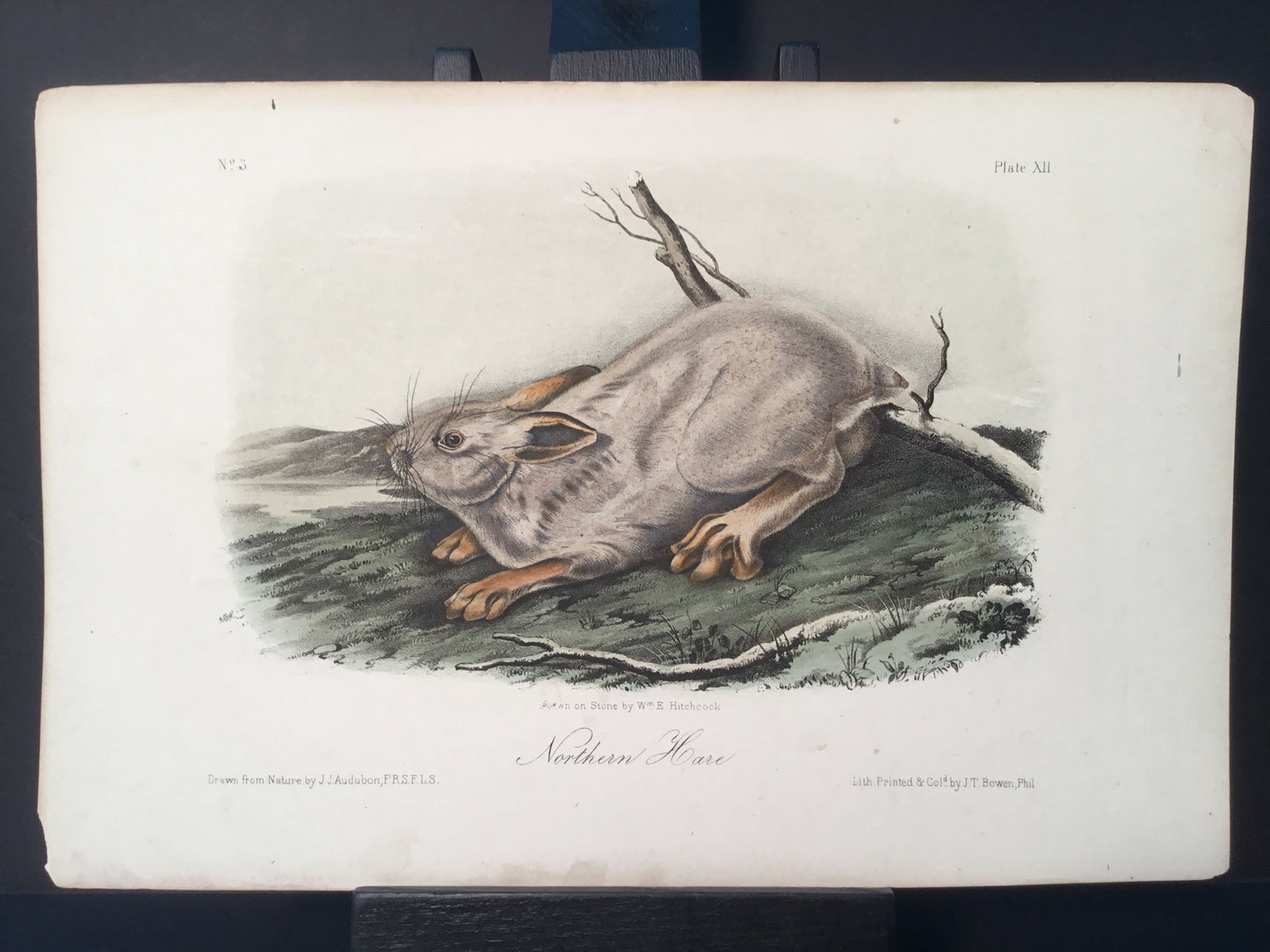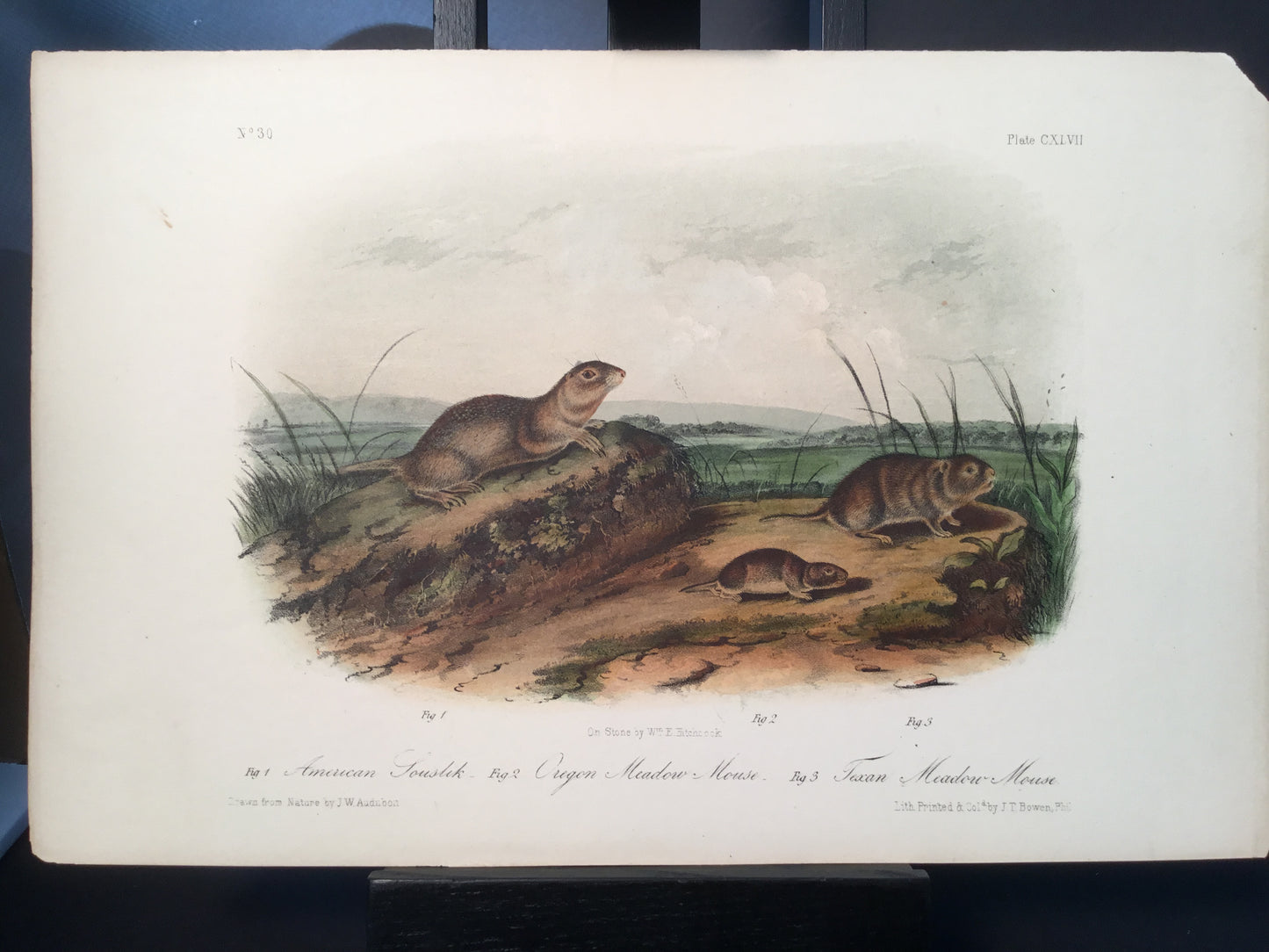 Audubon's sons saw the need to reduce the size of the Imperials, and beginning in 1849, the octavo edition of The Quadrupeds of North America was published in three volumes. Volume 1 was followed in 1851 with the second volume, and the final, the third volume was published in 1854. Between 1,999 and 2,004 sets were published in this first edition. The size for these editions was about 6 1/2 x 10 1/2 inches.