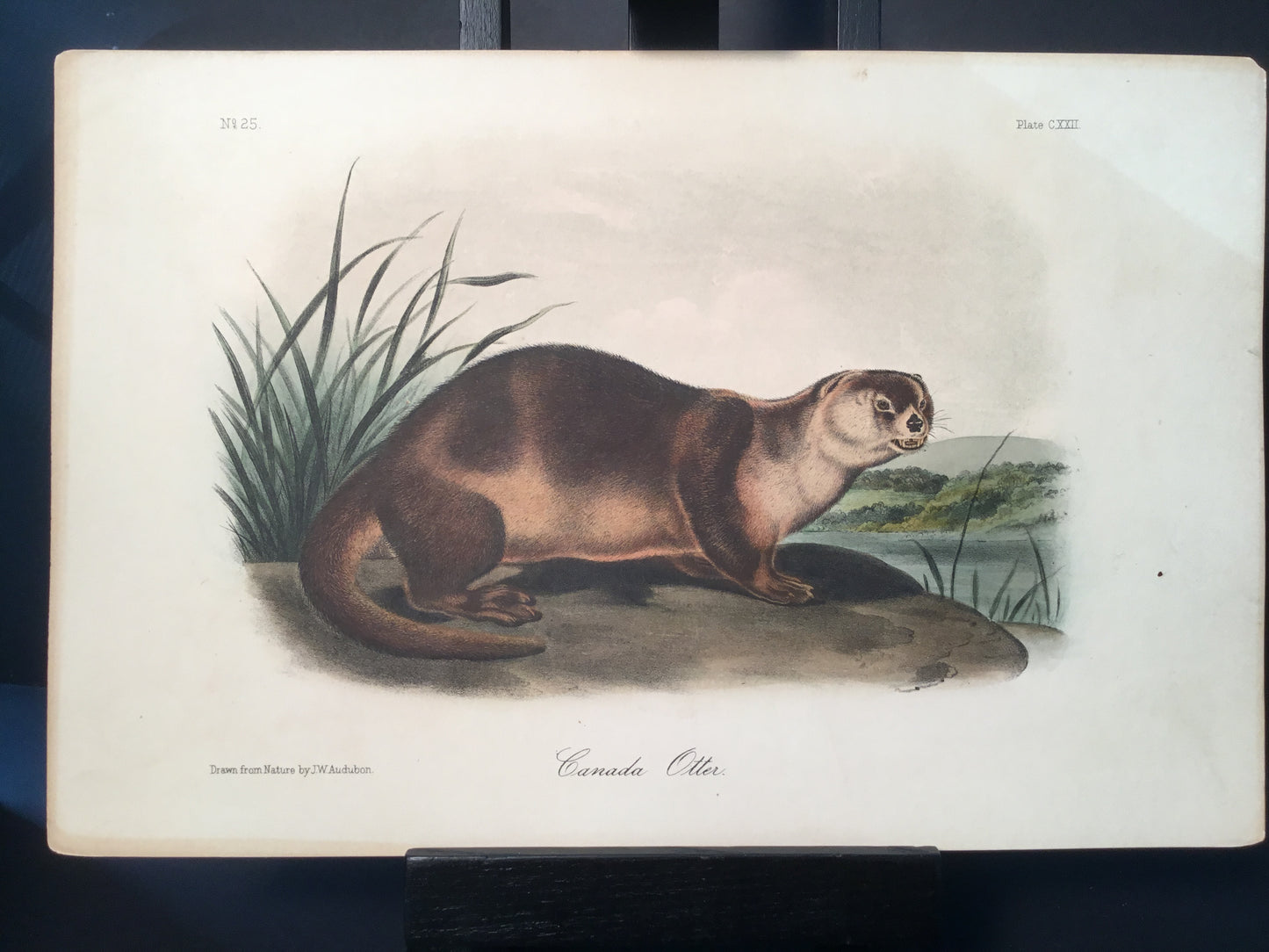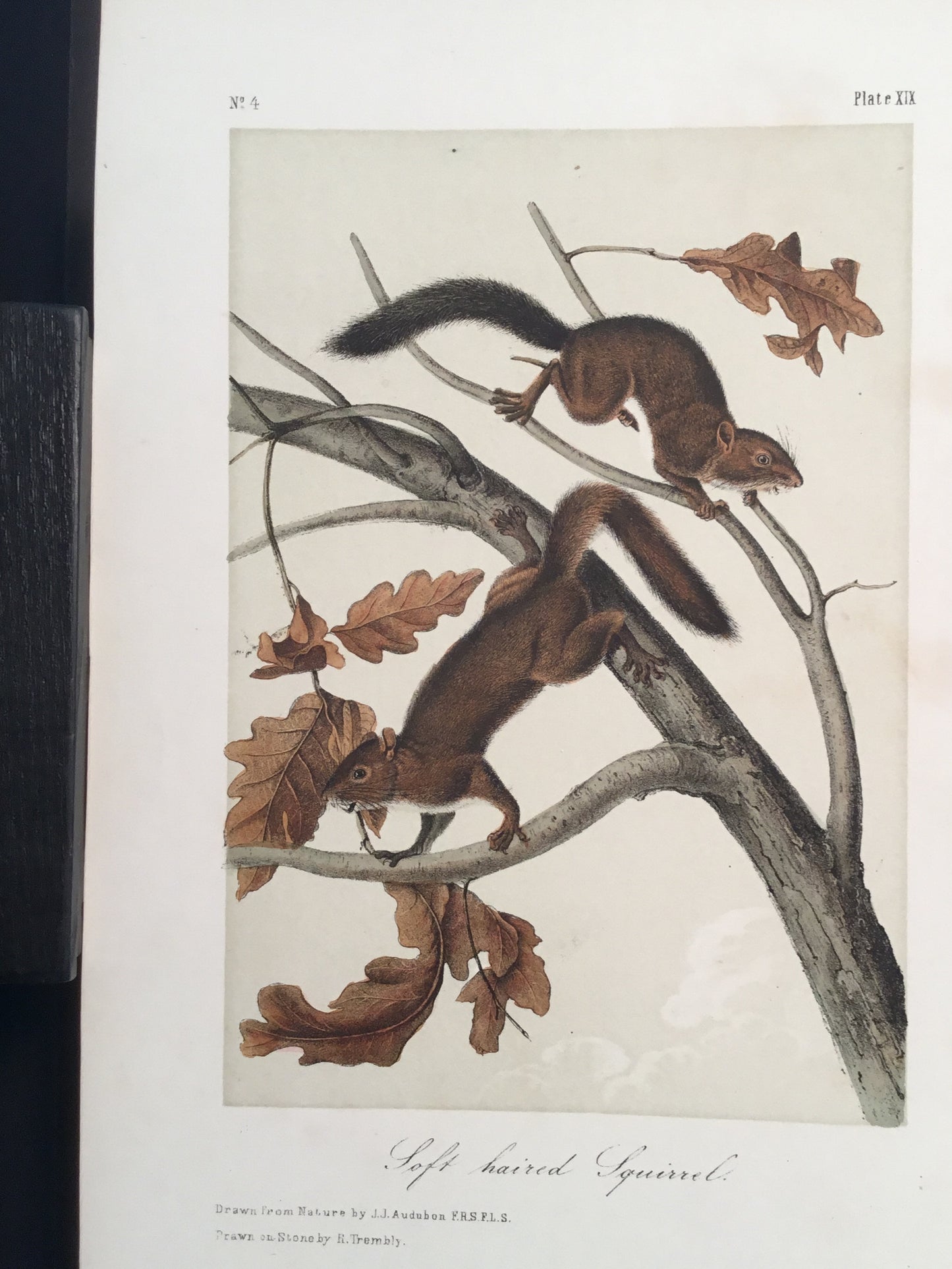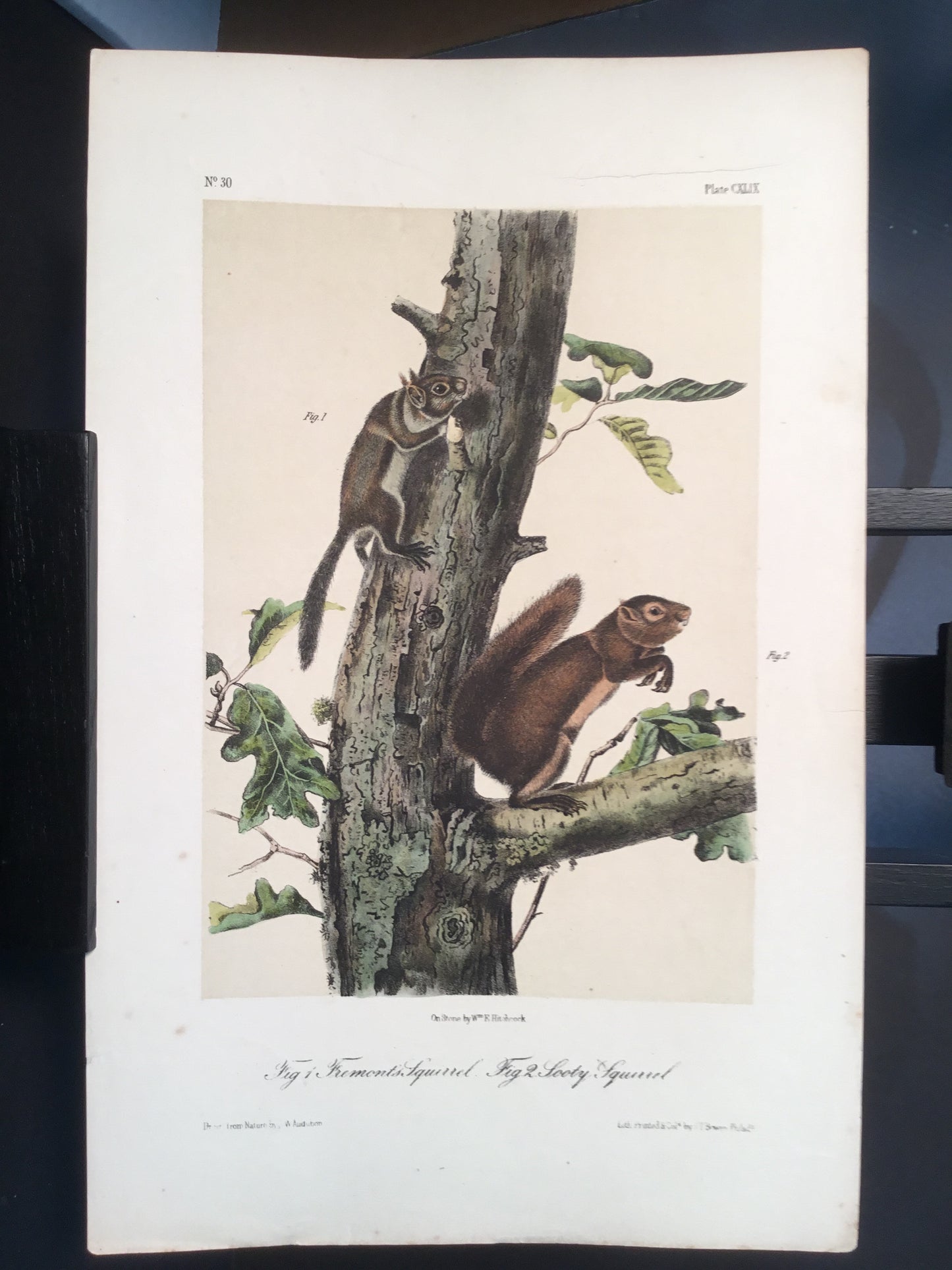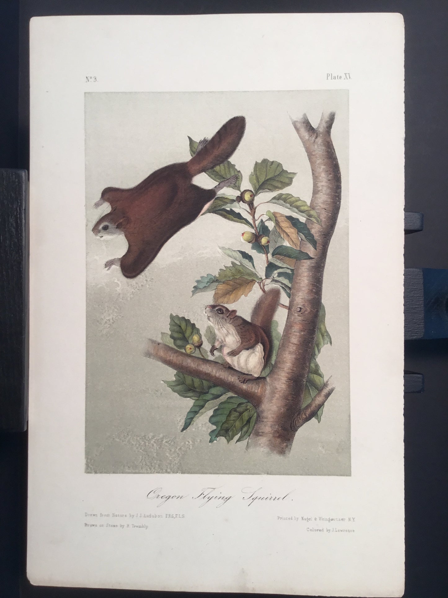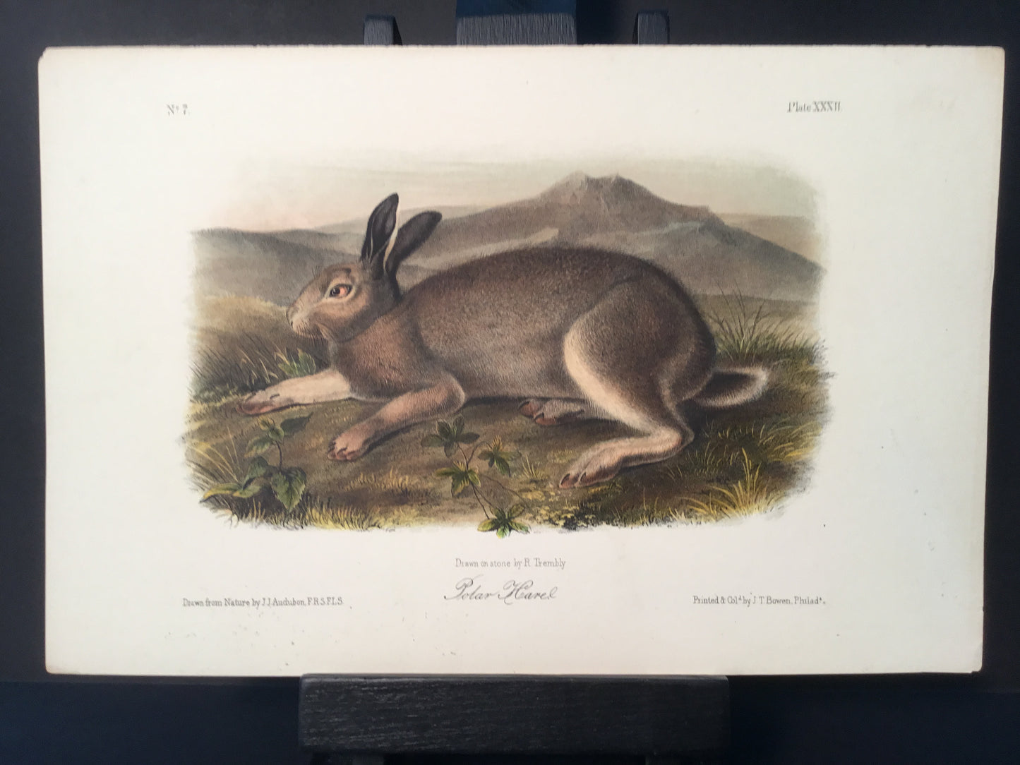 Audubon's sons saw the need to reduce the size of the Imperials, and beginning in 1849, the octavo edition of The Quadrupeds of North America was published in three volumes. Volume 1 was followed in 1851 with the second volume, and the final, the third volume was published in 1854. Between 1,999 and 2,004 sets were published in this first edition. The size for these editions was about 6 1/2 x 10 1/2 inches.
