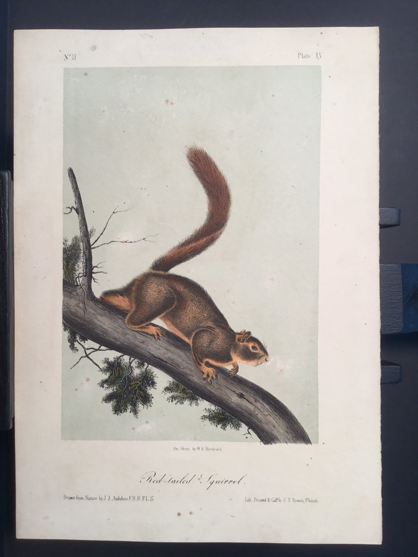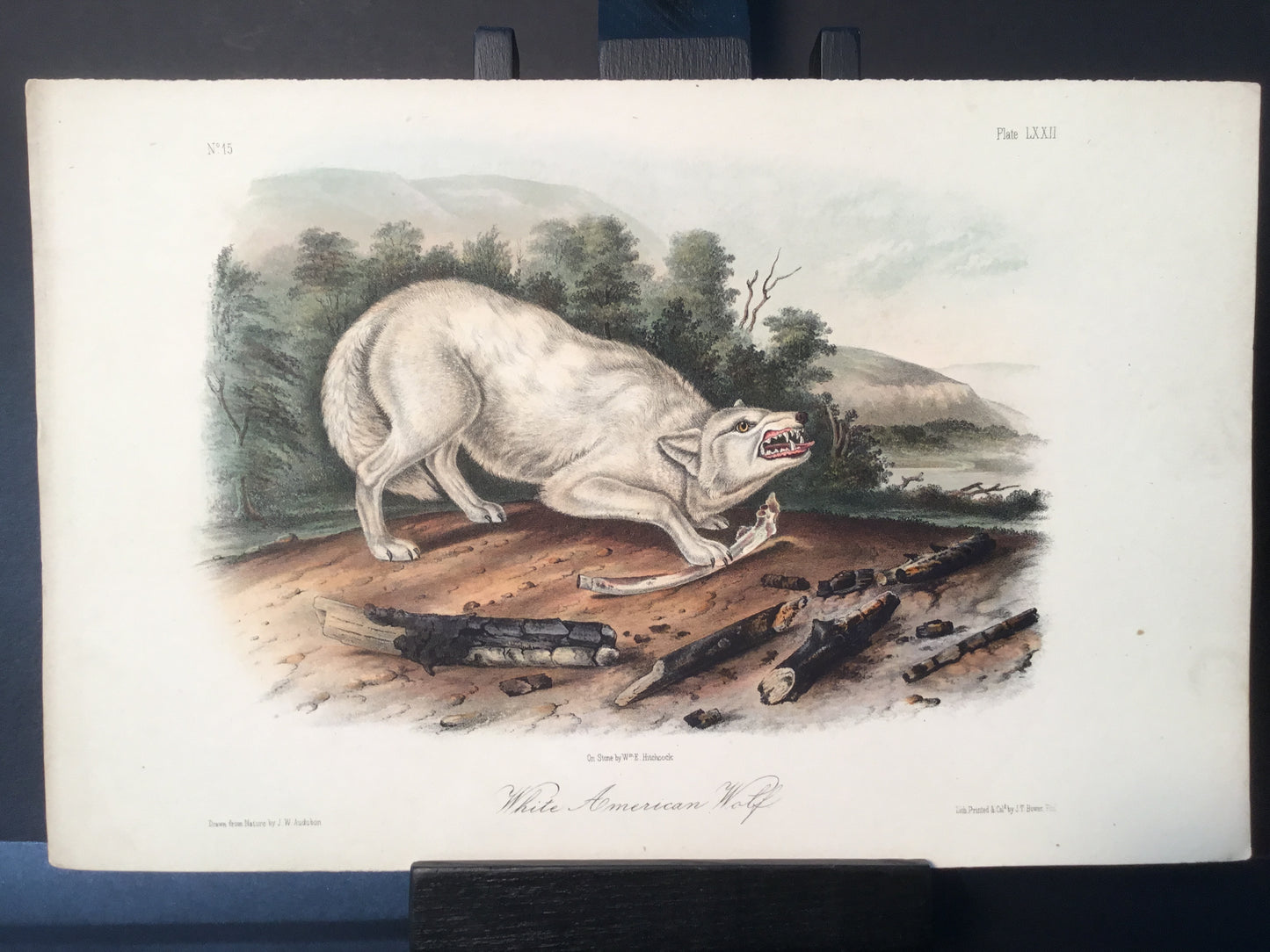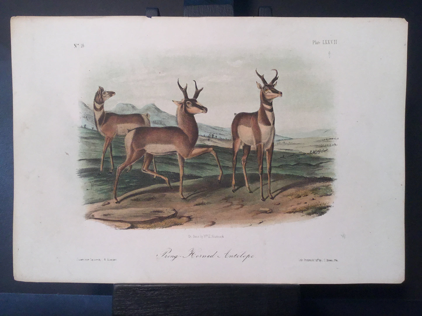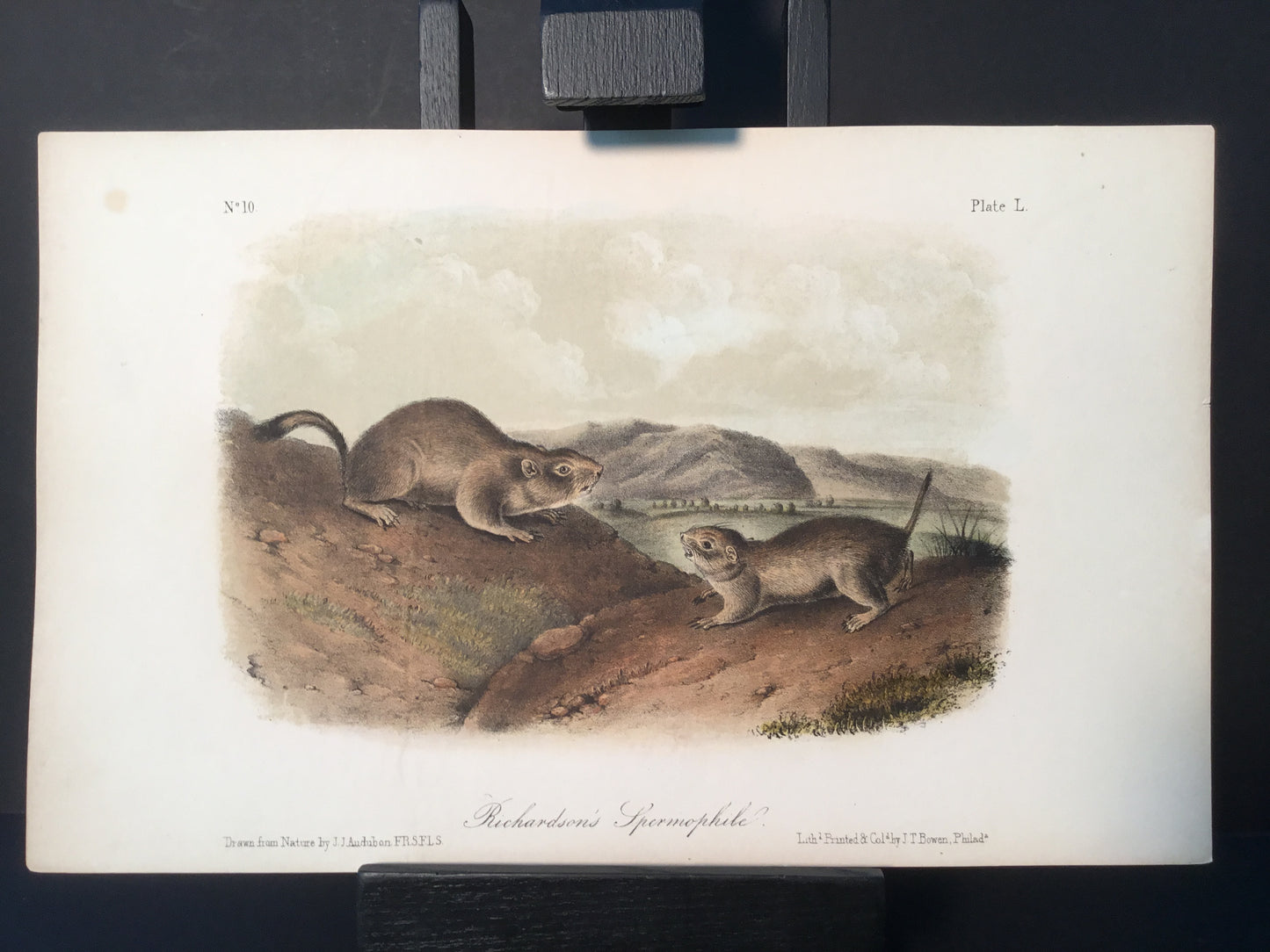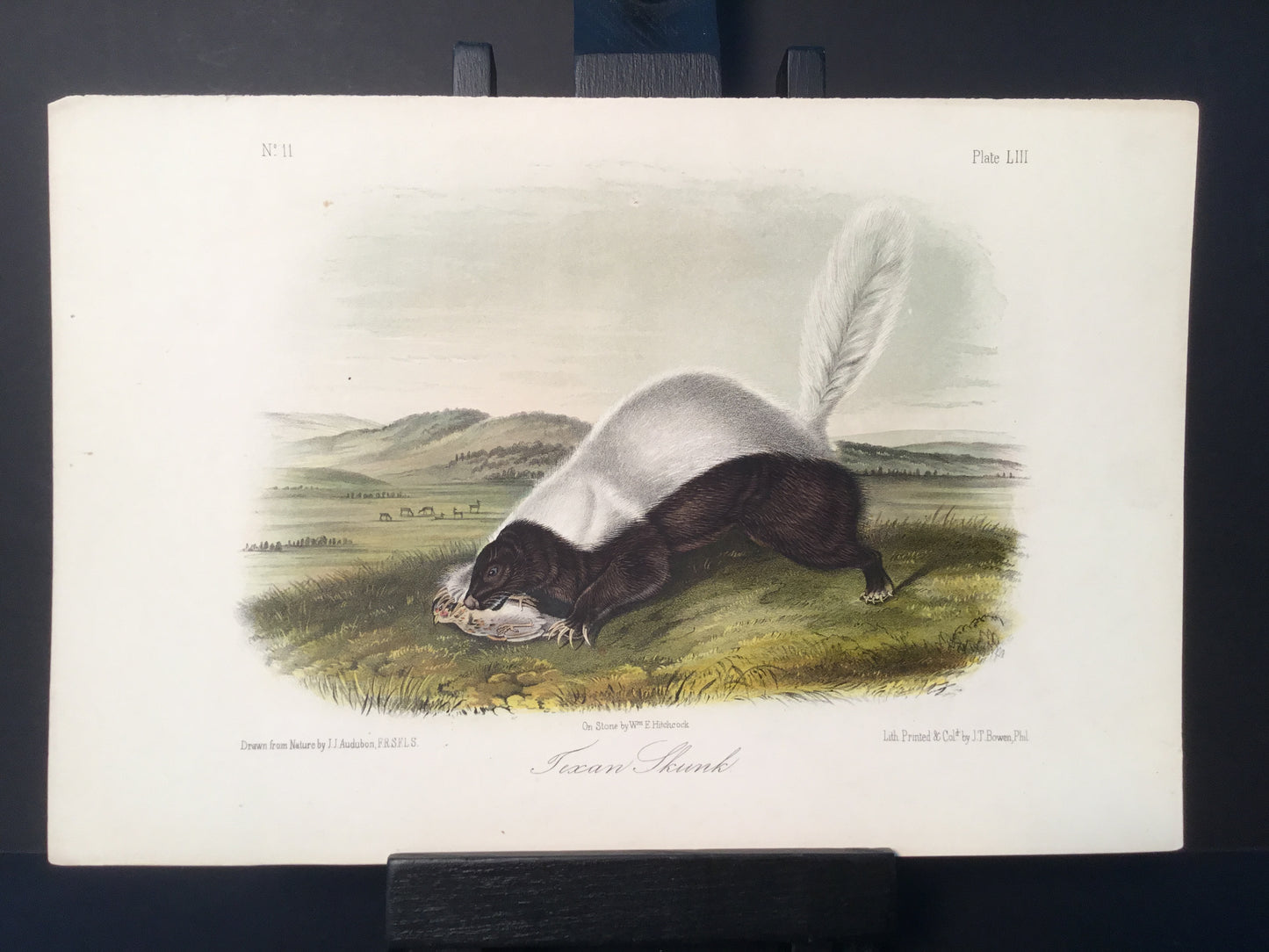 Audubon's sons saw the need to reduce the size of the Imperials, and beginning in 1849, the octavo edition of The Quadrupeds of North America was published in three volumes. Volume 1 was followed in 1851 with the second volume, and the final, the third volume was published in 1854. Between 1,999 and 2,004 sets were published in this first edition. The size for these editions was about 6 1/2 x 10 1/2 inches.