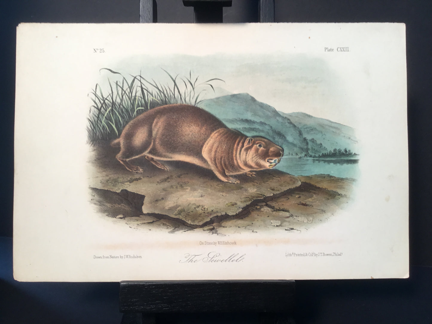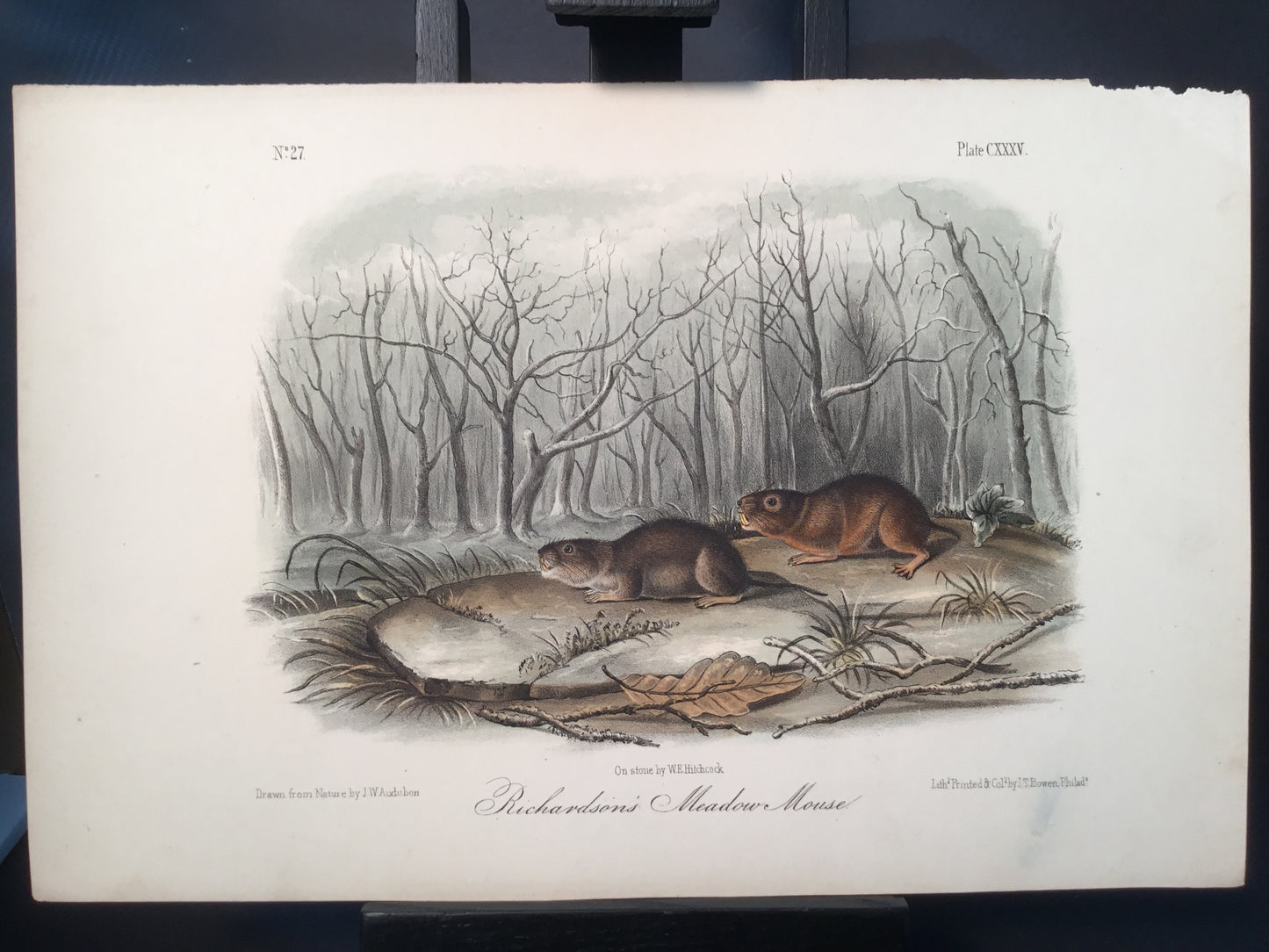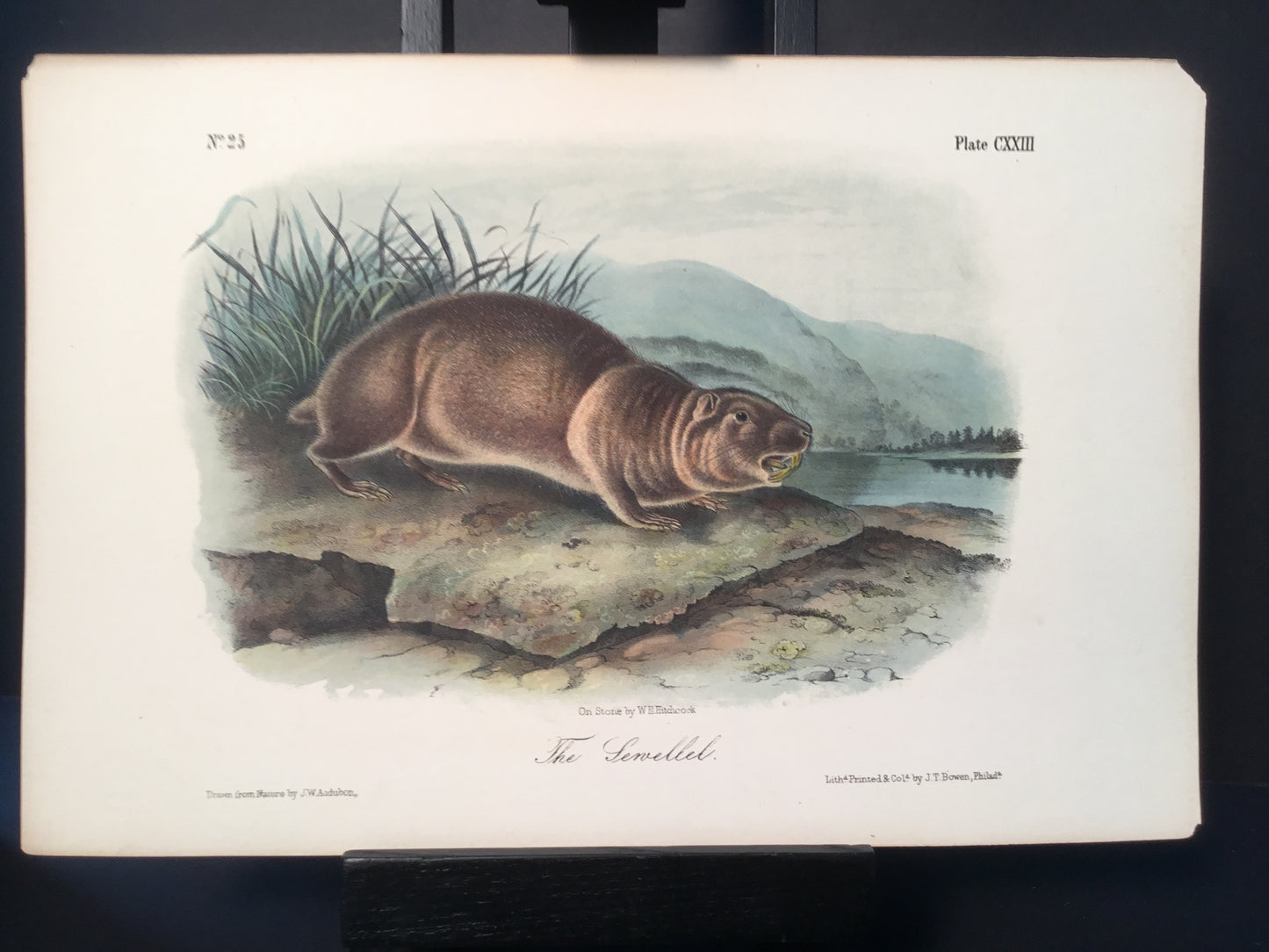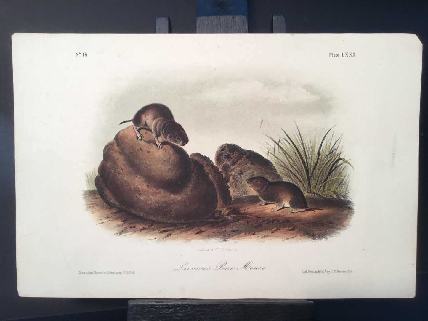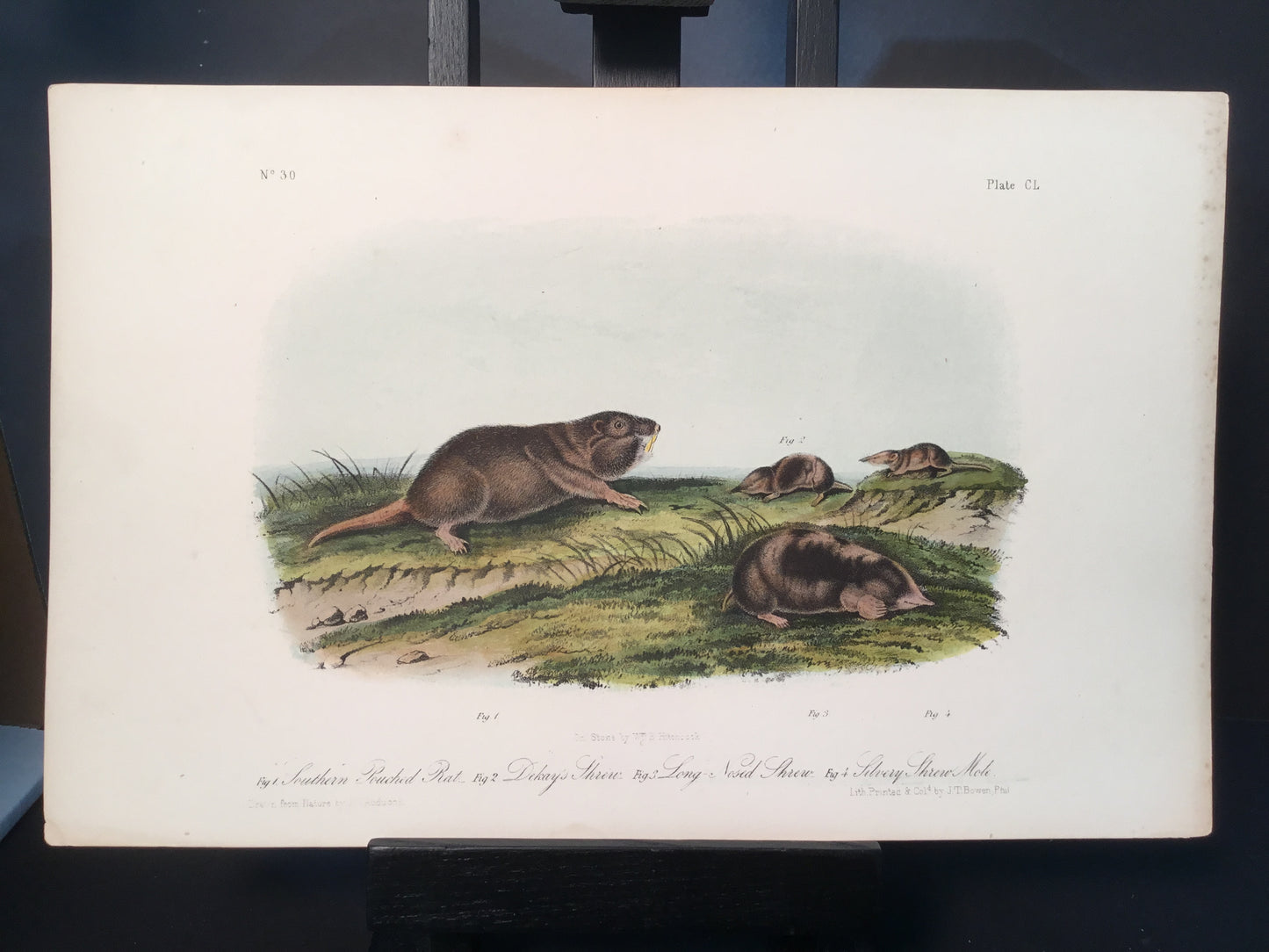 Audubon's sons saw the need to reduce the size of the Imperials, and beginning in 1849, the octavo edition of The Quadrupeds of North America was published in three volumes. Volume 1 was followed in 1851 with the second volume, and the final, the third volume was published in 1854. Between 1,999 and 2,004 sets were published in this first edition. The size for these editions was about 6 1/2 x 10 1/2 inches.