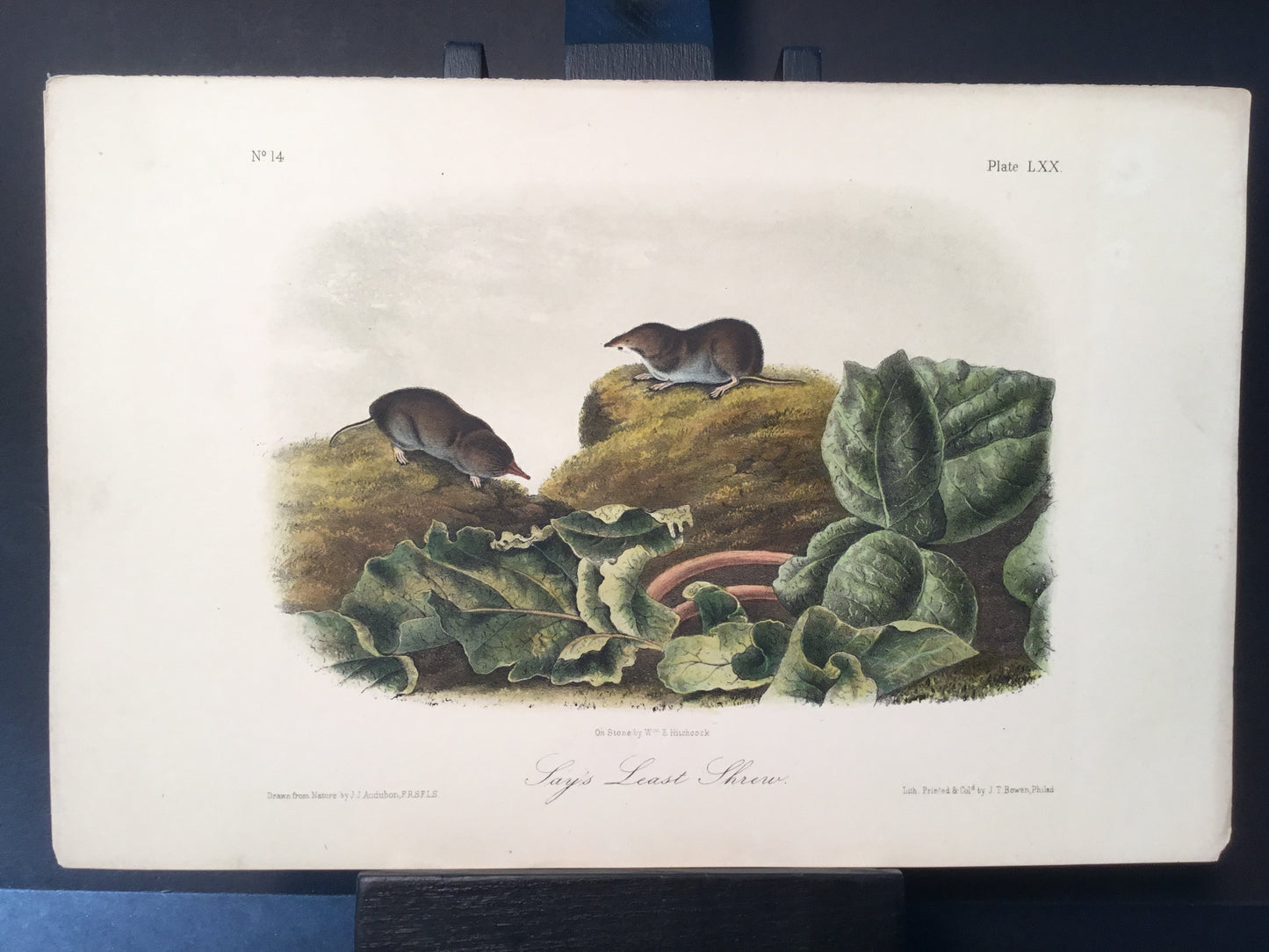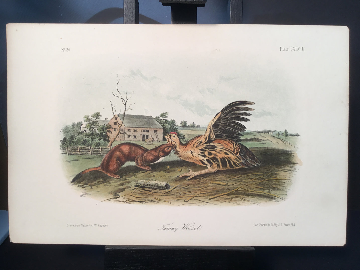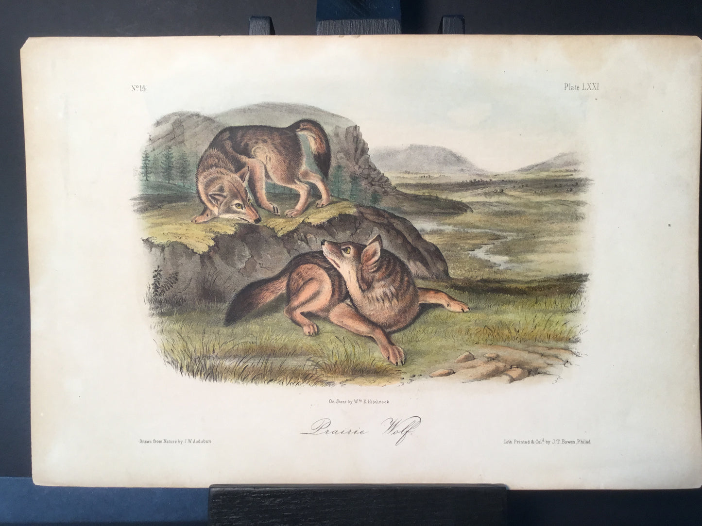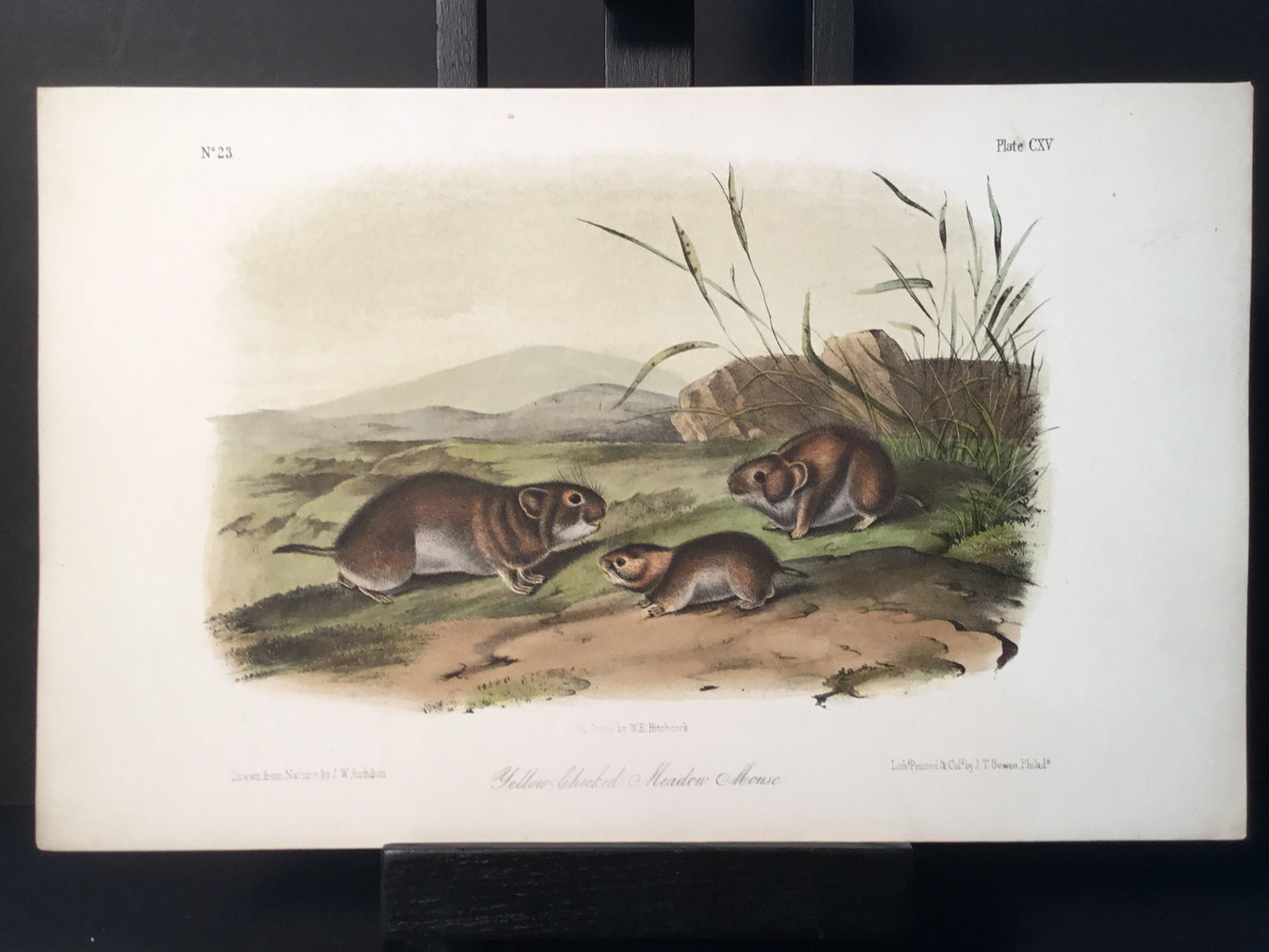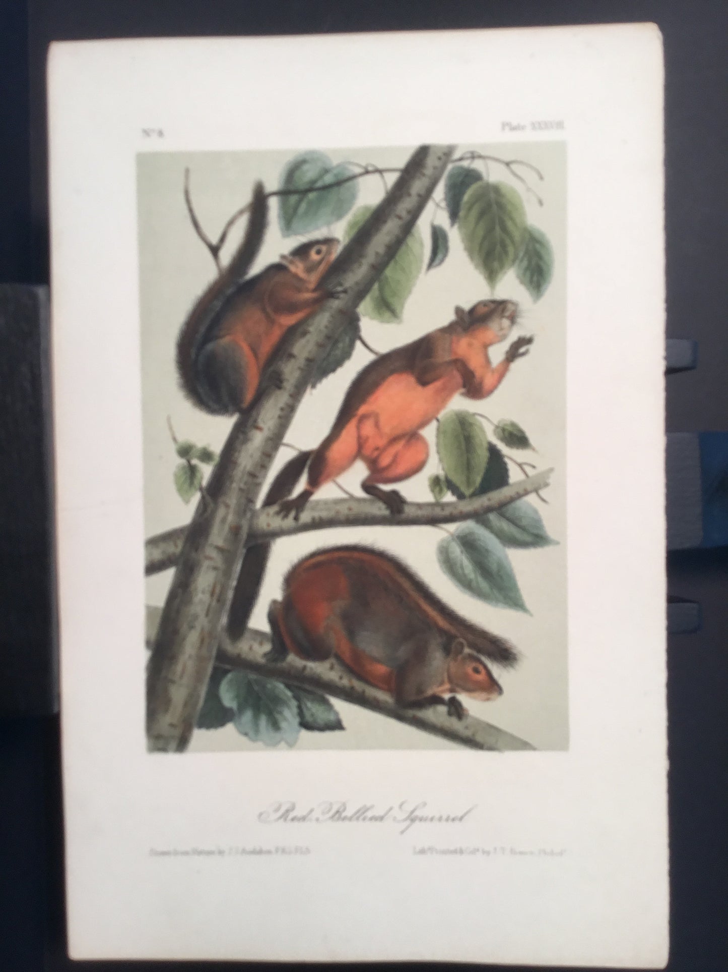 Audubon's sons saw the need to reduce the size of the Imperials, and beginning in 1849, the octavo edition of The Quadrupeds of North America was published in three volumes. Volume 1 was followed in 1851 with the second volume, and the final, the third volume was published in 1854. Between 1,999 and 2,004 sets were published in this first edition. The size for these editions was about 6 1/2 x 10 1/2 inches.
