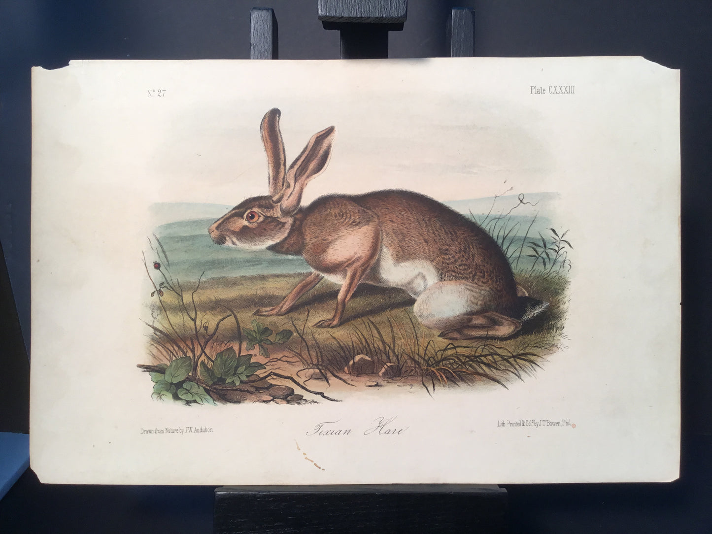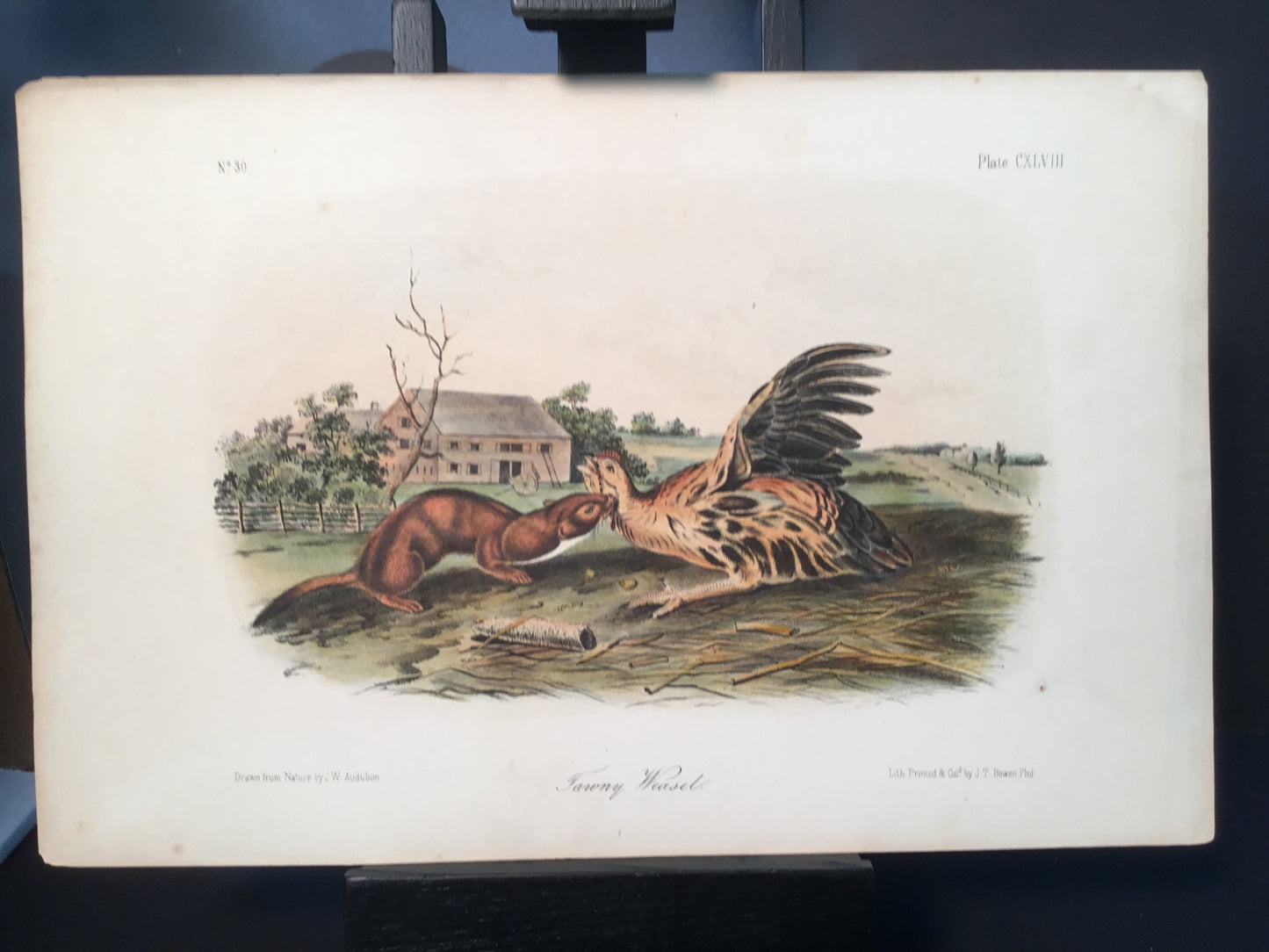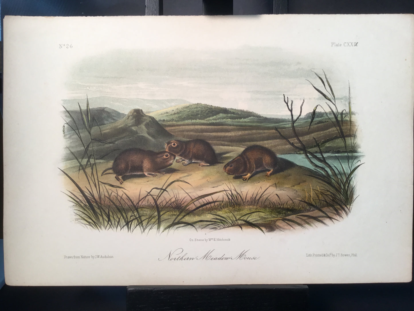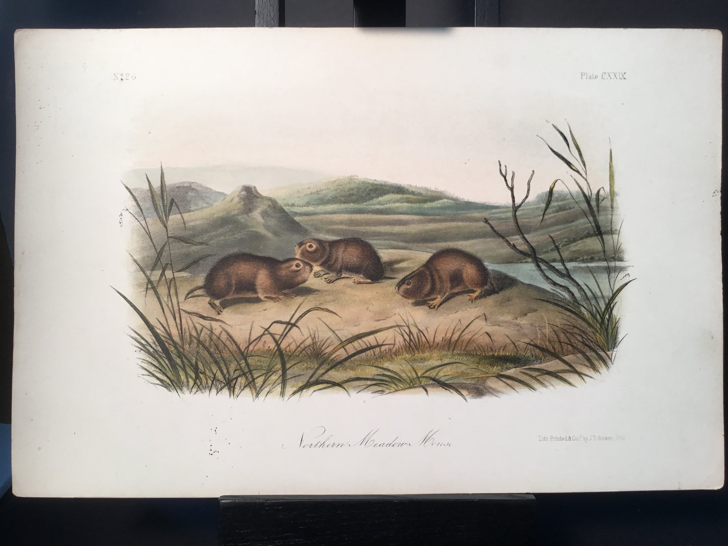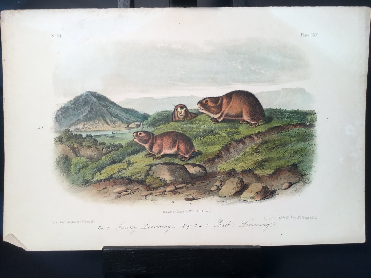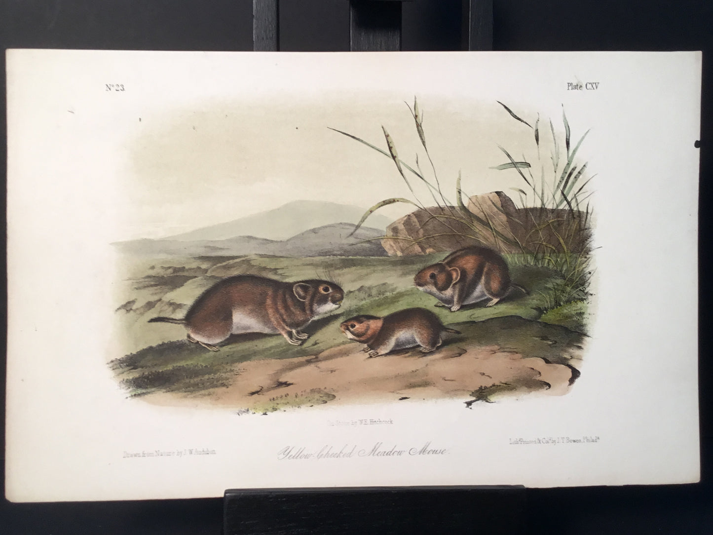 Audubon's sons saw the need to reduce the size of the Imperials, and beginning in 1849, the octavo edition of The Quadrupeds of North America was published in three volumes. Volume 1 was followed in 1851 with the second volume, and the final, the third volume was published in 1854. Between 1,999 and 2,004 sets were published in this first edition. The size for these editions was about 6 1/2 x 10 1/2 inches.