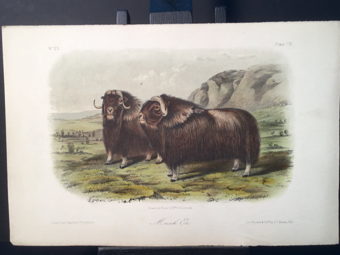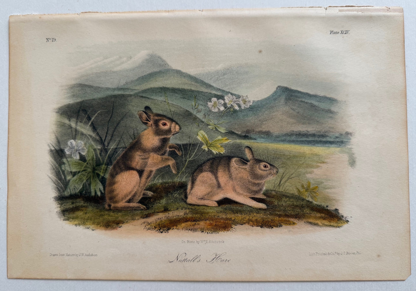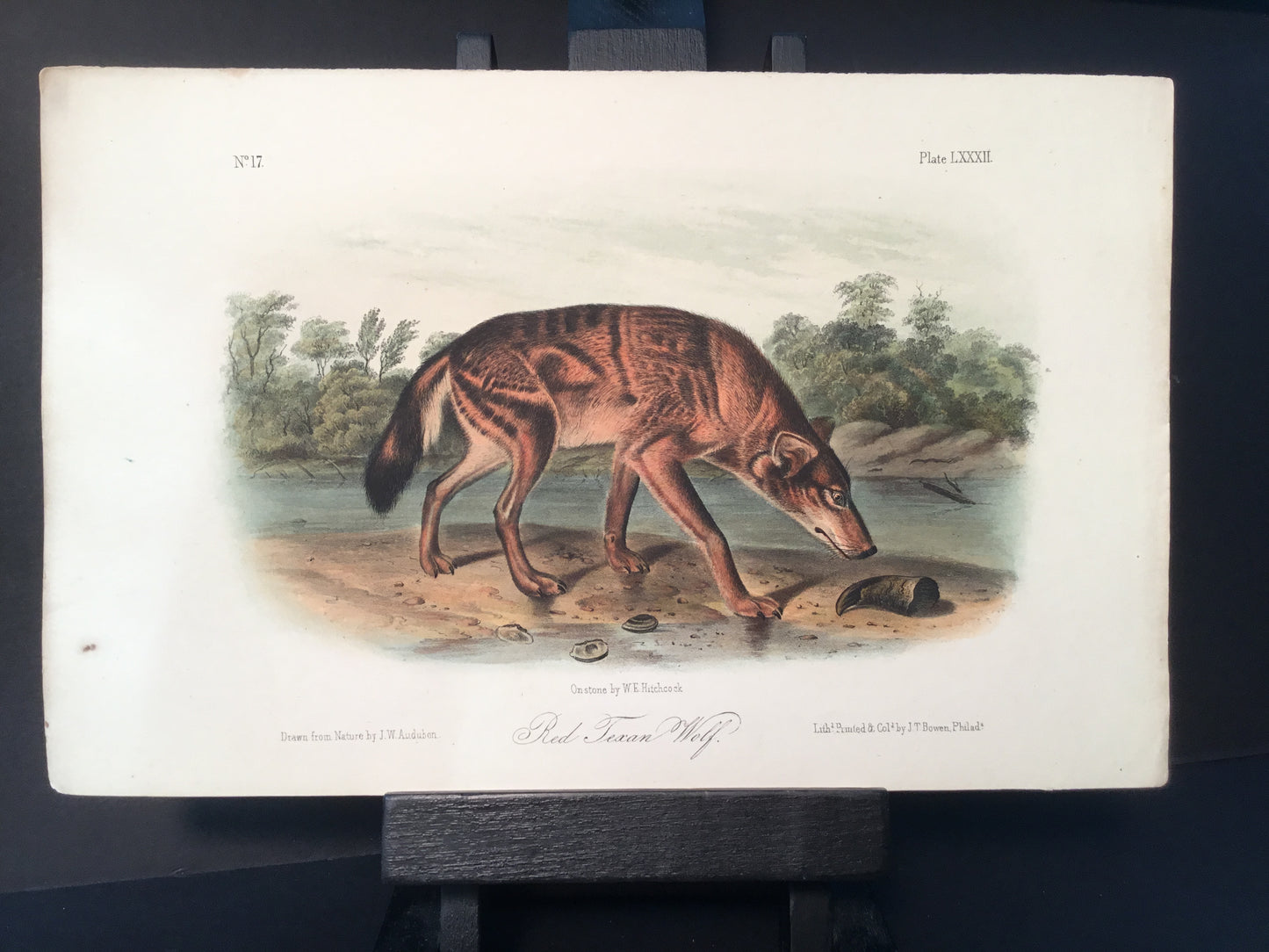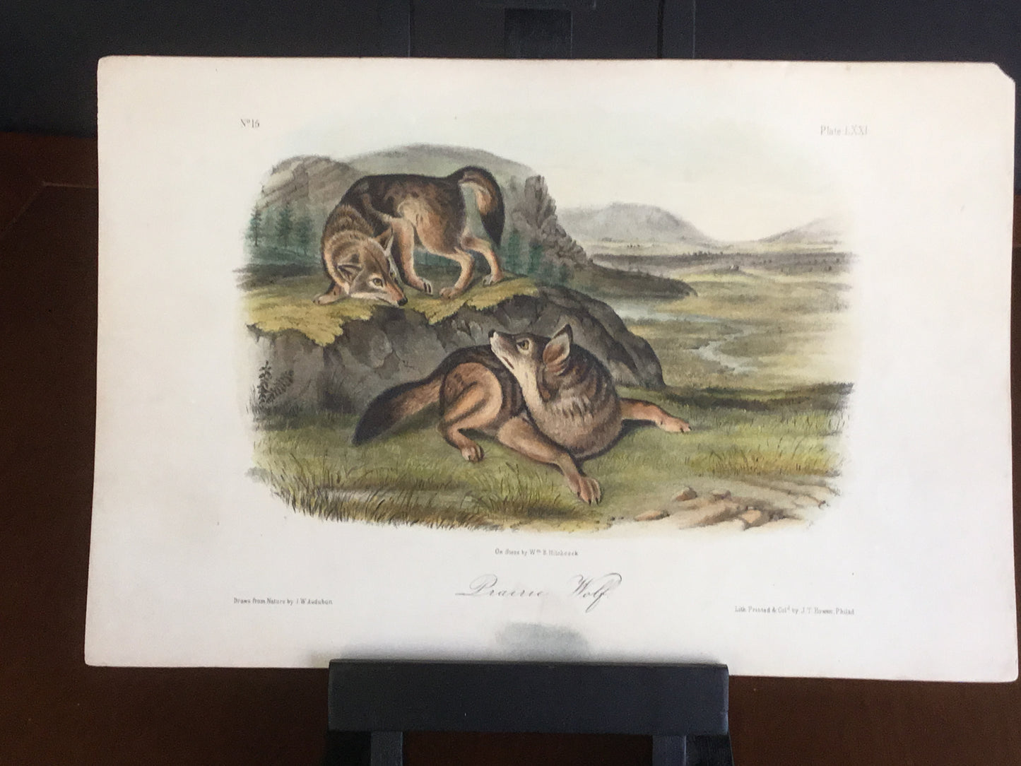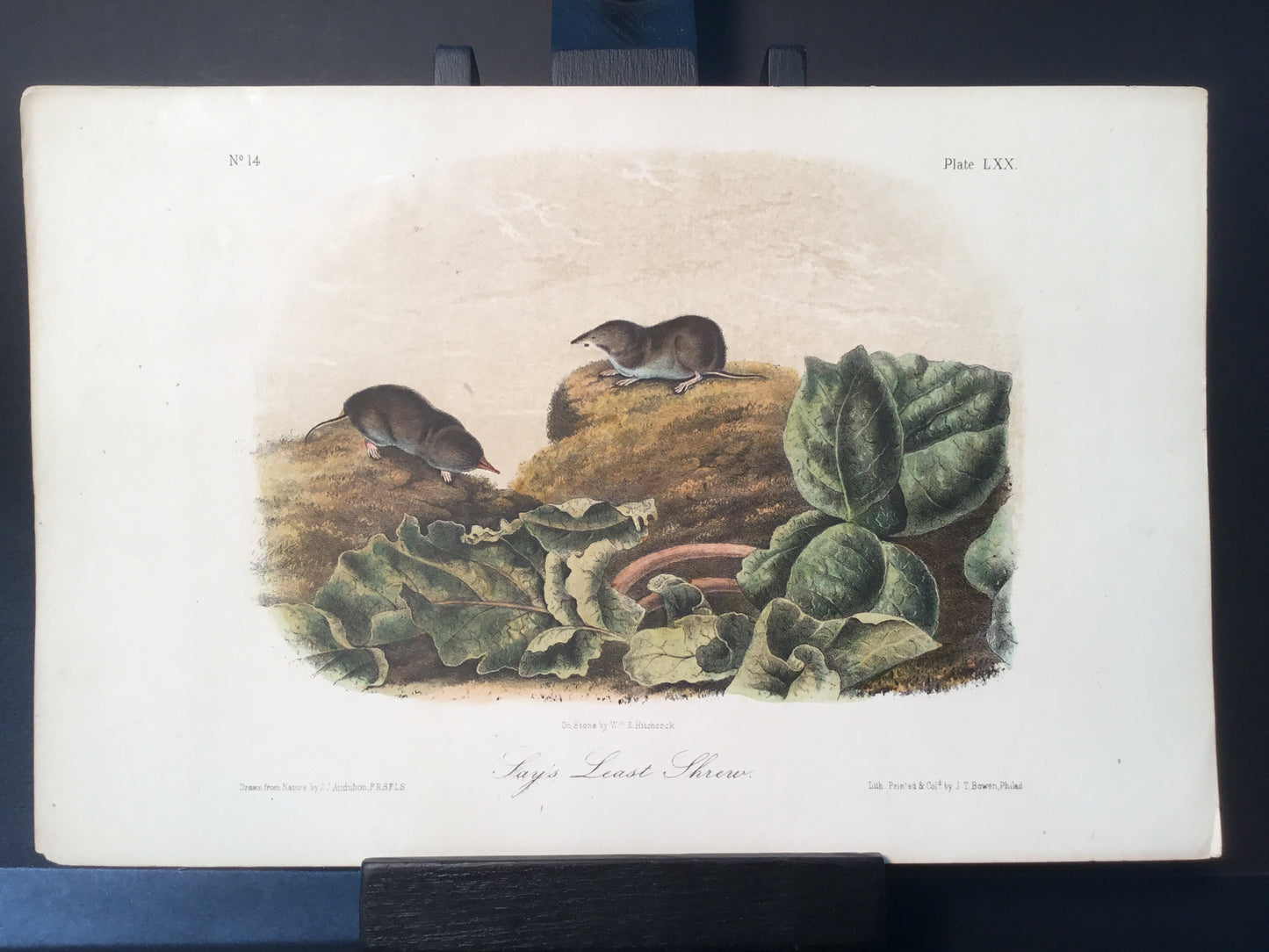 Audubon's sons saw the need to reduce the size of the Imperials, and beginning in 1849, the octavo edition of The Quadrupeds of North America was published in three volumes. Volume 1 was followed in 1851 with the second volume, and the final, the third volume was published in 1854. Between 1,999 and 2,004 sets were published in this first edition. The size for these editions was about 6 1/2 x 10 1/2 inches.