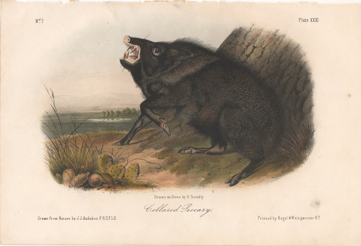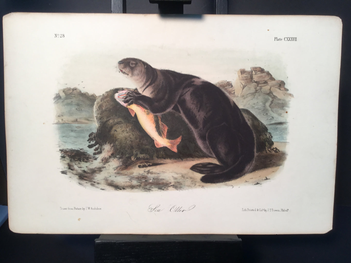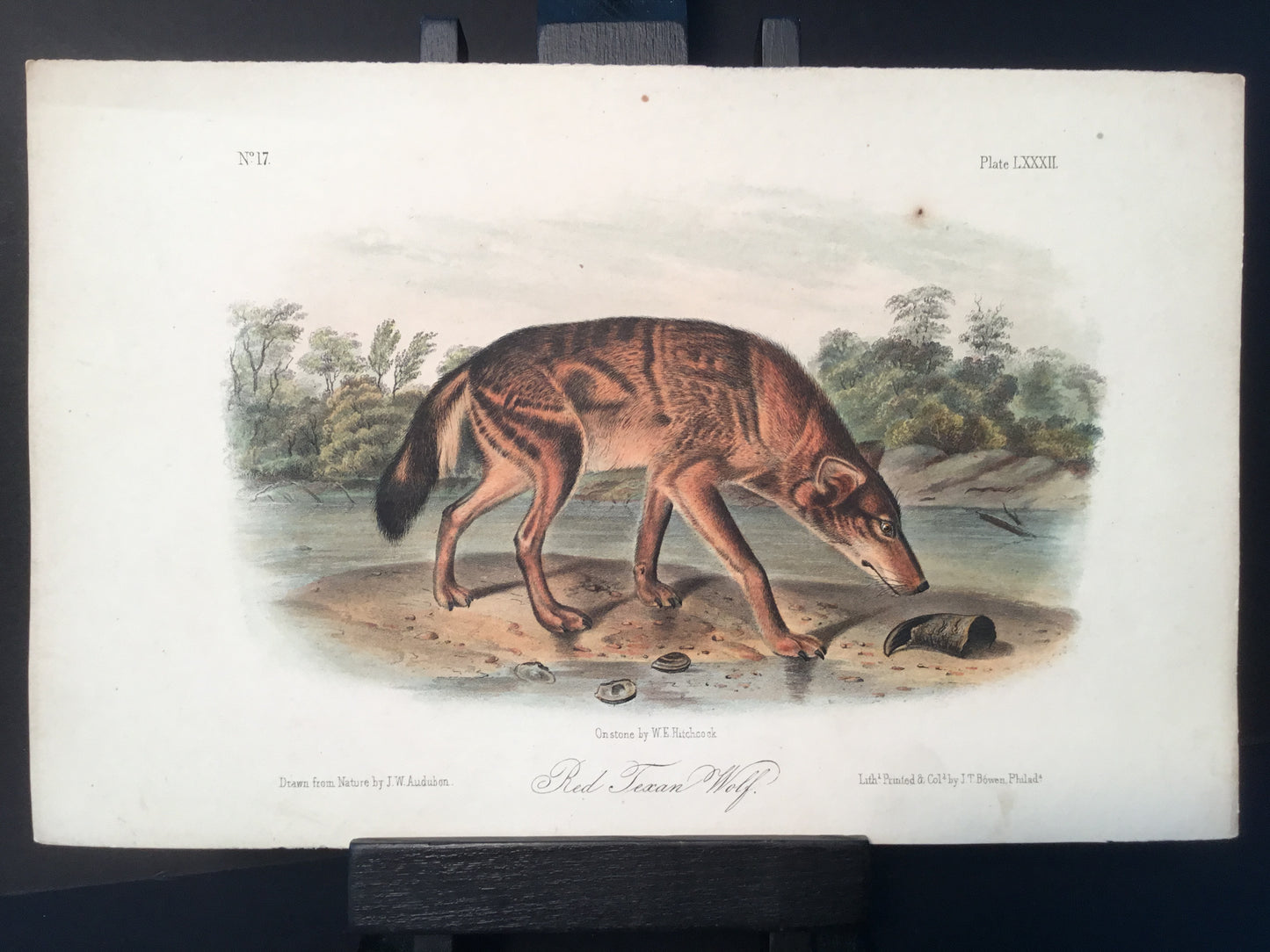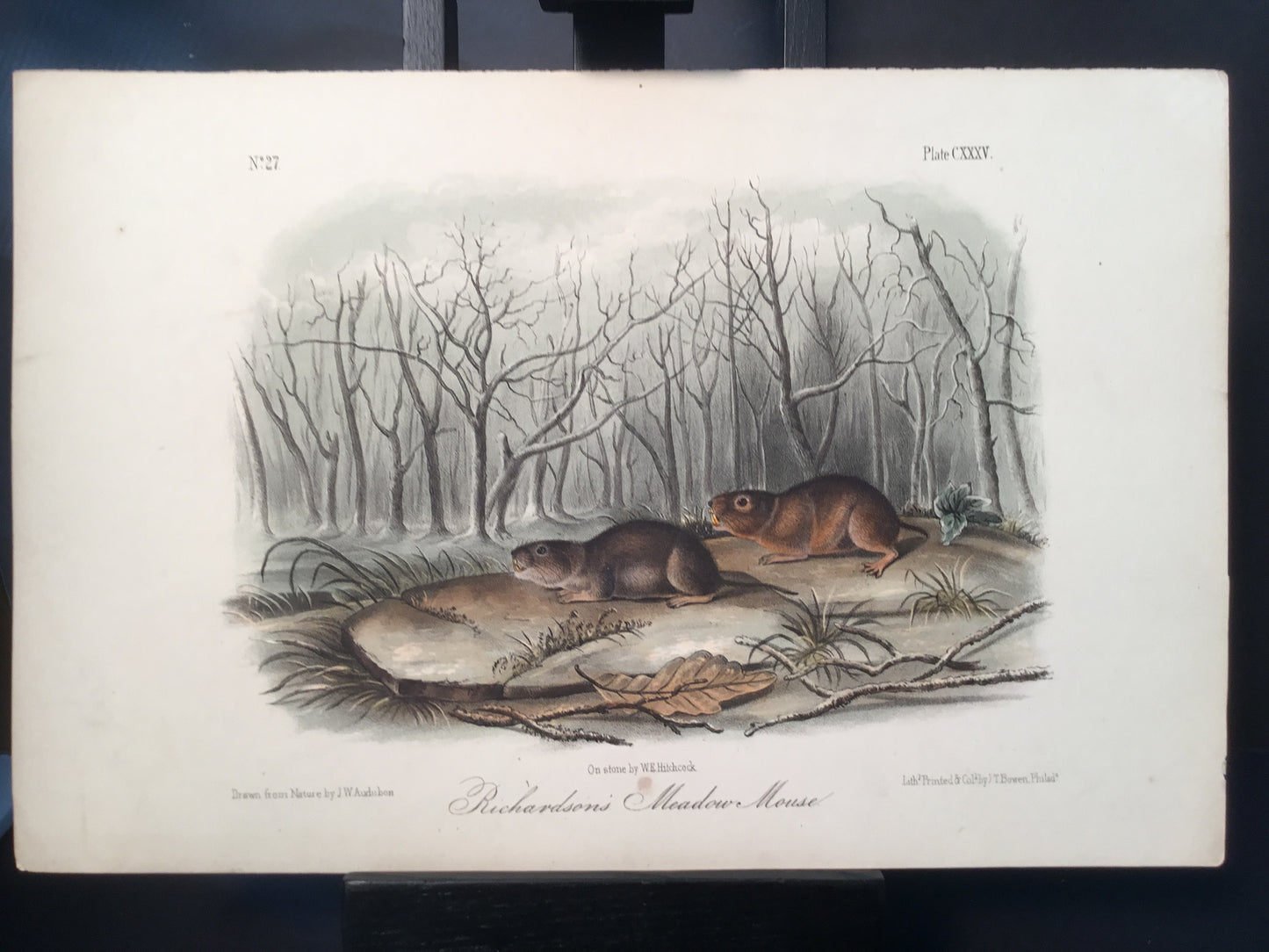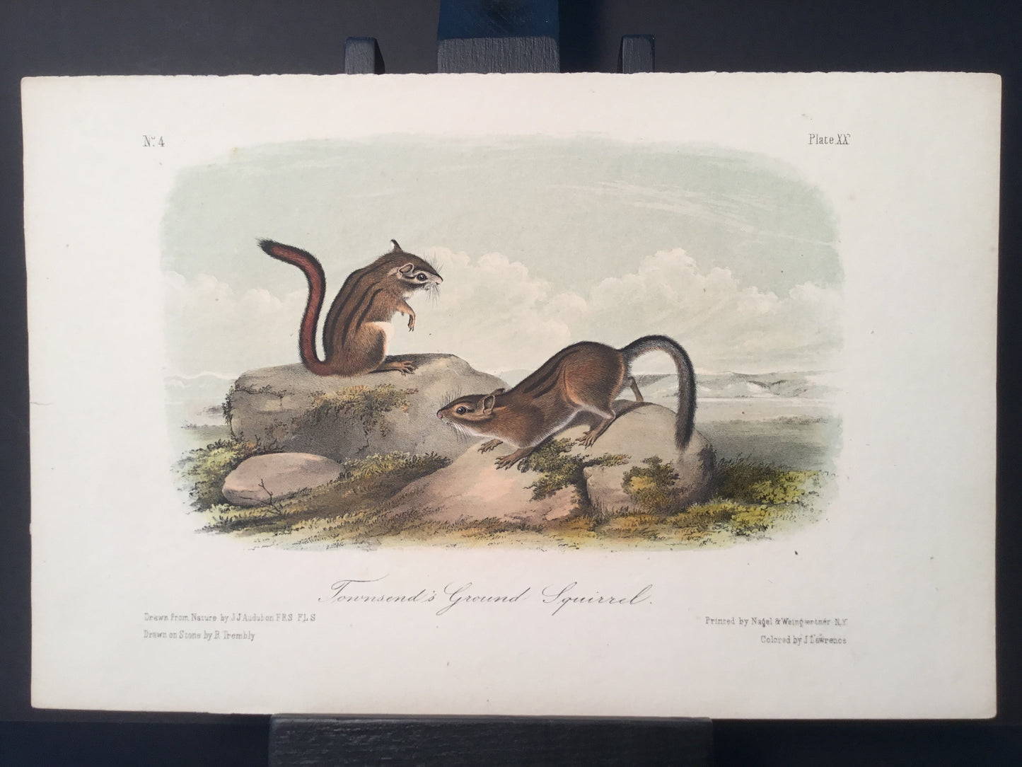 Audubon's sons saw the need to reduce the size of the Imperials, and beginning in 1849, the octavo edition of The Quadrupeds of North America was published in three volumes. Volume 1 was followed in 1851 with the second volume, and the final, the third volume was published in 1854. Between 1,999 and 2,004 sets were published in this first edition. The size for these editions was about 6 1/2 x 10 1/2 inches.