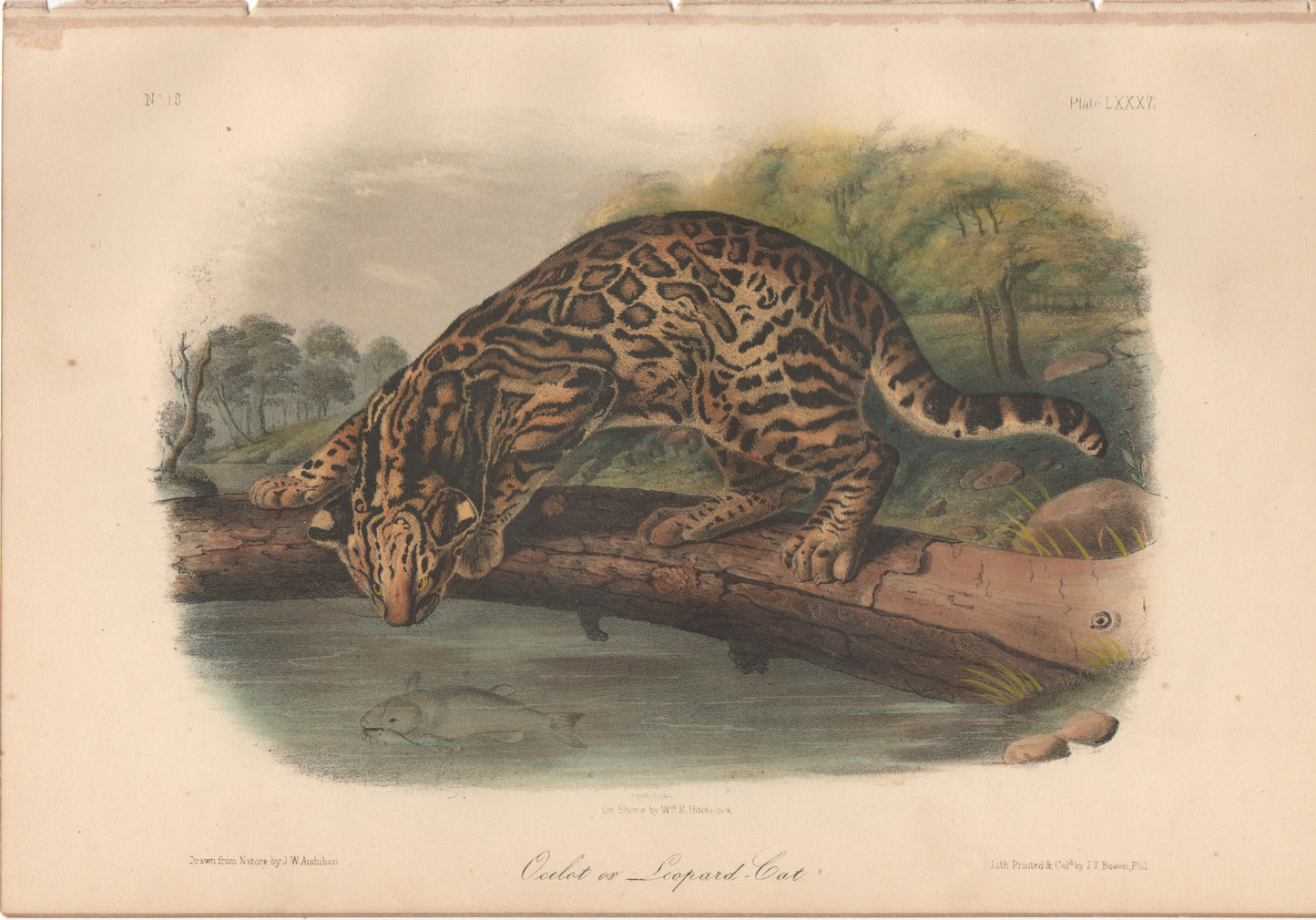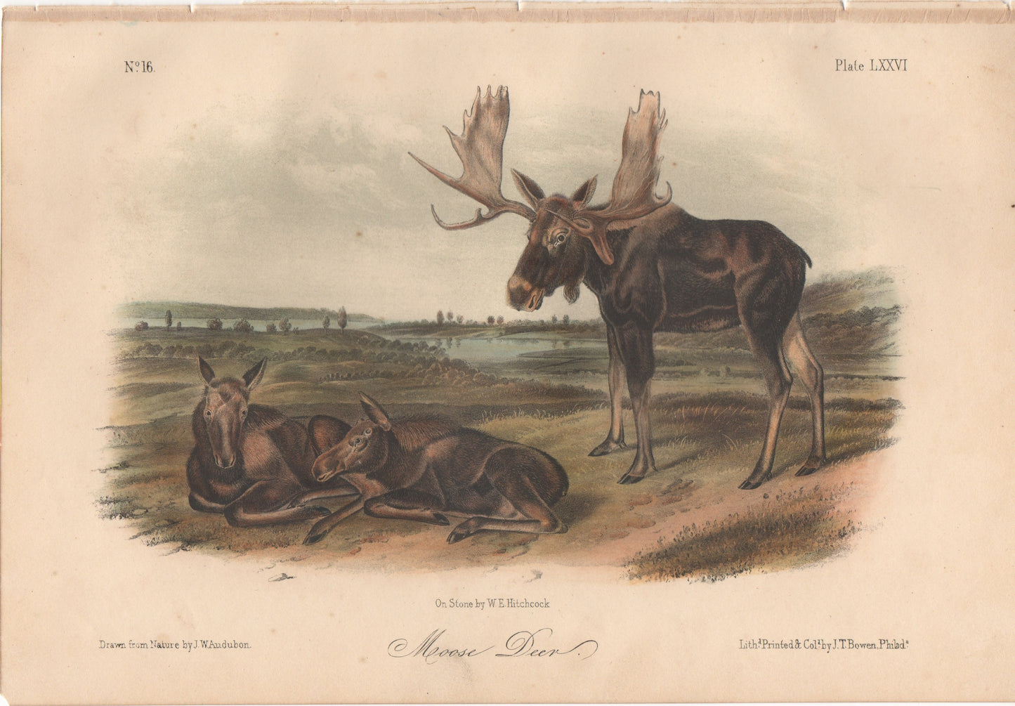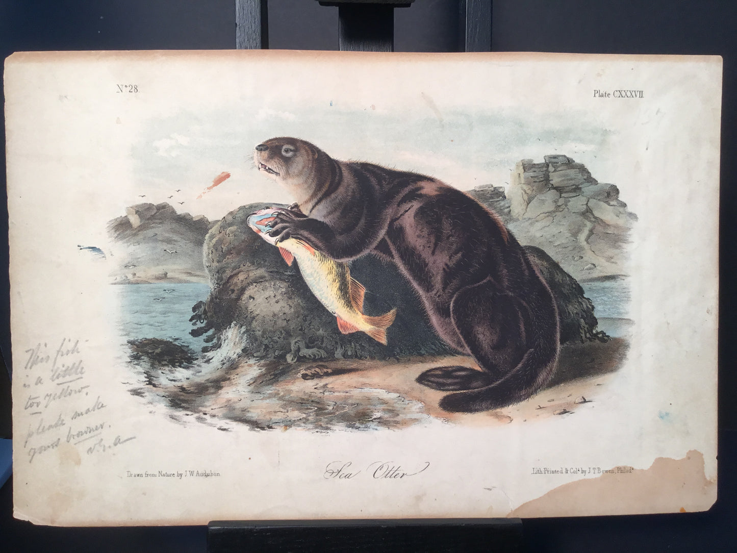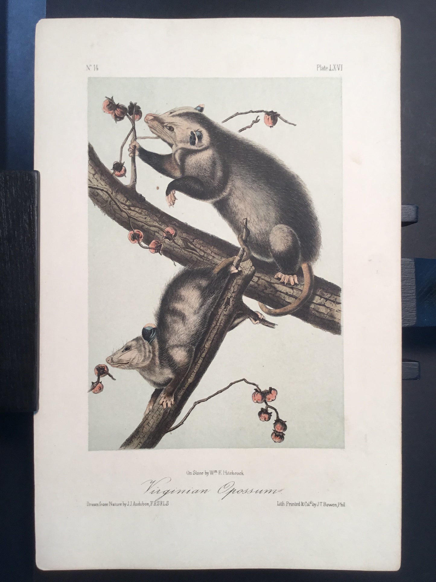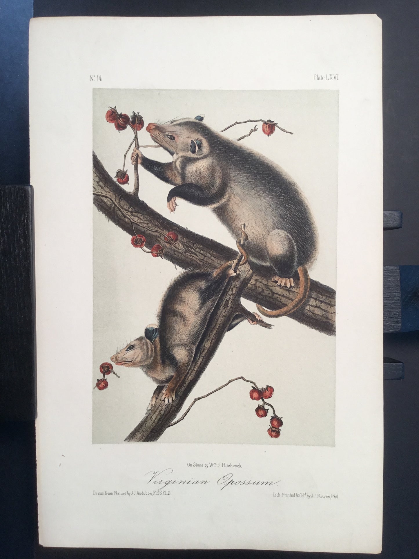 Audubon's sons saw the need to reduce the size of the Imperials, and beginning in 1849, the octavo edition of The Quadrupeds of North America was published in three volumes. Volume 1 was followed in 1851 with the second volume, and the final, the third volume was published in 1854. Between 1,999 and 2,004 sets were published in this first edition. The size for these editions was about 6 1/2 x 10 1/2 inches.