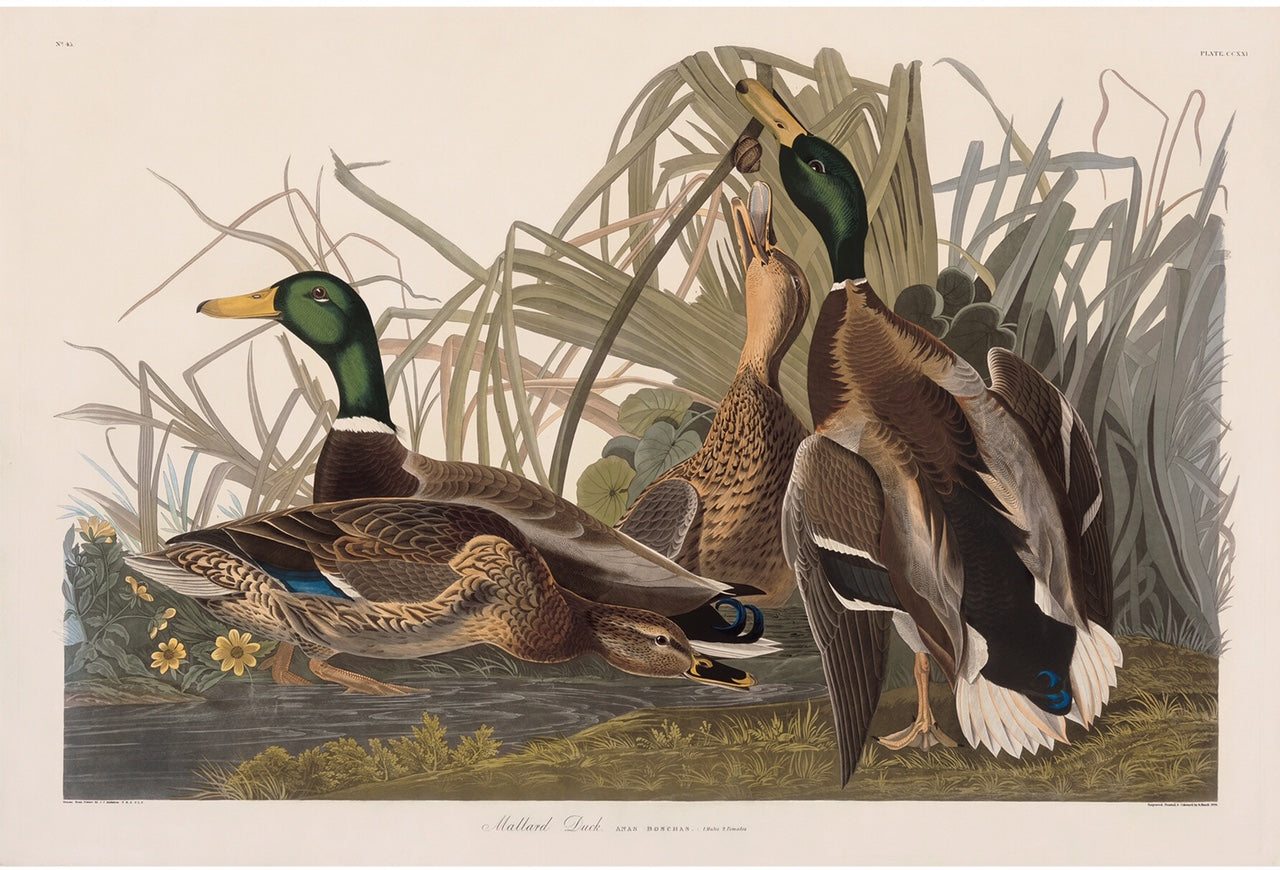 Audubon double elephant prints are large Audubon prints measuring more than two feet by three feet with birds in the foreground portrayed life-size. "Double elephant" is an English term denoting this extra-large size. Being facsimiles, they are the same size as Audubon's originals. The Audubon fine art prints offered here are from the Princeton Edition - the world's only direct camera edition - and the Rare Prints and Princeton giclee fine art editions. So, bring the outdoors indoors with exceptional Audubon fine art, reviewed as the finest ever produced.