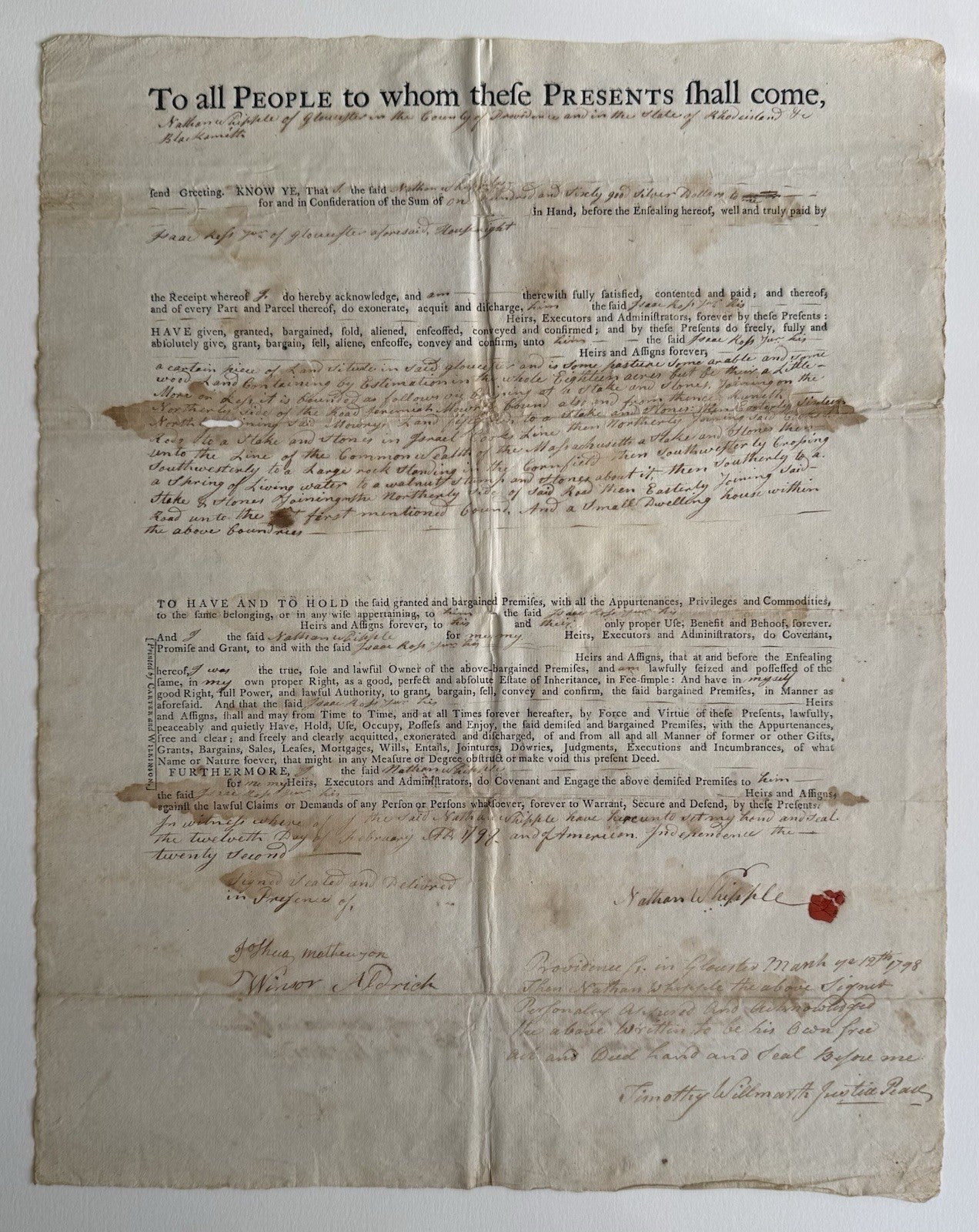 Revolutionary War Era Massachusetts Bay Deed