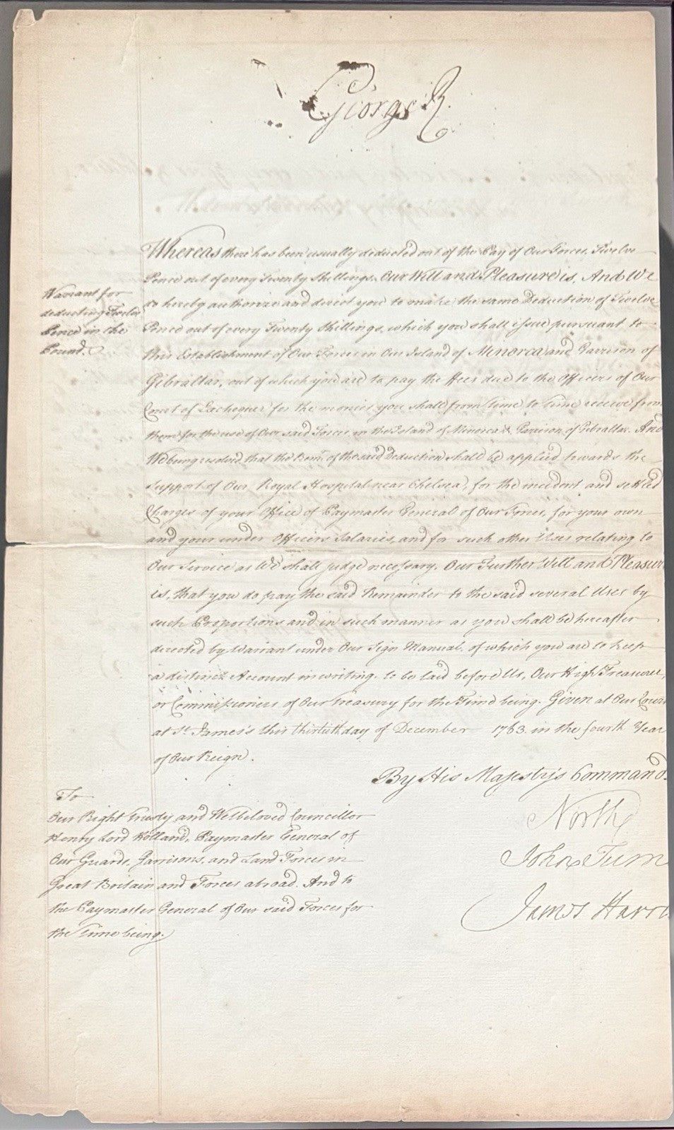 King George III Signed Gibralter Document 1763