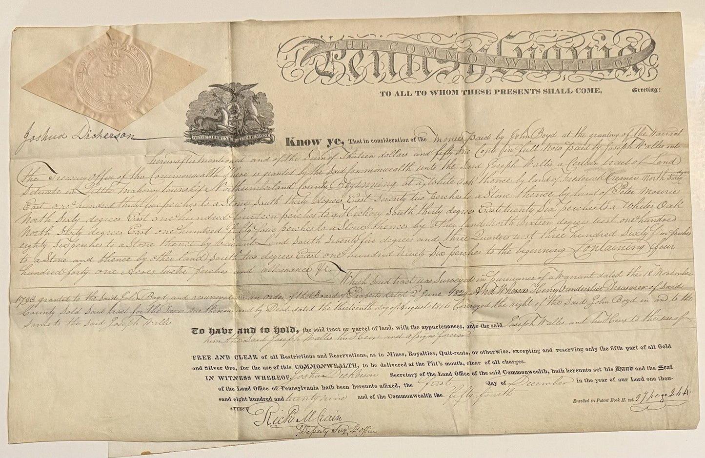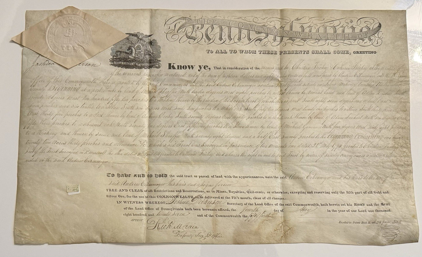Pennsylvania Land Patent 1827