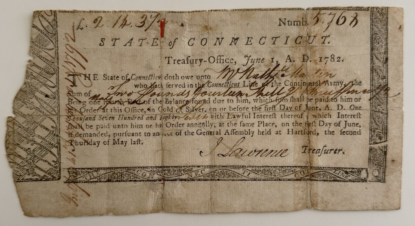 Revolutionary War Pay Voucher 1782