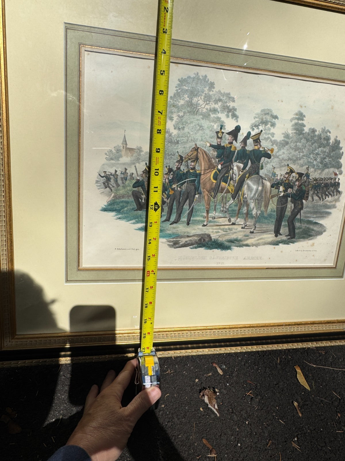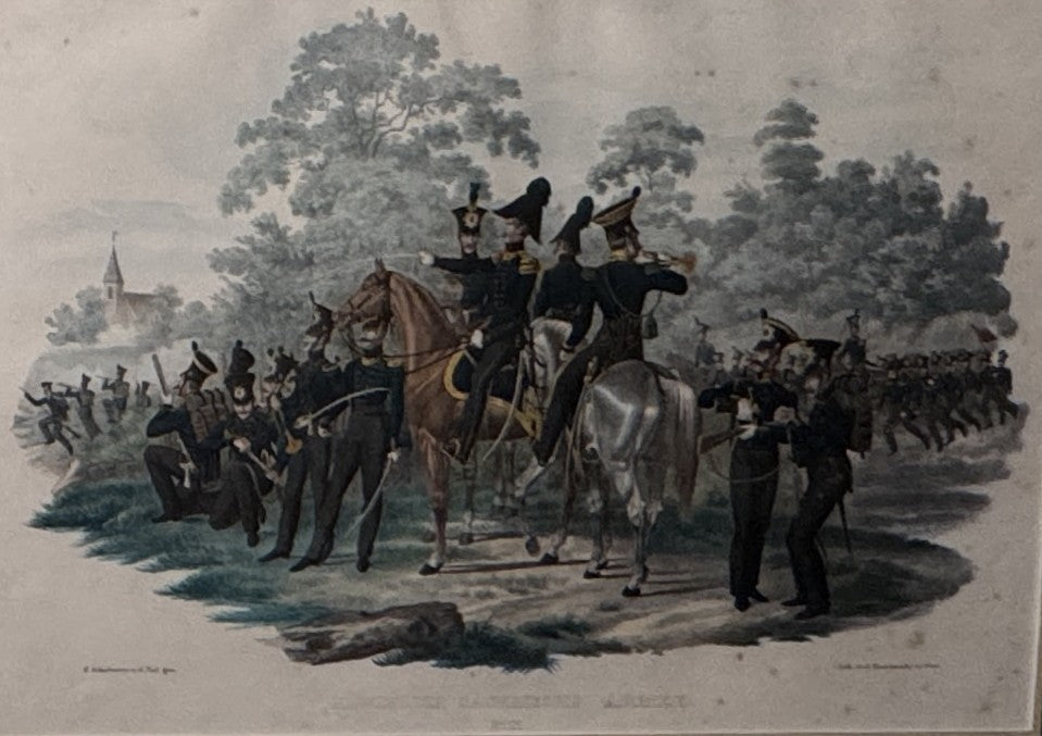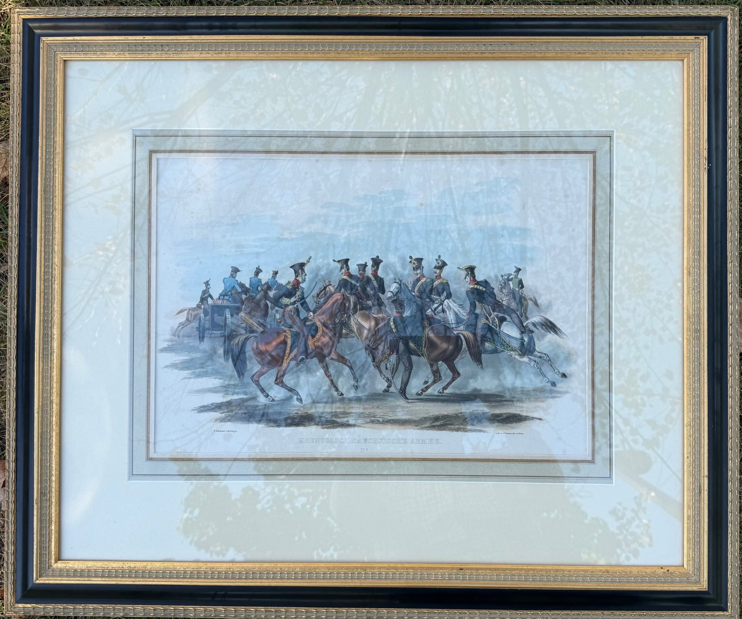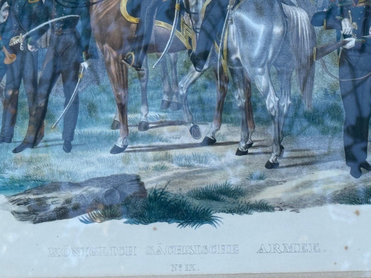 The image is the Royal Saxon Army. The print shows cavalry officers in full dress uniform mounted on horseback.