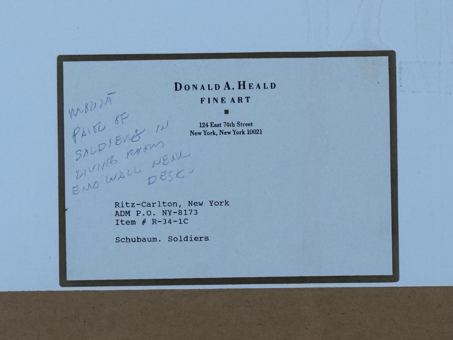 Two Original Schubauers framed, from the Presidential Suite at Ritz Carlton, NY