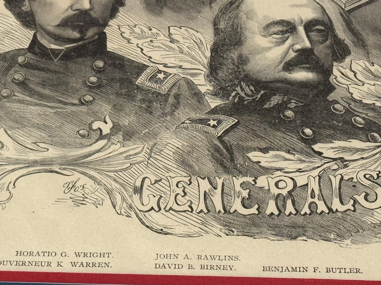 Woodcut Print, Grant And The Generals Of The Army Of The Patomac, Framed