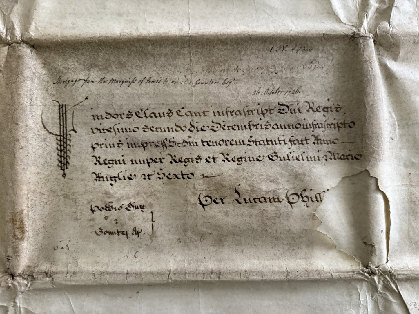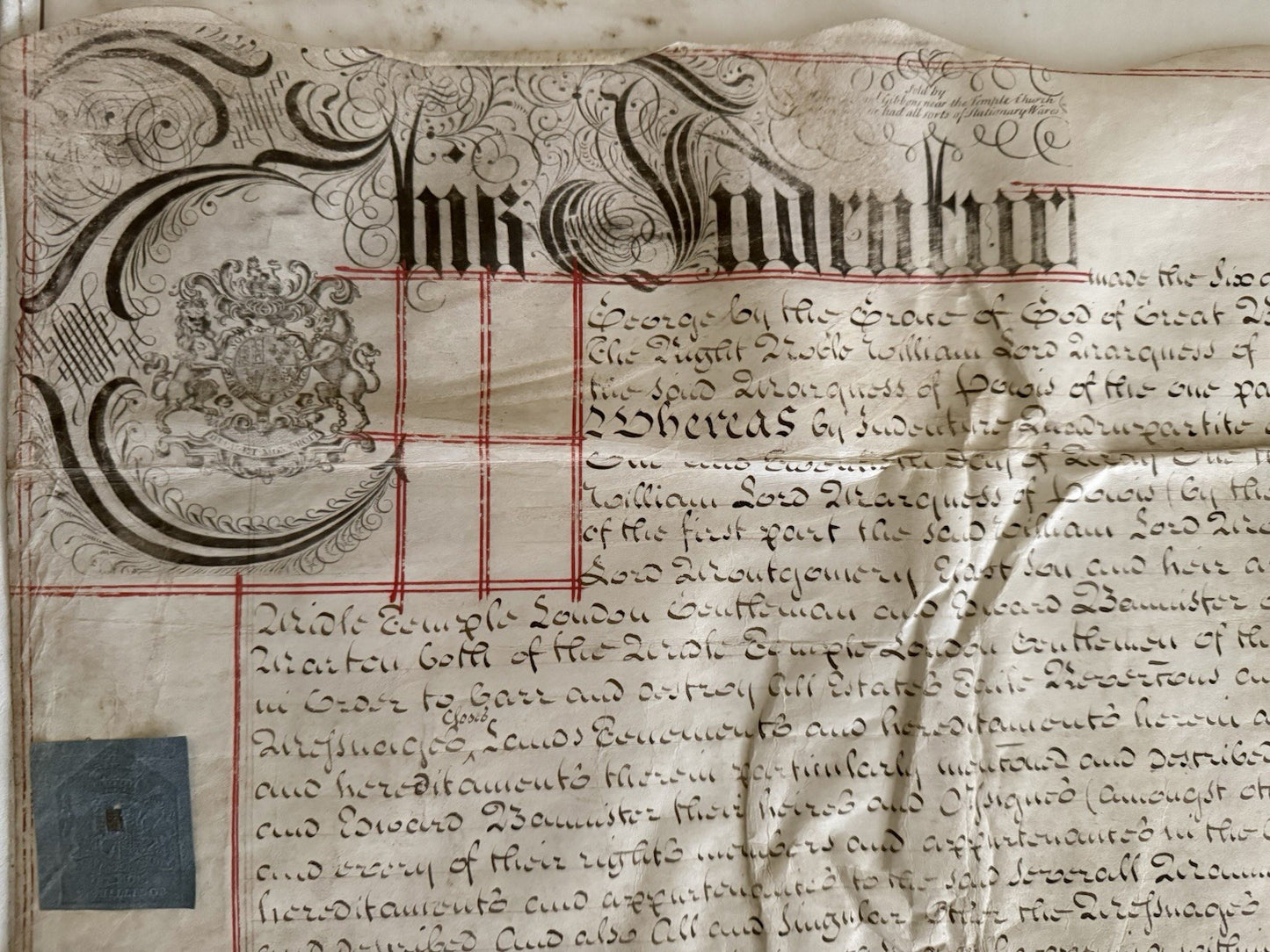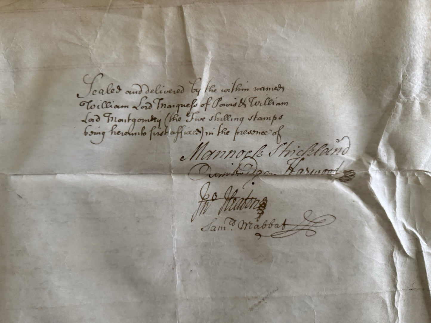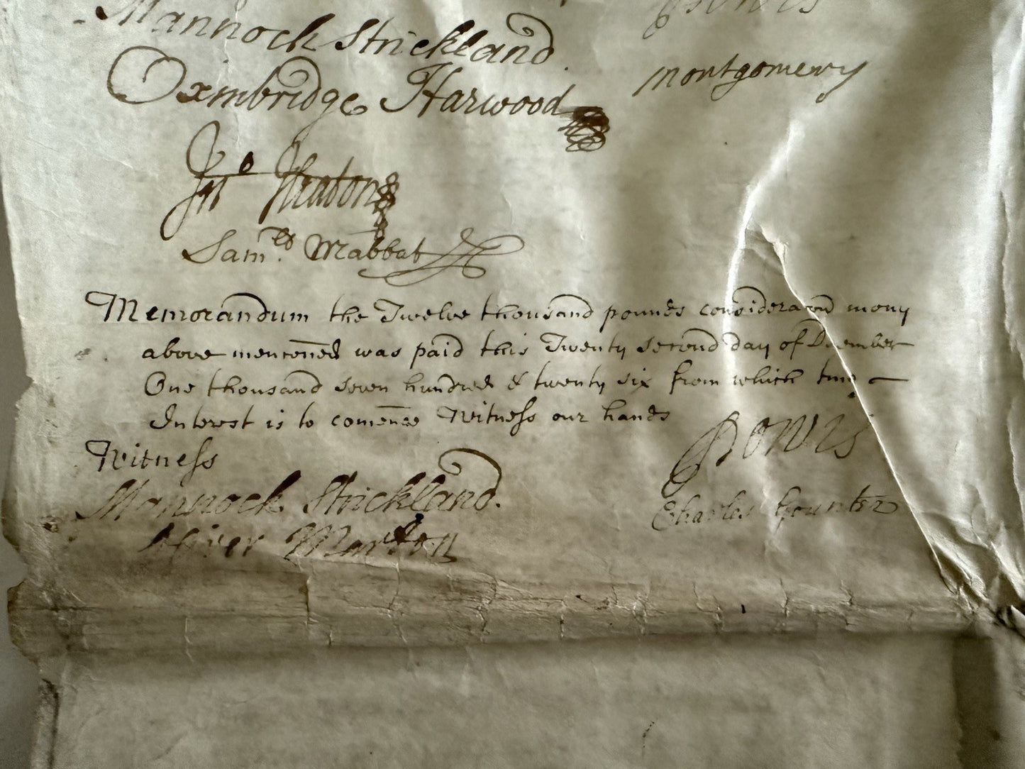 1726 Vellum Indenture Four Pages 26 X 31 Inches