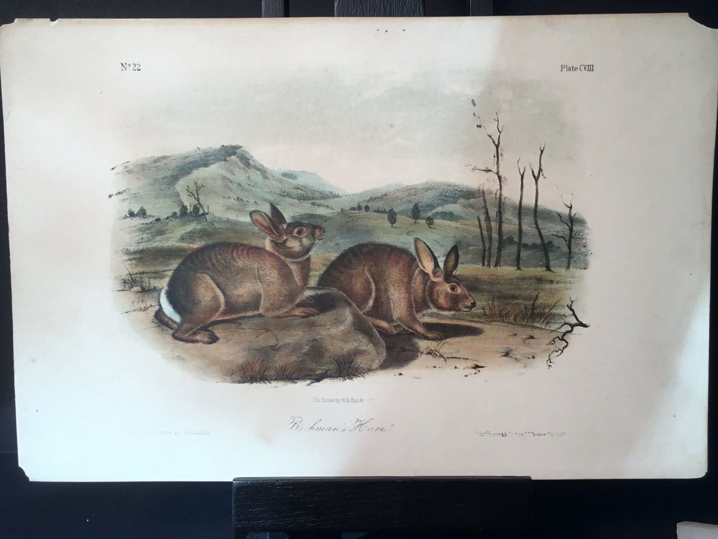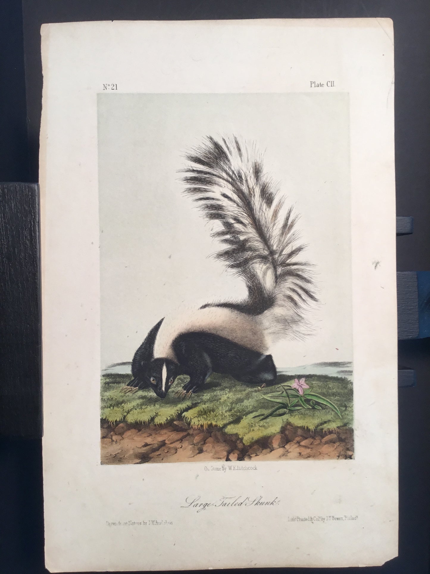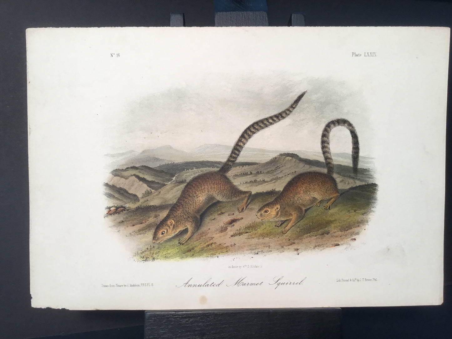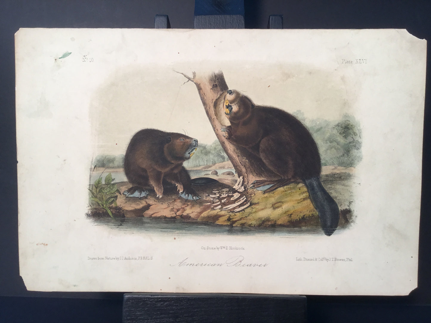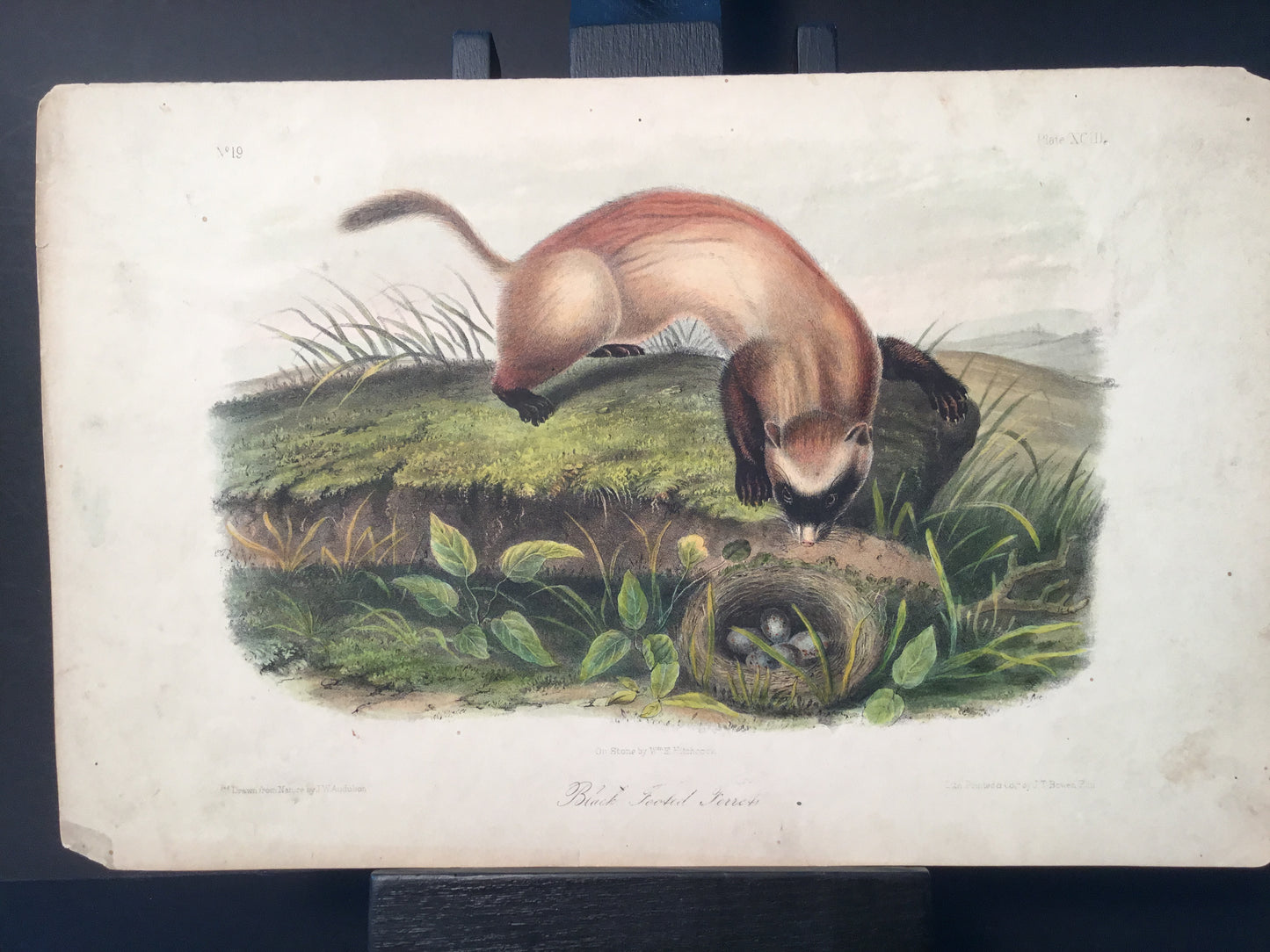Found in 1923 by Mary A. Guerrero Lord who was visiting her mother Henrietta Potter James, who owned a house on the corner of South 9th Street and what is now known as Bonaparte Ct. in Philadelphia. These Octavo prints were bundled and abandoned in a back alley near the second studio that Bowen used in the 1800’s when producing Audubon’s birds and quadrupeds. Some of these prints have penciled in instructions from Victor Audubon. One has his signature. Others have Pattern written across the top. Many have worn corners, as one would expect from a print that was a touchstone for colorists. Generally, there are two or three of each image. We cannot definitively say that all were pattern prints, but evidently they were purposely kept or for some time by Bowen, and perhaps forgotten after his death. We will provide a Certificate of Authenticity noting that they are part of the Lord-Hopkins collection - the last known prints to come from Bowen’s studio.