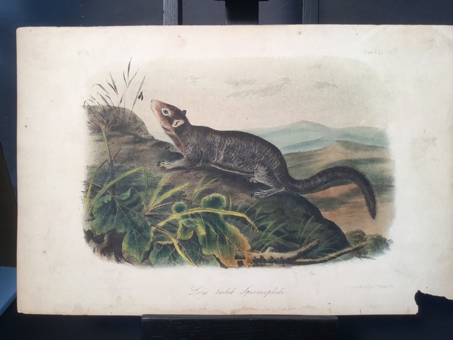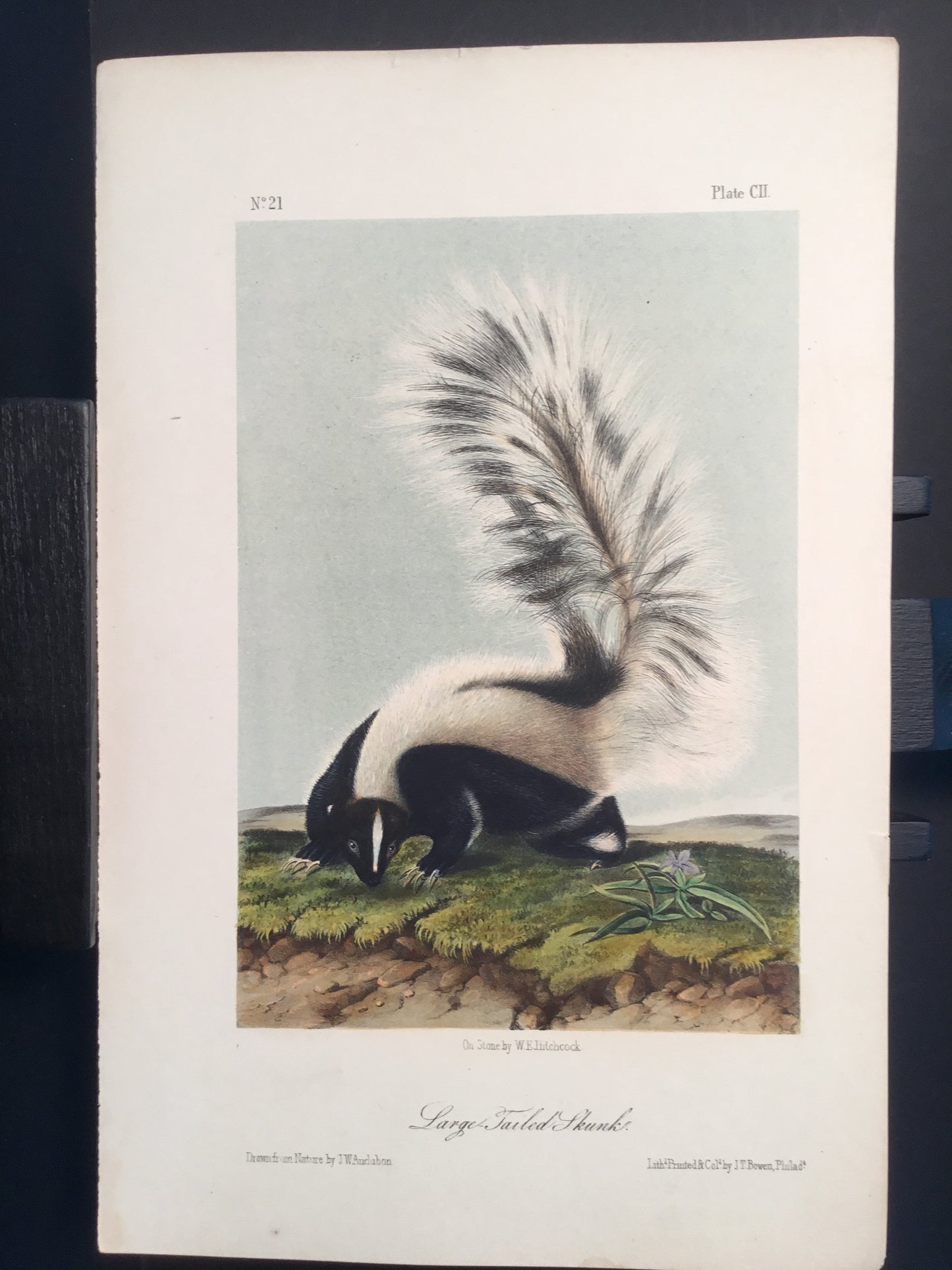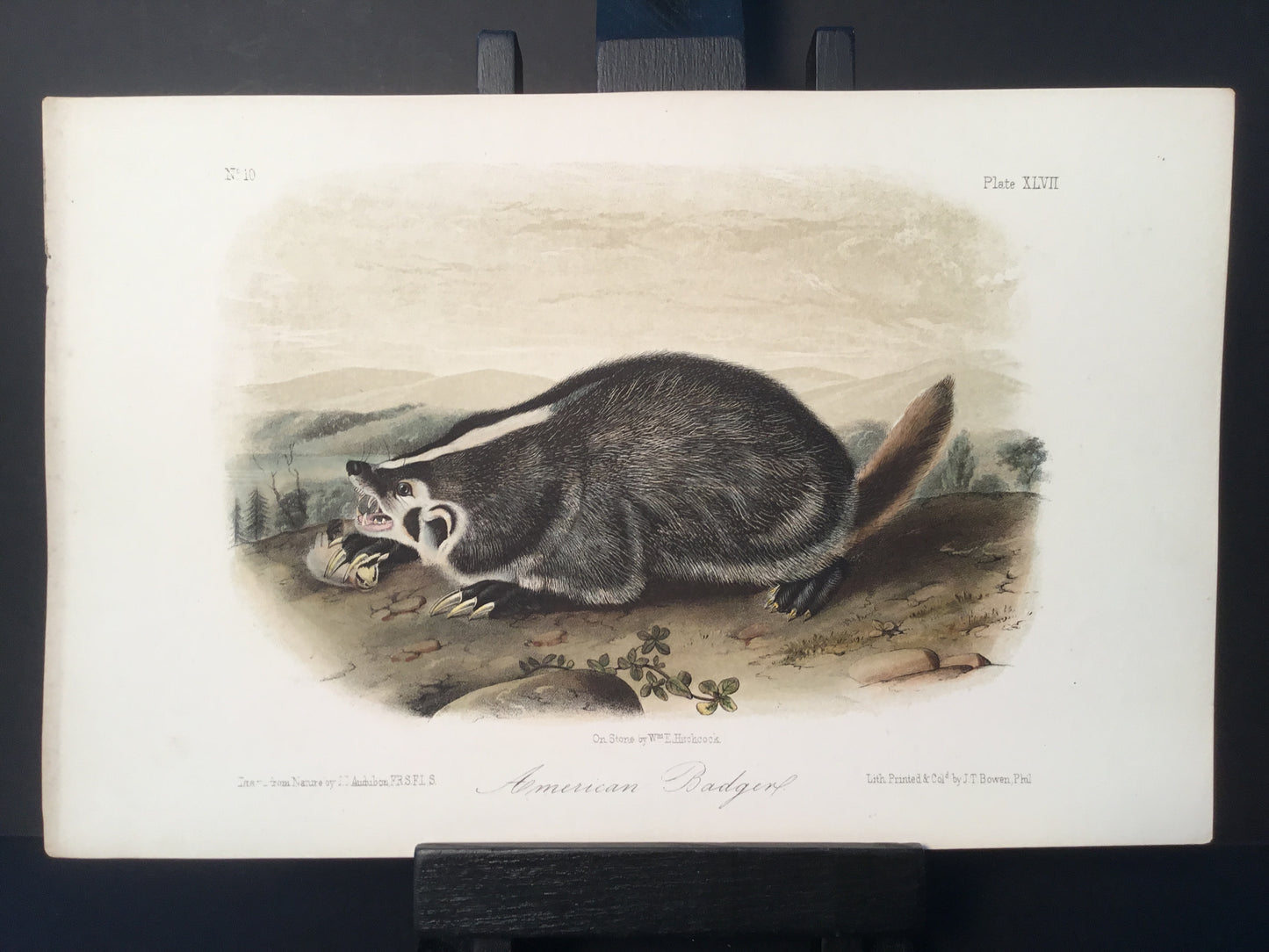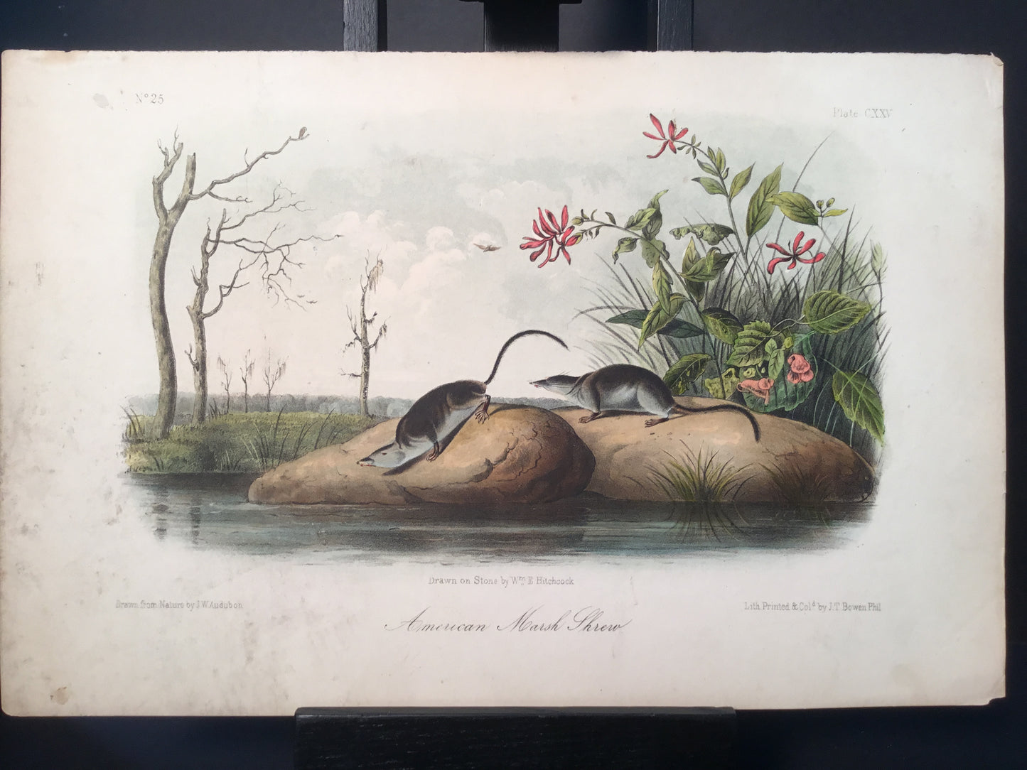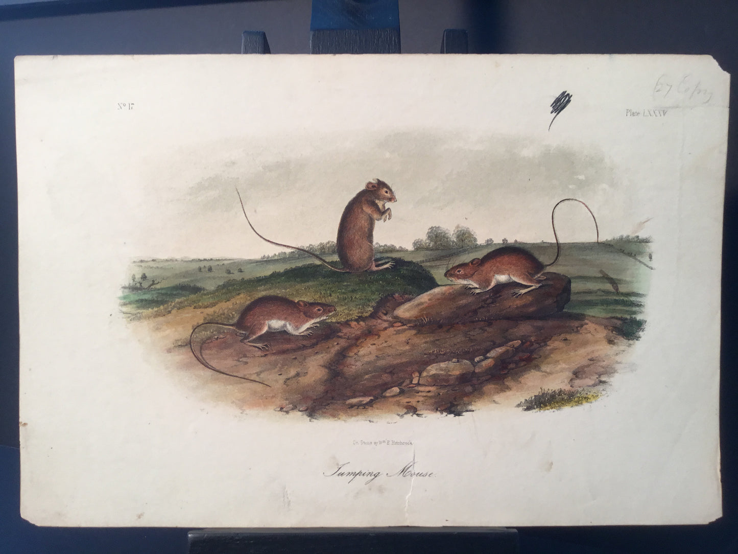 Found in 1923 by Mary A. Guerrero Lord who was visiting her mother Henrietta Potter James, who owned a house on the corner of South 9th Street and what is now known as Bonaparte Ct. in Philadelphia. These Octavo prints were bundled and abandoned in a back alley near the second studio that Bowen used in the 1800’s when producing Audubon’s birds and quadrupeds. Some of these prints have penciled in instructions from Victor Audubon. One has his signature. Others have Pattern written across the top. Many have worn corners, as one would expect from a print that was a touchstone for colorists. Generally, there are two or three of each image. We cannot definitively say that all were pattern prints, but evidently they were purposely kept or for some time by Bowen, and perhaps forgotten after his death. We will provide a Certificate of Authenticity noting that they are part of the Lord-Hopkins collection - the last known prints to come from Bowen’s studio.
