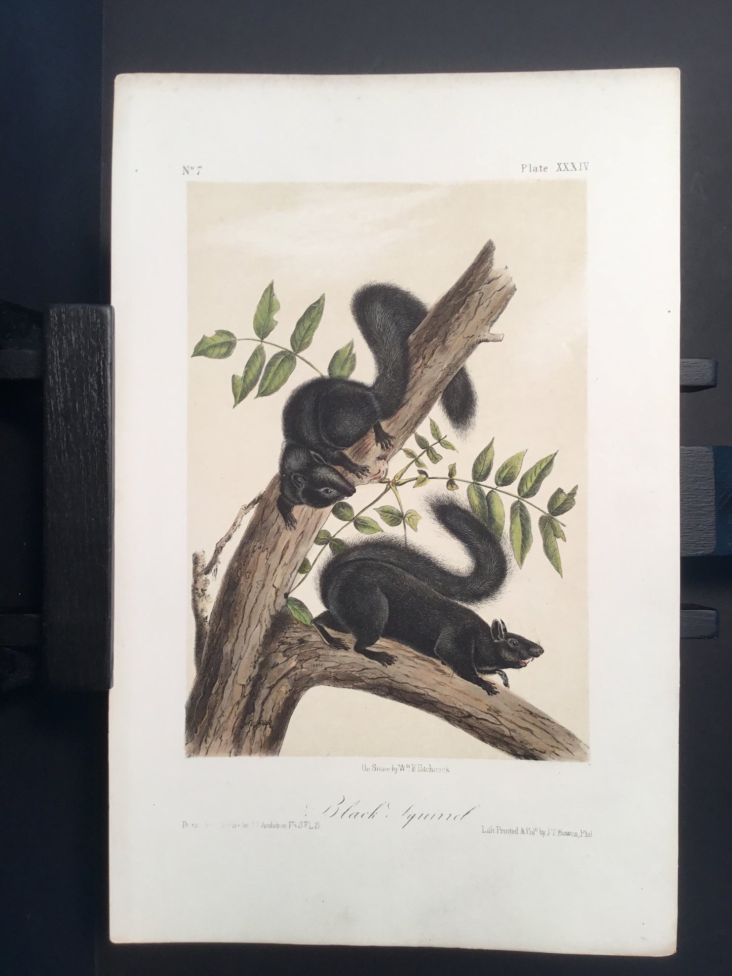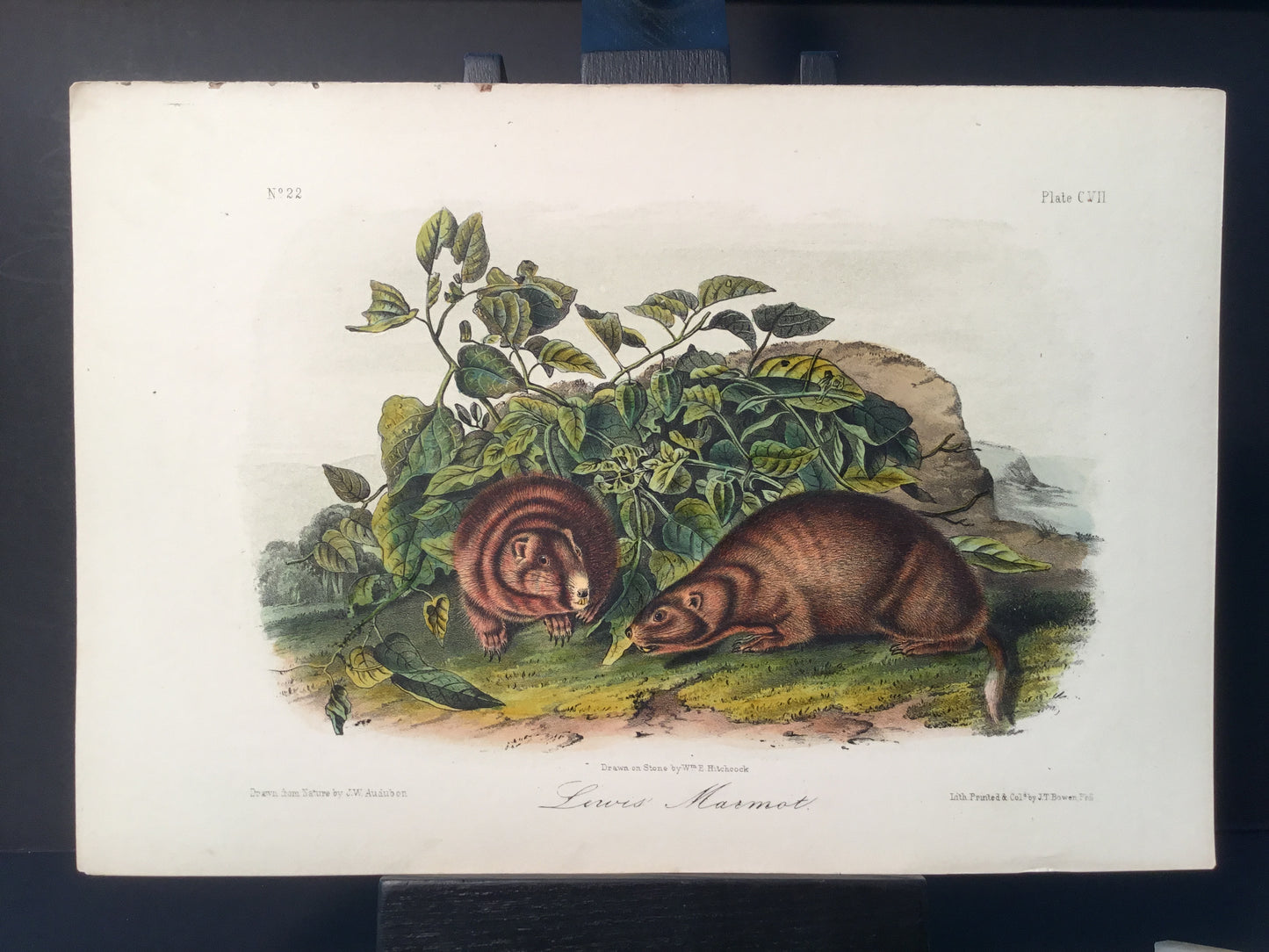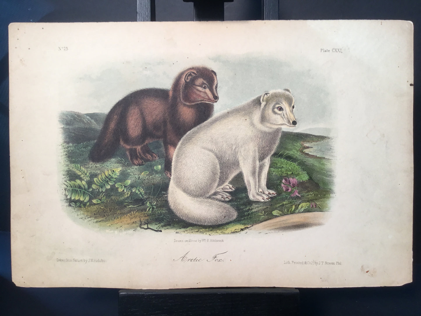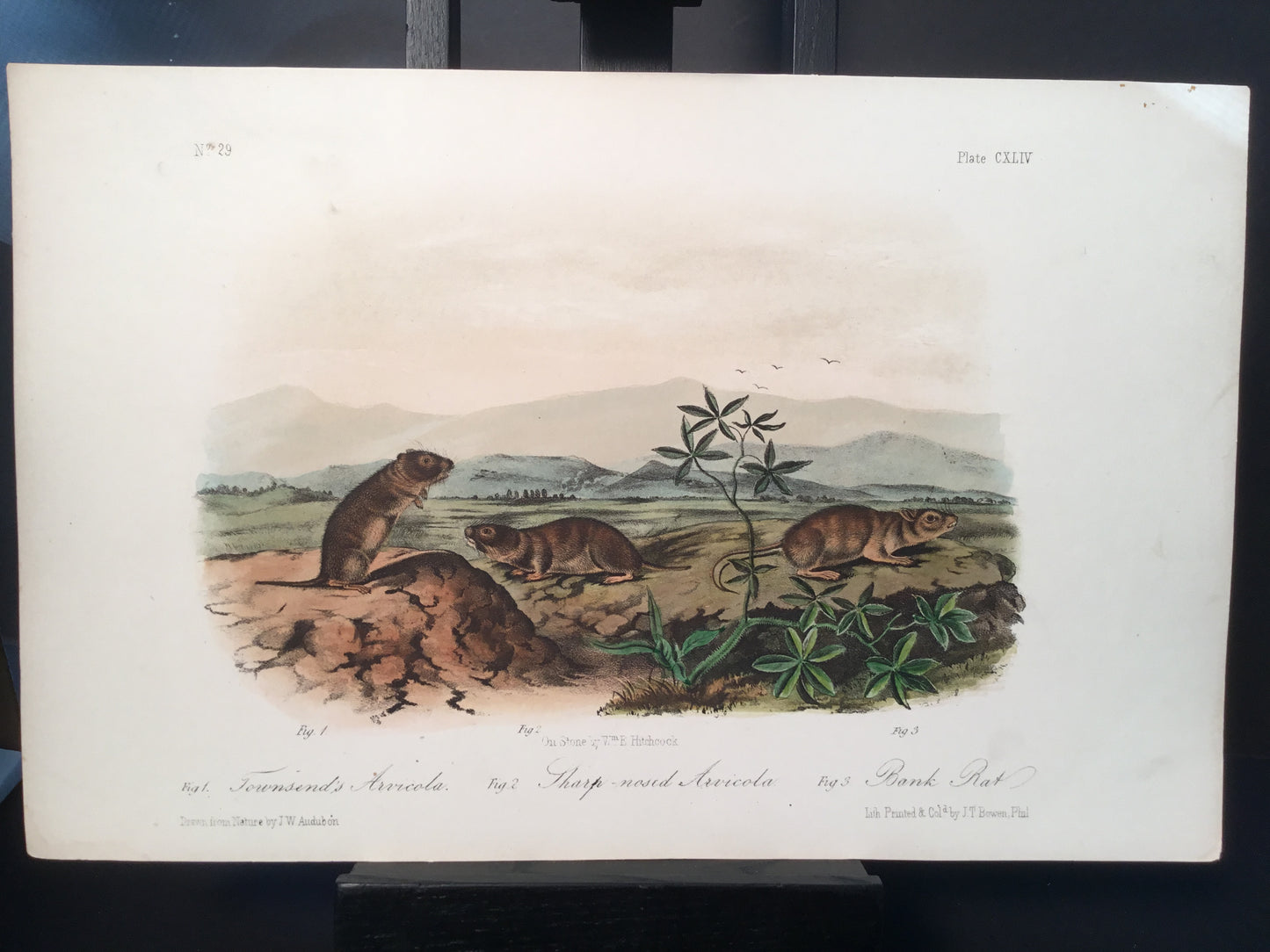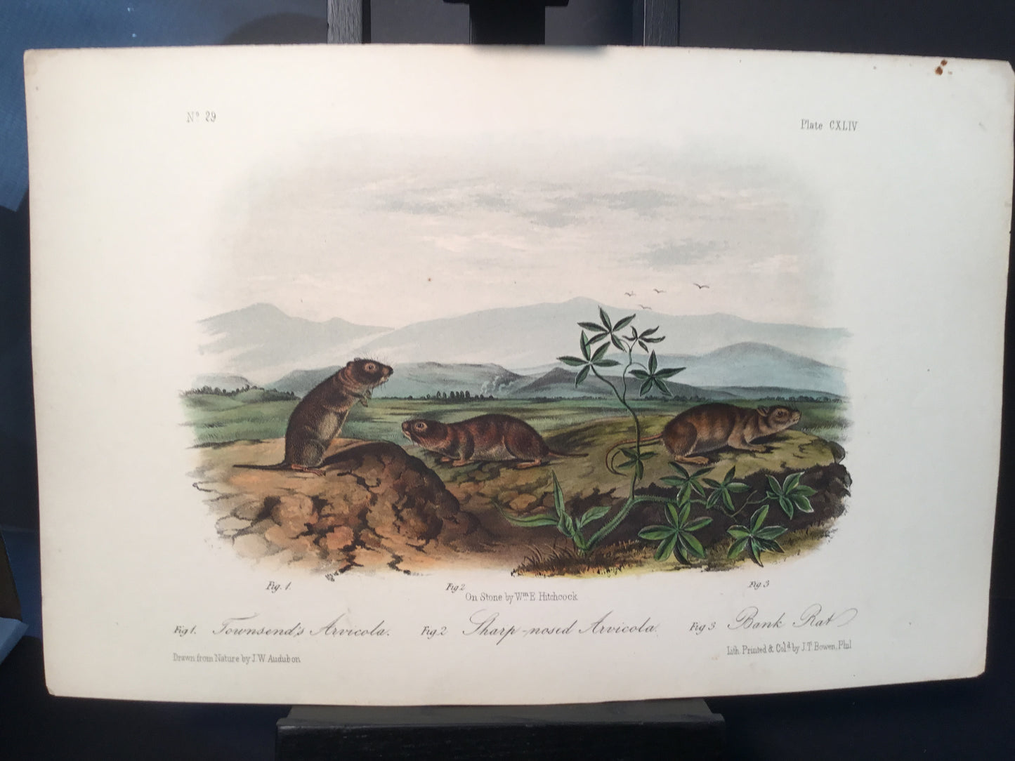 Found in 1923 by Mary A. Guerrero Lord who was visiting her mother Henrietta Potter James, who owned a house on the corner of South 9th Street and what is now known as Bonaparte Ct. in Philadelphia. These Octavo prints were bundled and abandoned in a back alley near the second studio that Bowen used in the 1800’s when producing Audubon’s birds and quadrupeds. Some of these prints have penciled in instructions from Victor Audubon. One has his signature. Others have Pattern written across the top. Many have worn corners, as one would expect from a print that was a touchstone for colorists. Generally, there are two or three of each image. We cannot definitively say that all were pattern prints, but evidently they were purposely kept or for some time by Bowen, and perhaps forgotten after his death. We will provide a Certificate of Authenticity noting that they are part of the Lord-Hopkins collection - the last known prints to come from Bowen’s studio.