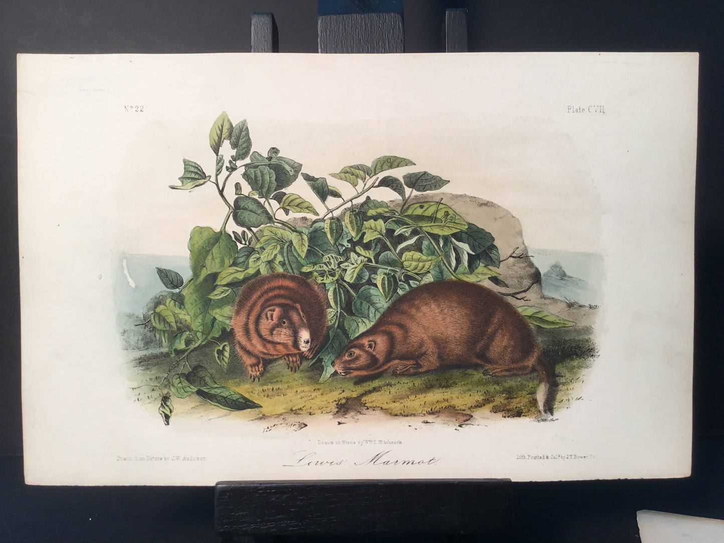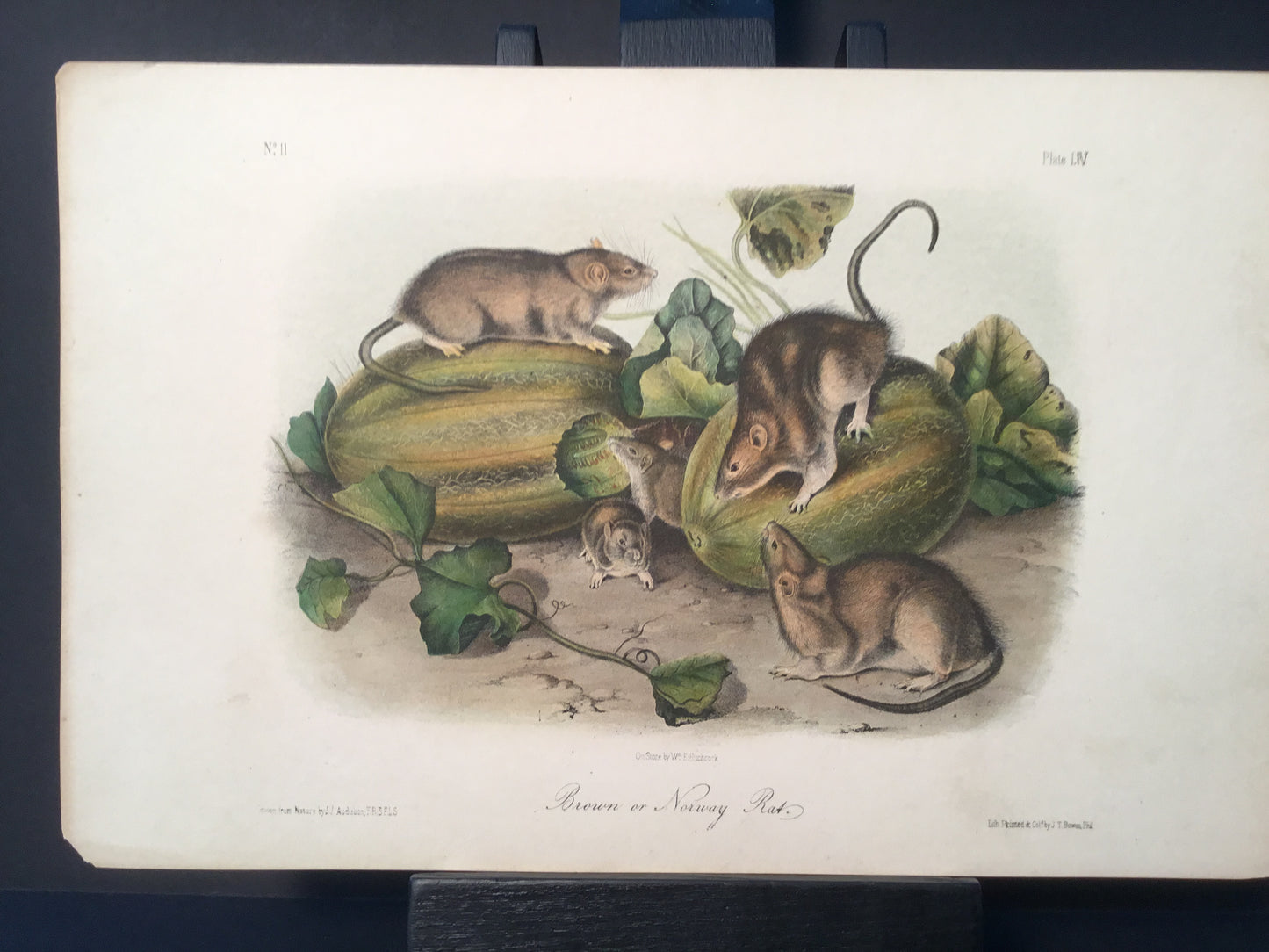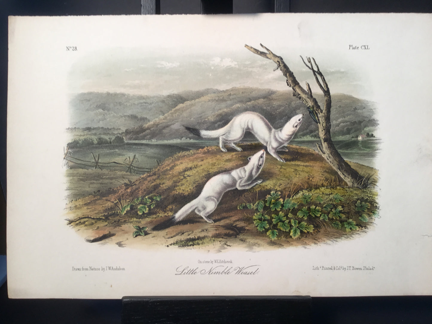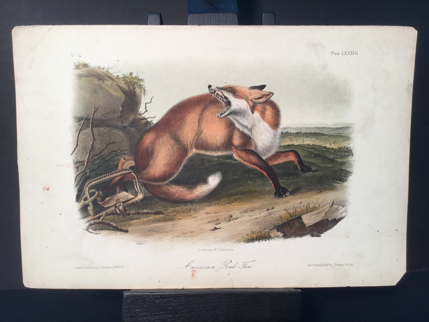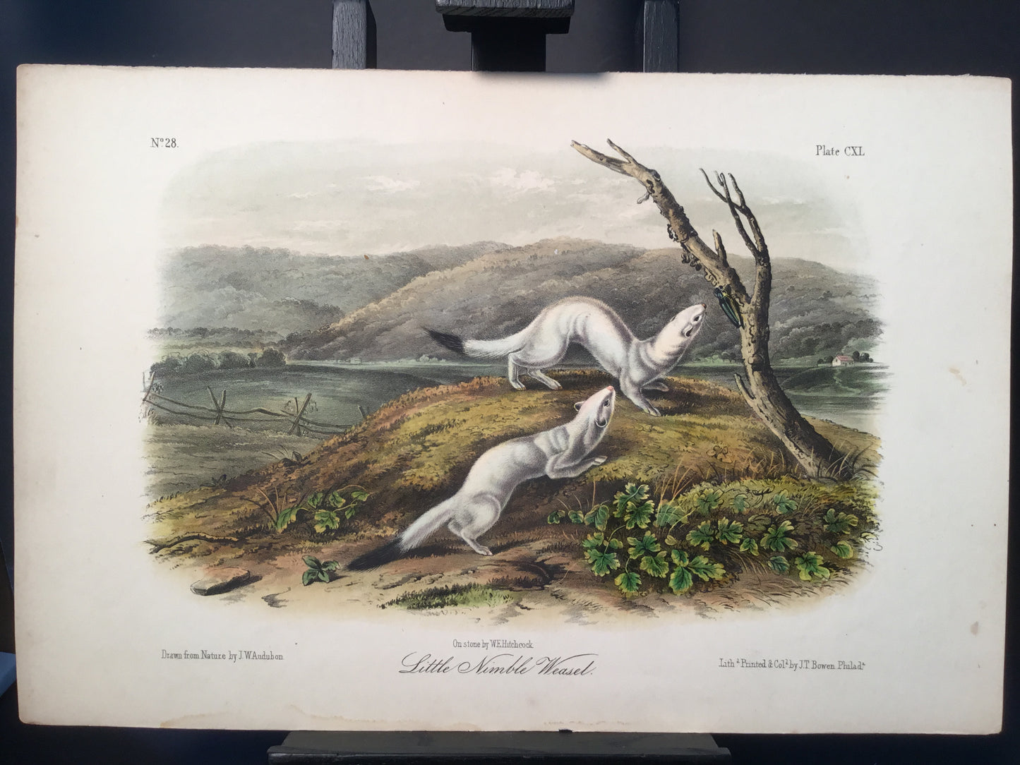 Found in 1923 by Mary A. Guerrero Lord who was visiting her mother Henrietta Potter James, who owned a house on the corner of South 9th Street and what is now known as Bonaparte Ct. in Philadelphia. These Octavo prints were bundled and abandoned in a back alley near the second studio that Bowen used in the 1800’s when producing Audubon’s birds and quadrupeds. Some of these prints have penciled in instructions from Victor Audubon. One has his signature. Others have Pattern written across the top. Many have worn corners, as one would expect from a print that was a touchstone for colorists. Generally, there are two or three of each image. We cannot definitively say that all were pattern prints, but evidently they were purposely kept or for some time by Bowen, and perhaps forgotten after his death. We will provide a Certificate of Authenticity noting that they are part of the Lord-Hopkins collection - the last known prints to come from Bowen’s studio.