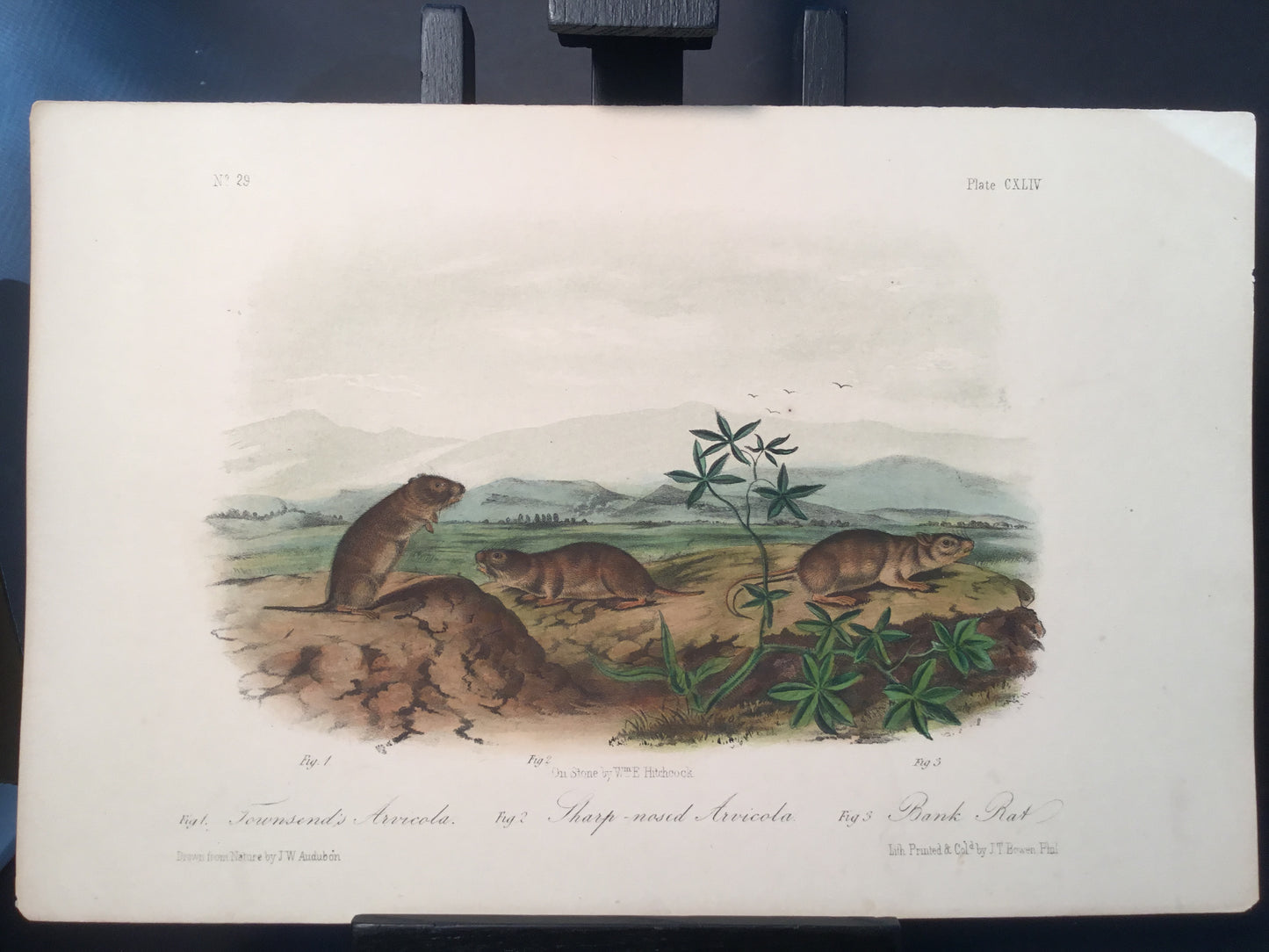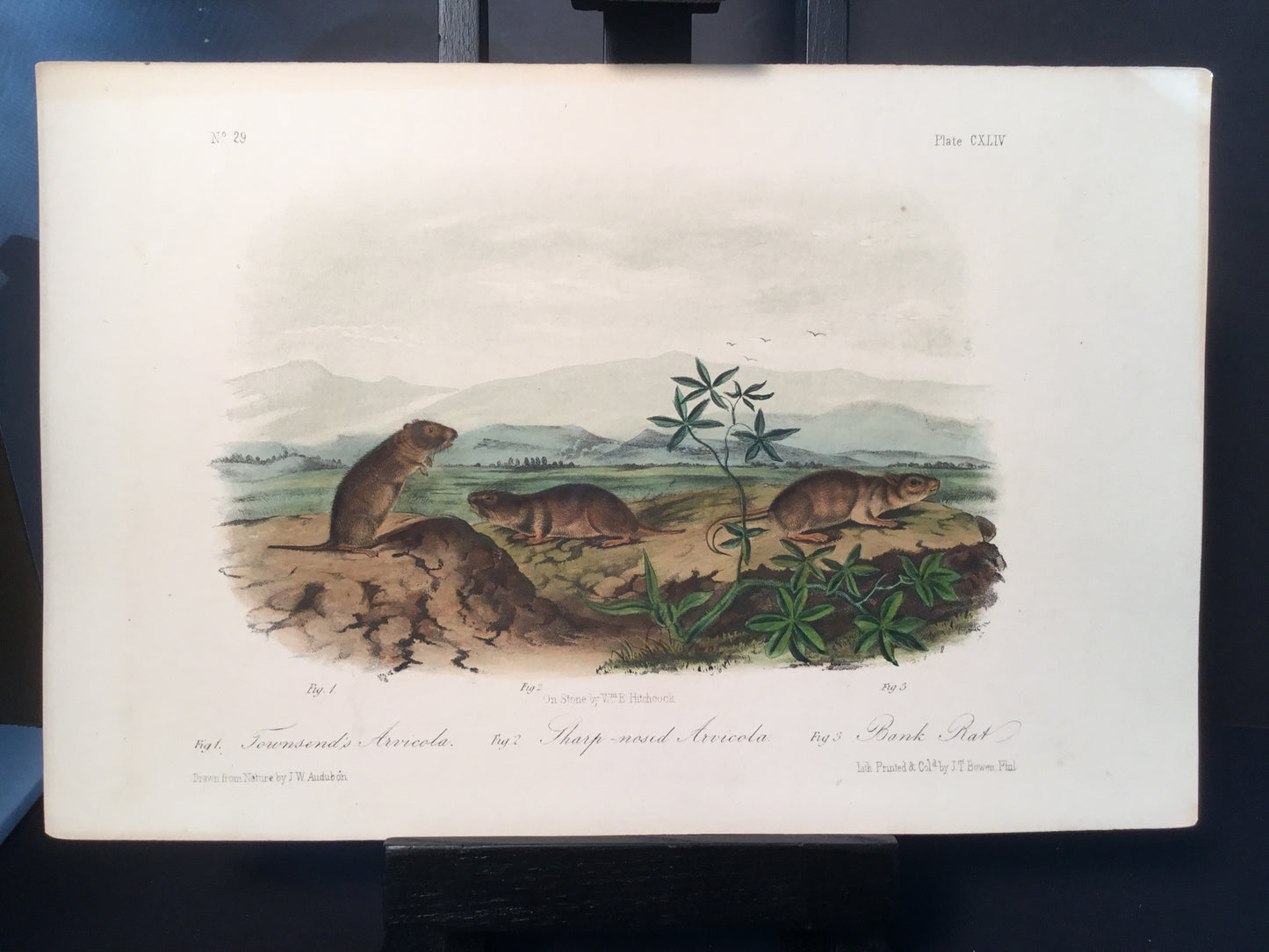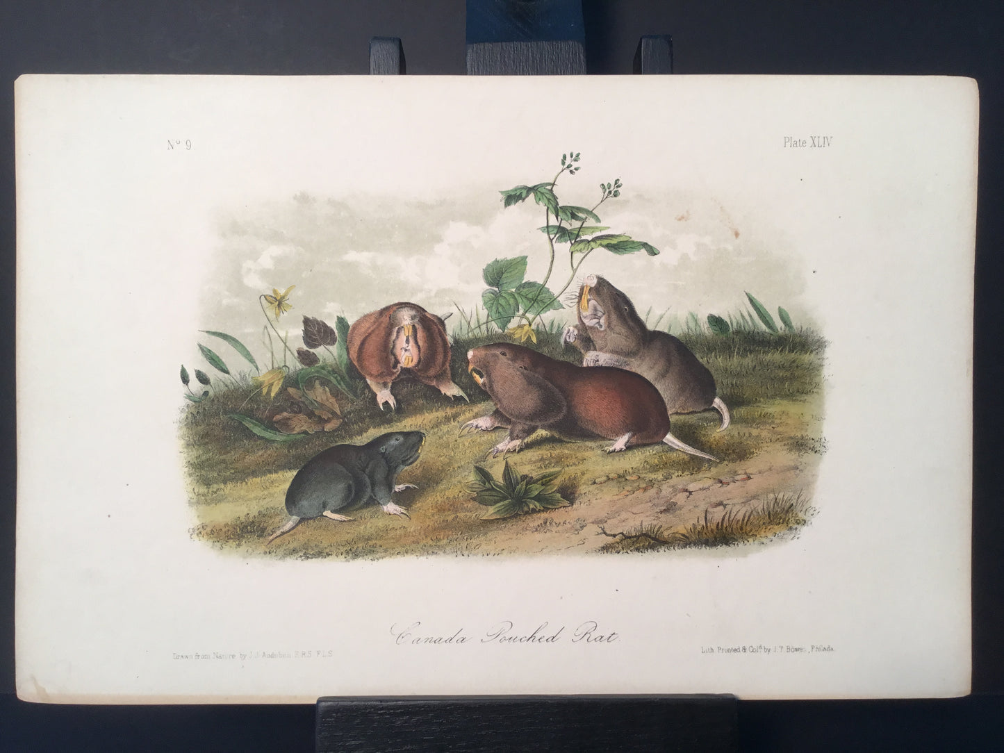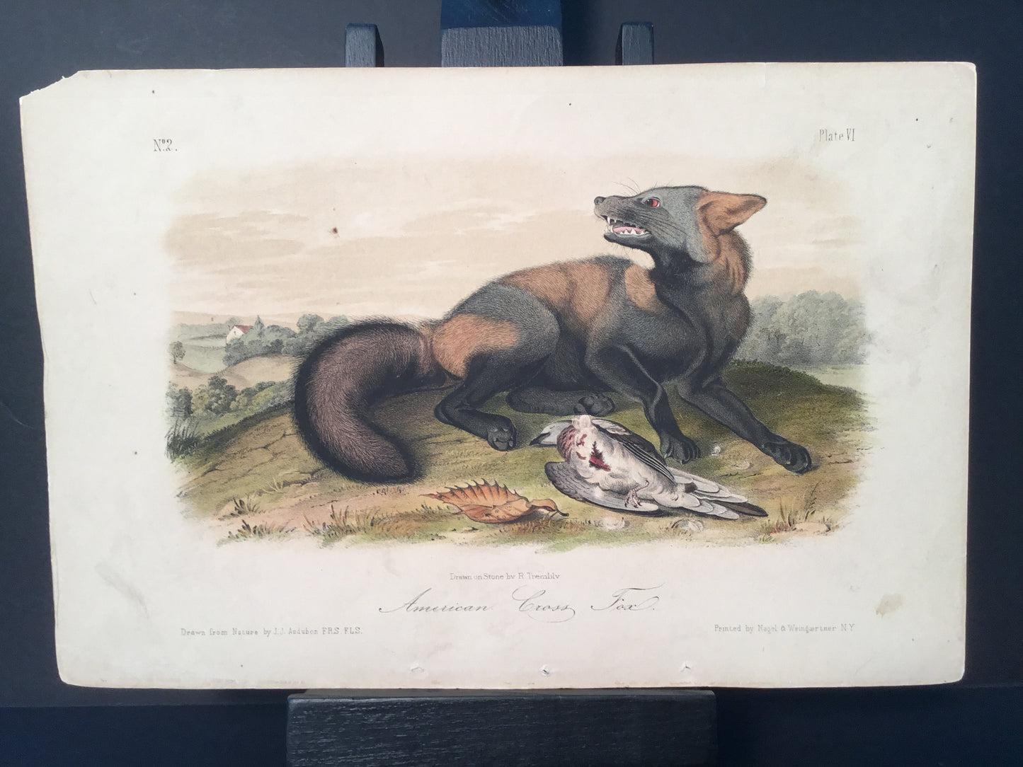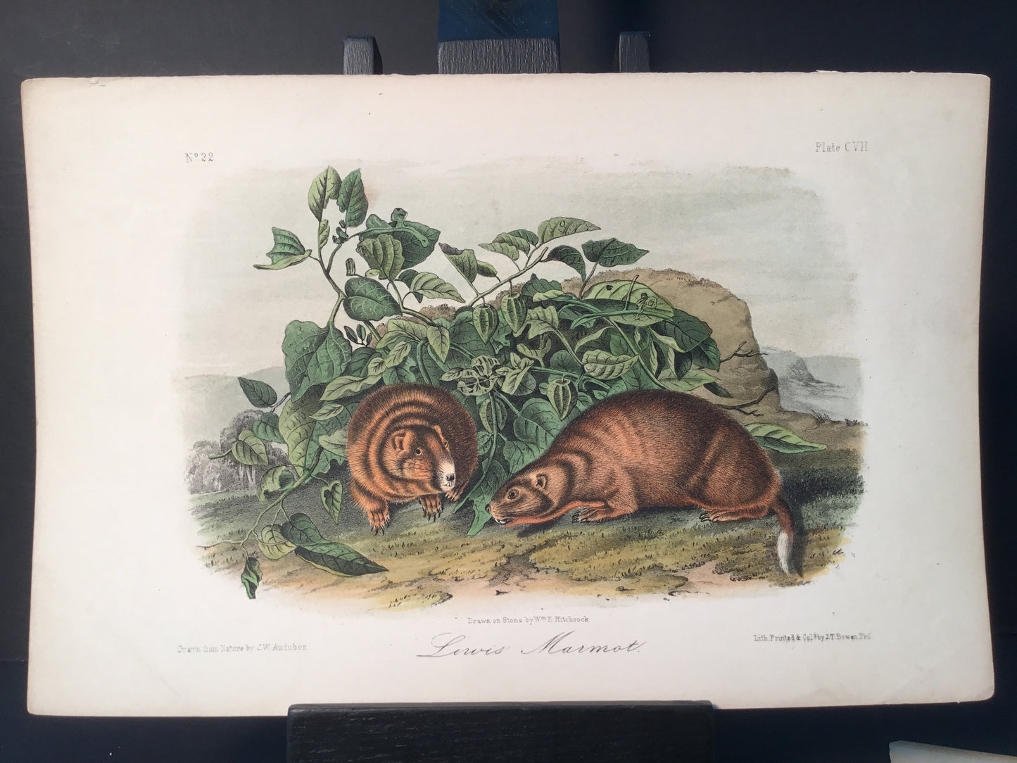 Found in 1923 by Mary A. Guerrero Lord who was visiting her mother Henrietta Potter James, who owned a house on the corner of South 9th Street and what is now known as Bonaparte Ct. in Philadelphia. These Octavo prints were bundled and abandoned in a back alley near the second studio that Bowen used in the 1800’s when producing Audubon’s birds and quadrupeds. Some of these prints have penciled in instructions from Victor Audubon. One has his signature. Others have Pattern written across the top. Many have worn corners, as one would expect from a print that was a touchstone for colorists. Generally, there are two or three of each image. We cannot definitively say that all were pattern prints, but evidently they were purposely kept or for some time by Bowen, and perhaps forgotten after his death. We will provide a Certificate of Authenticity noting that they are part of the Lord-Hopkins collection - the last known prints to come from Bowen’s studio.