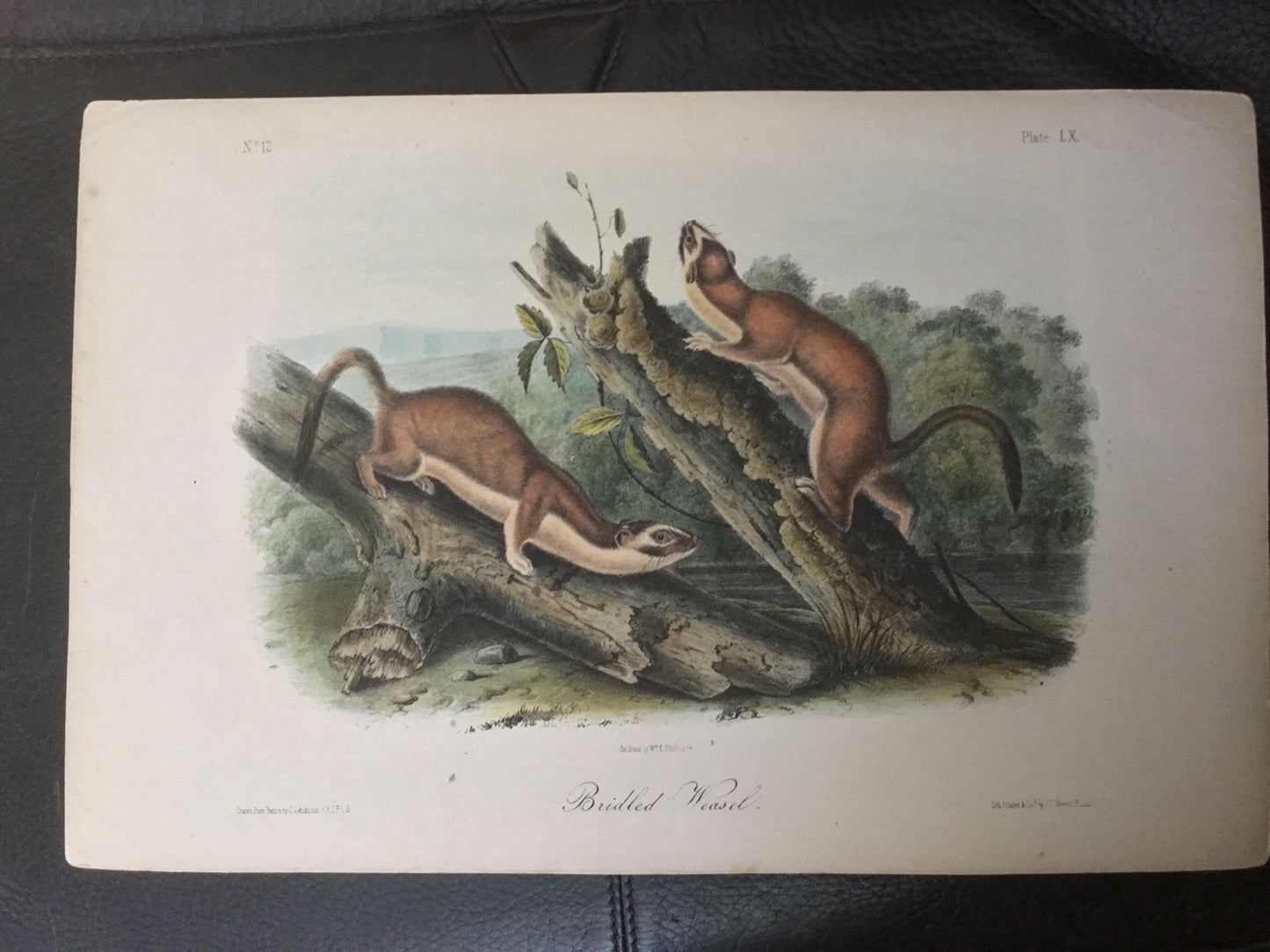 Found by accident in 1923 with marked pattern prints from J. T. Bowen’s Philadelphia studio. COA included. Condition as shown. This print is from the last group of prints known to have come out of Bowen’s studio. Well-worn, it is possible that it too was used as a pattern print during the time Bowen lithographed Audubon’s quadrupeds. This print speaks to the history of American printmaking. A once in a generation historic find. Reasonably priced.