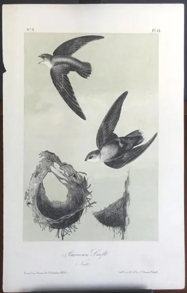 Audubon Octavo American Swift, plate 44, uncolored test sheet. 7 x 11