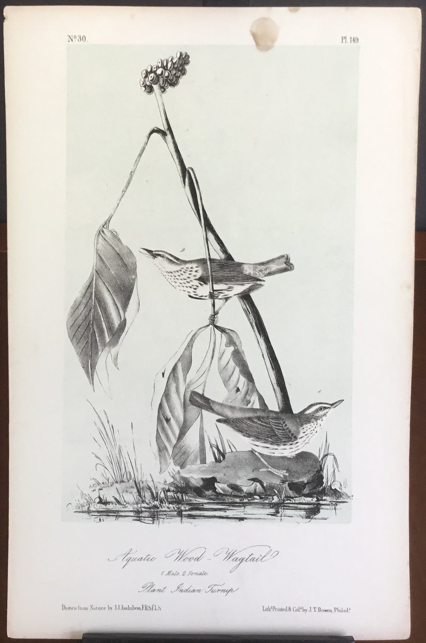 Audubon Octavo Aquatic Wood Wagtail (2), plate 149, uncolored test sheet, 7 x 11
