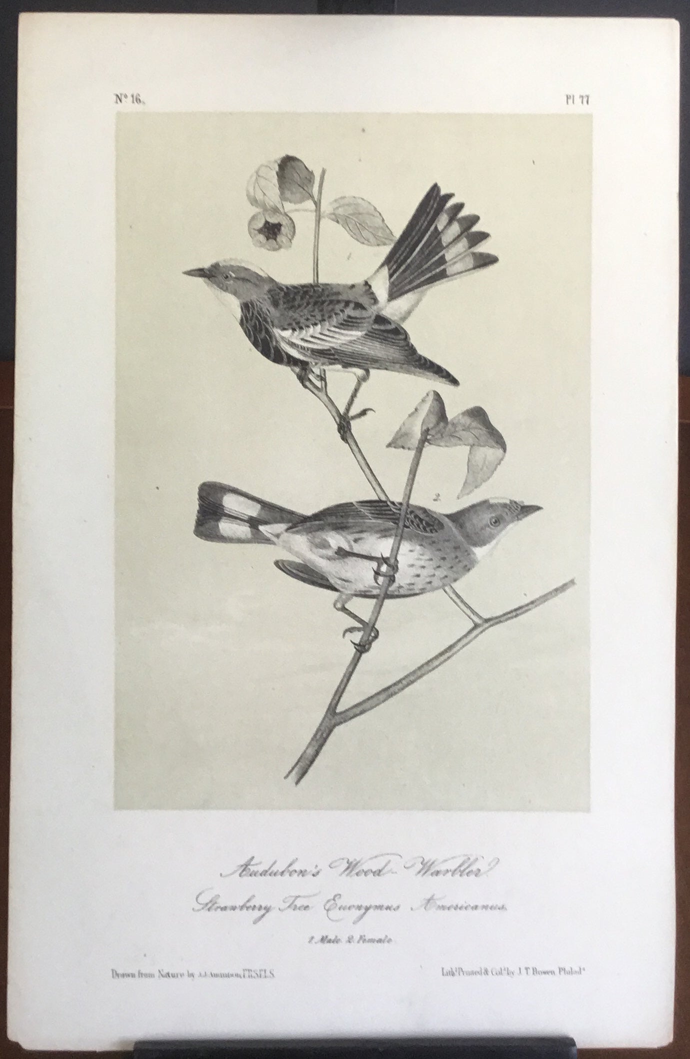 Audubon Octavo Audubon’s Wood Warbler, plate 77, uncolored test sheet, tinted. 7 x 11