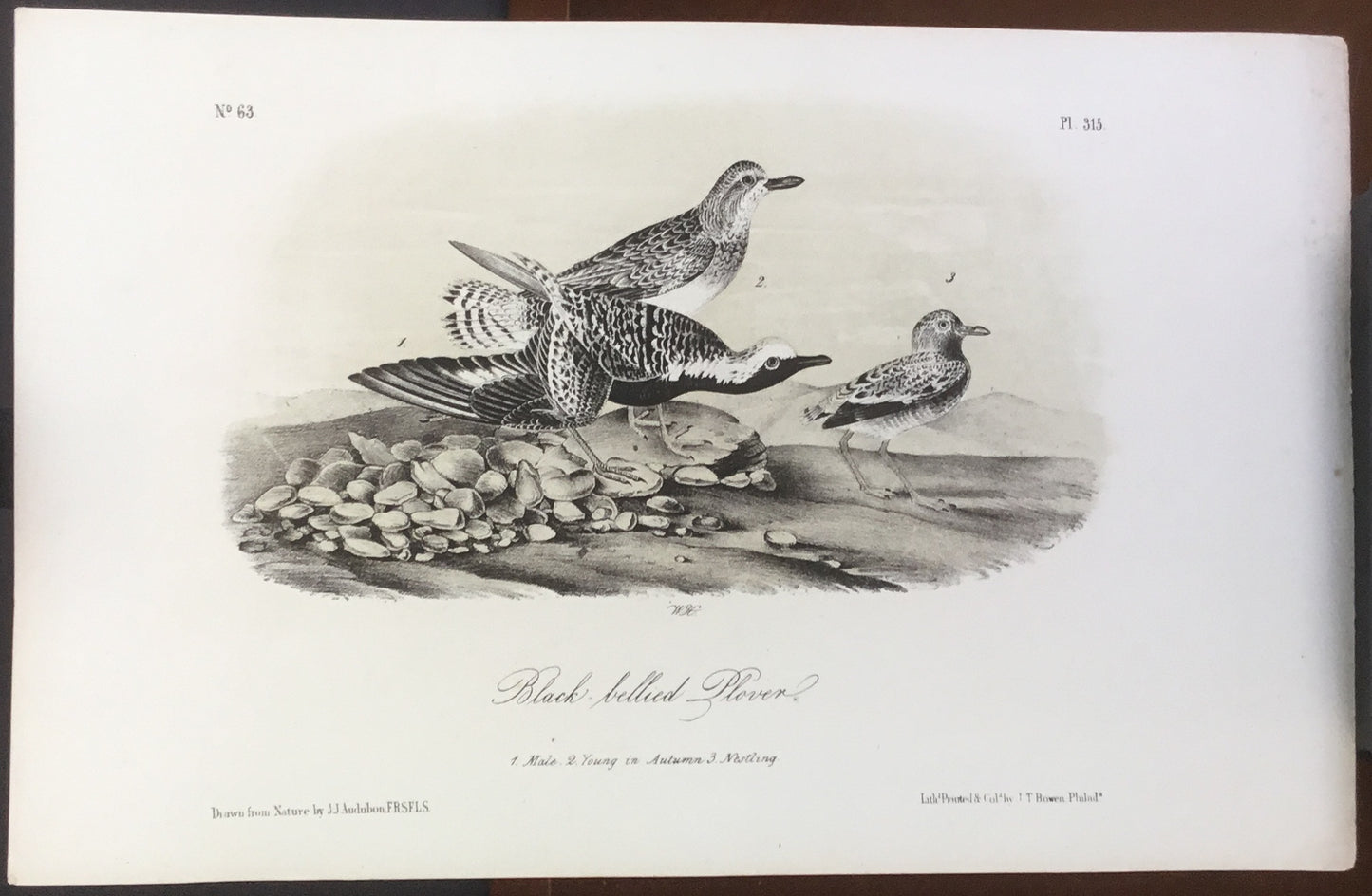 Audubon Octavo Black-bellied Plover, plate 315, uncolored test sheet, 7 x 11