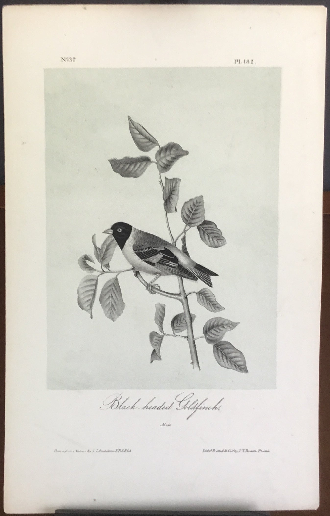 Audubon Octavo Black-headed Goldfinch (2), plate 182, uncolored test sheet, 7 x 11