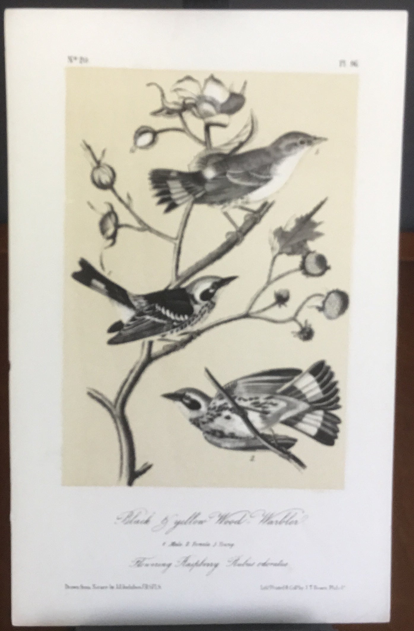Audubon Octavo Black and Yellow Wood Warbler, plate 96, uncolored test sheet, 7 x 11
