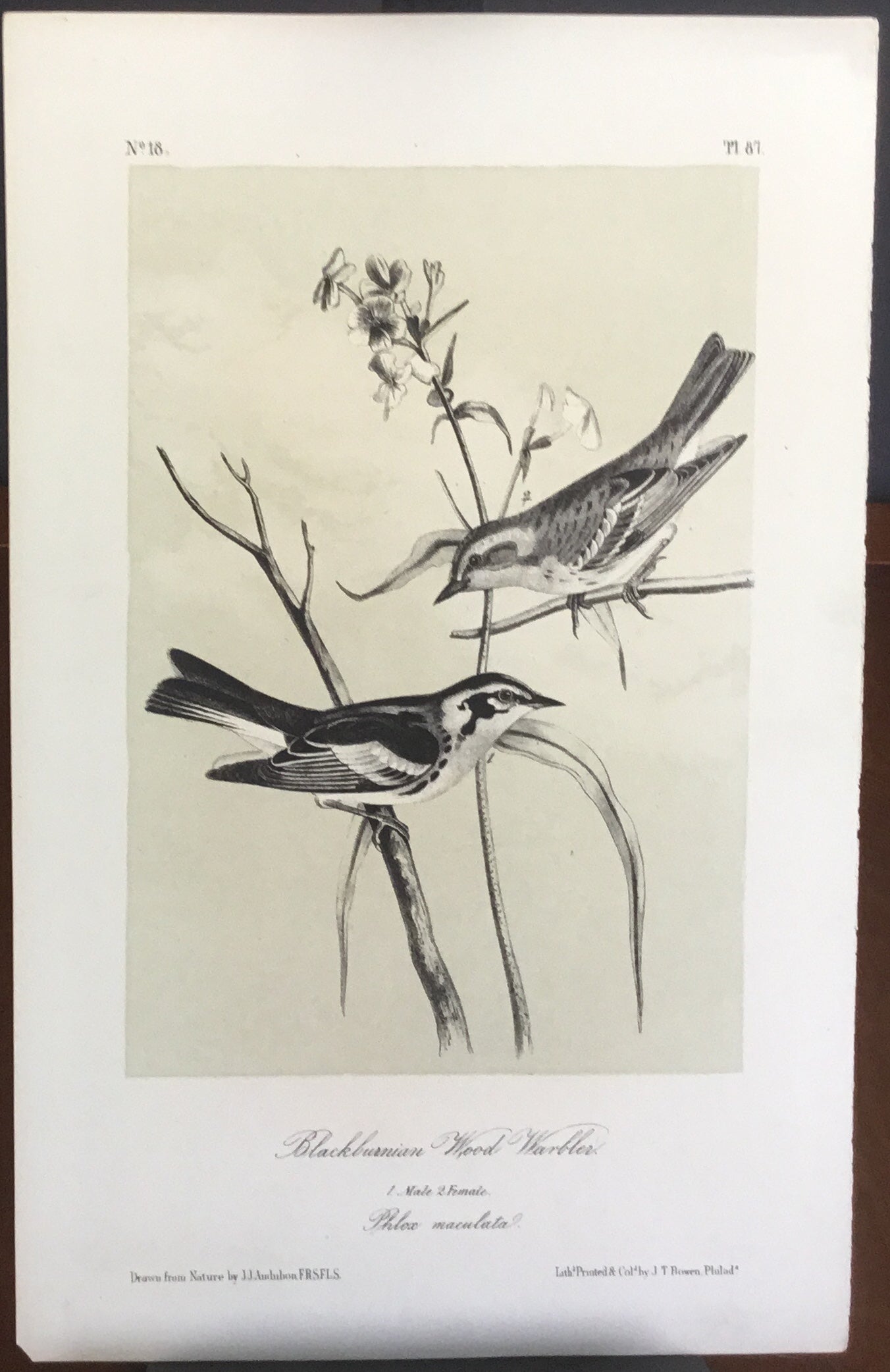 Audubon Octavo Blackburnian Wood Warbler, plate 81, uncolored test sheet, 7 x 11