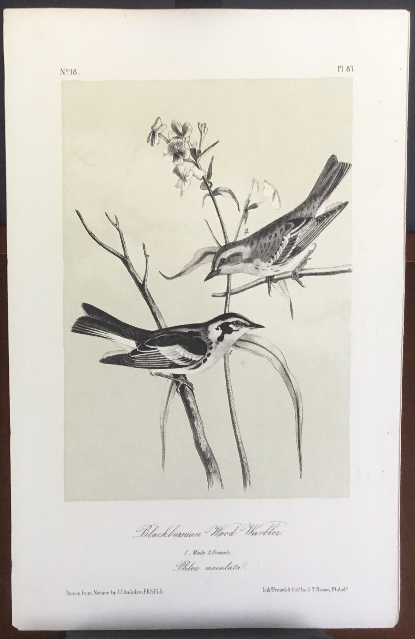 Audubon Octavo Blackburnian Wood Warbler (2), plate 81, uncolored test sheet, 7 x 11