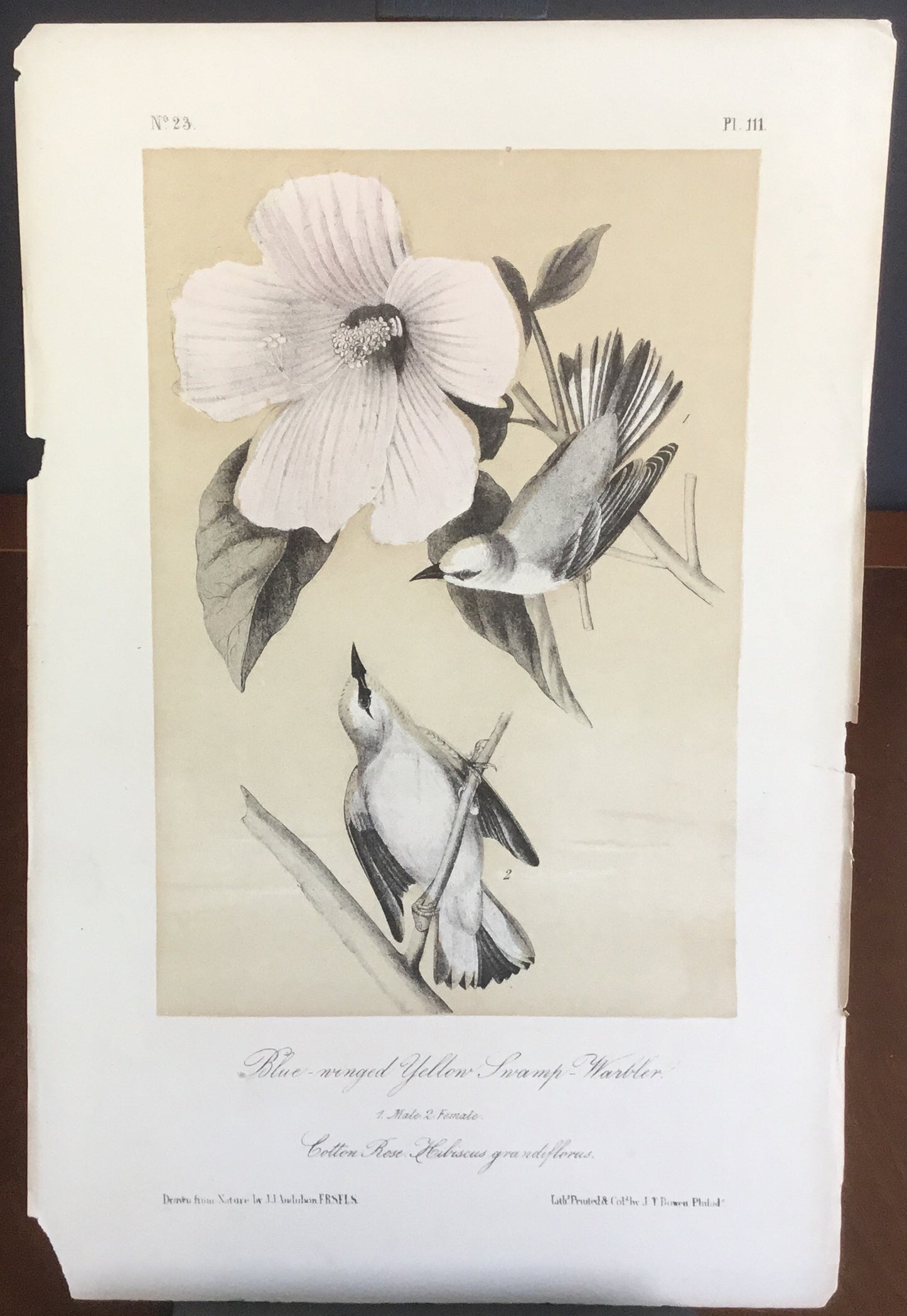 Audubon Octavo Blue-winged Yellow Swamp Warbler (2), plate 111, uncolored test sheet, 7 x 11