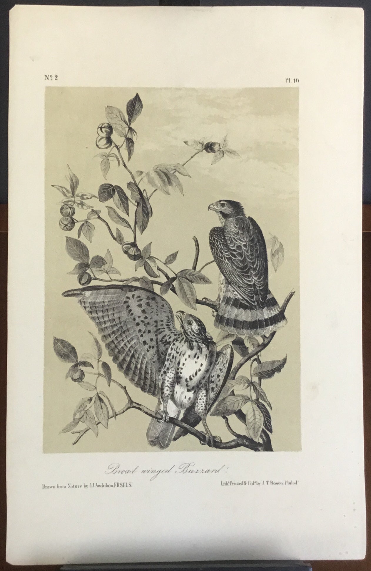 Audubon Octavo Broad-winged Buzzard, plate 10, uncolored test sheet. 7 x 11