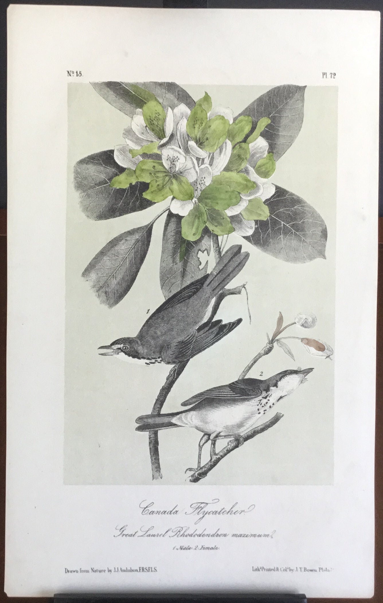 Audubon Octavo Canada Flycatcher, plate 72, uncolored test sheet. 7 x 11