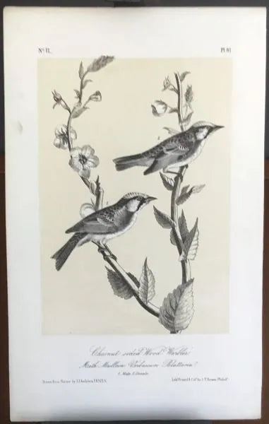Audubon Octavo Chestnut-sided Wood Warbler, plate 81, uncolored test sheet, 7 x 11