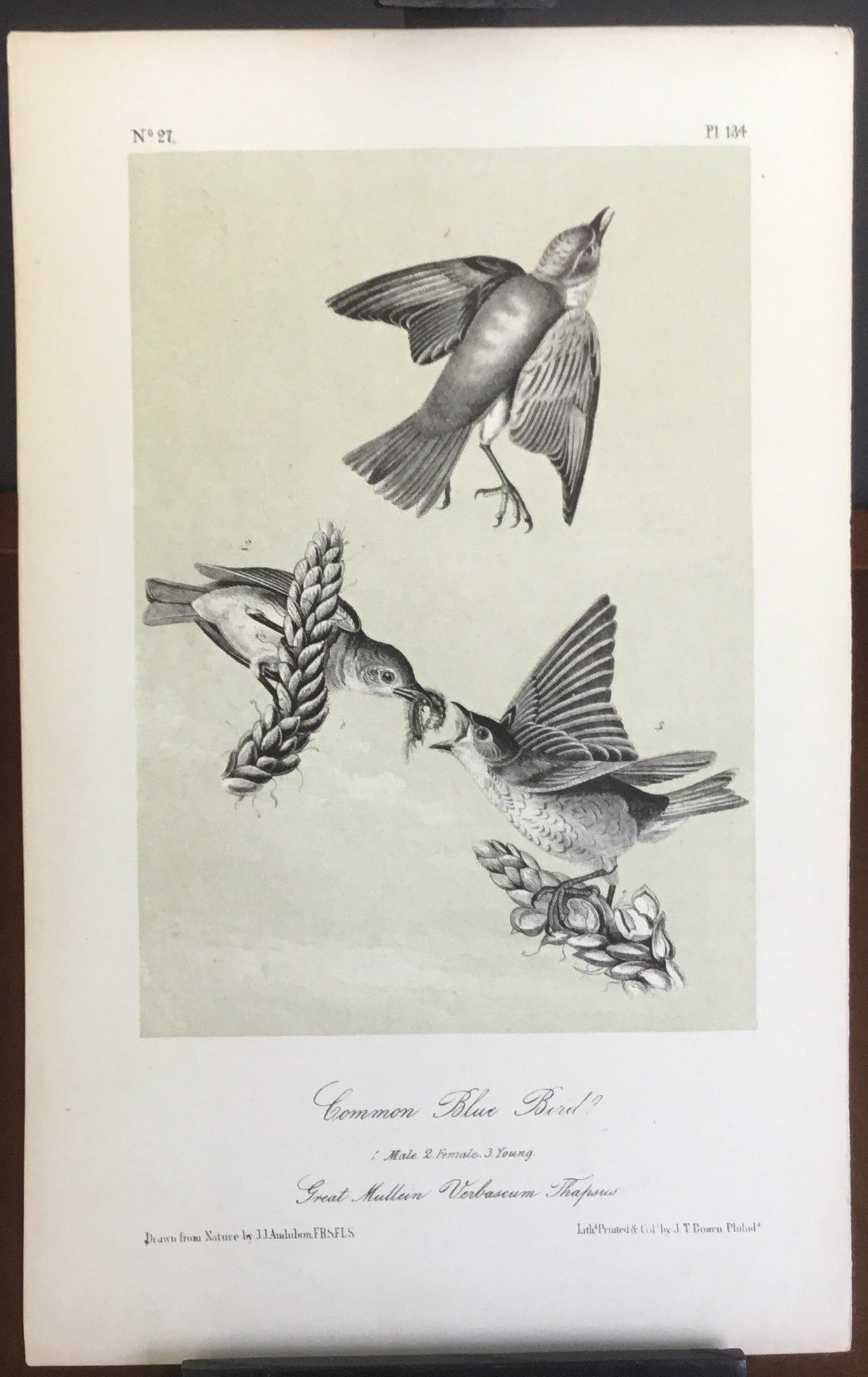 Audubon Octavo Common Bluebird, plate 134, uncolored test sheet, 7 x 11