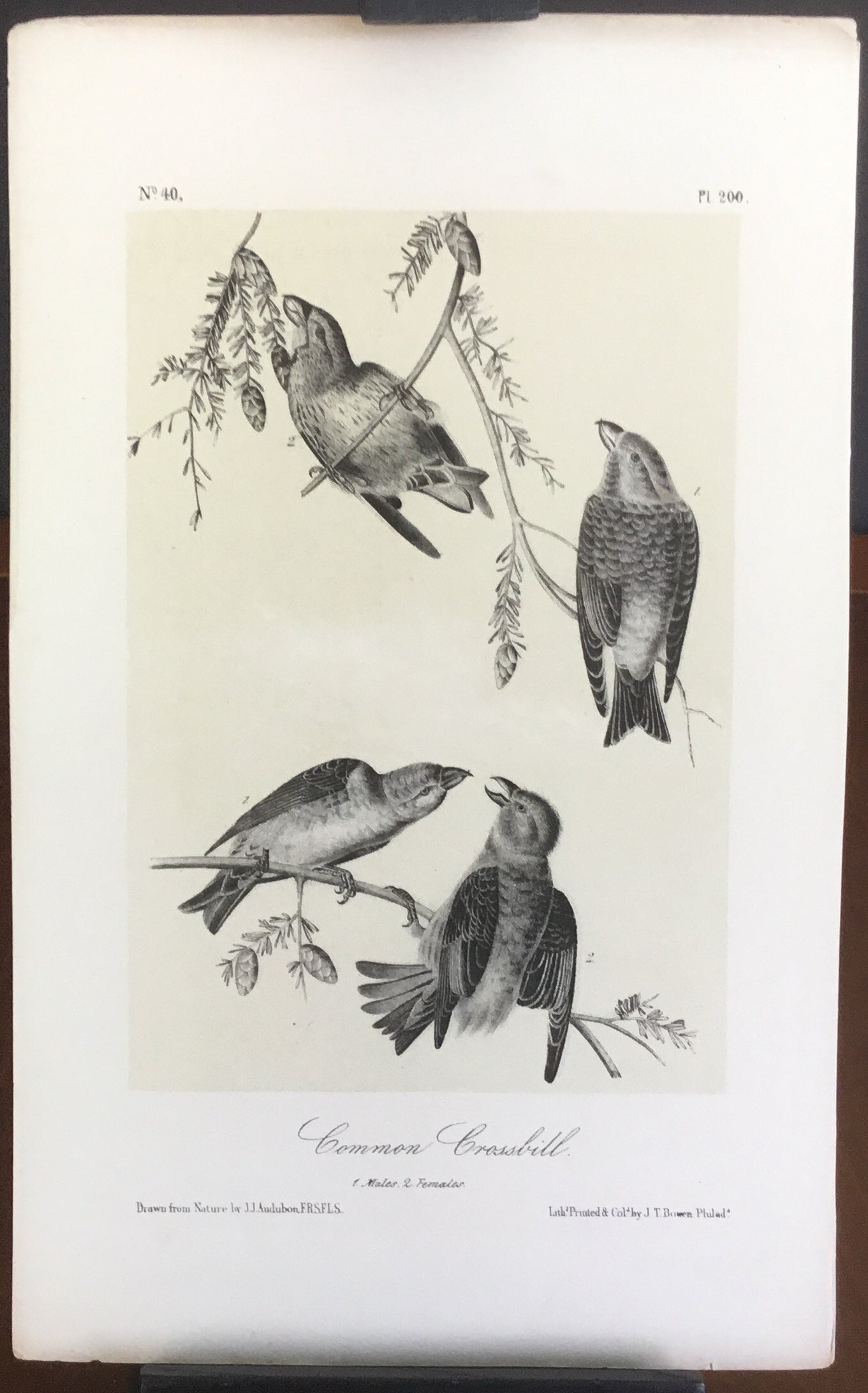 Audubon Octavo Common Crossbill, plate 200, uncolored test sheet, 7 x 11