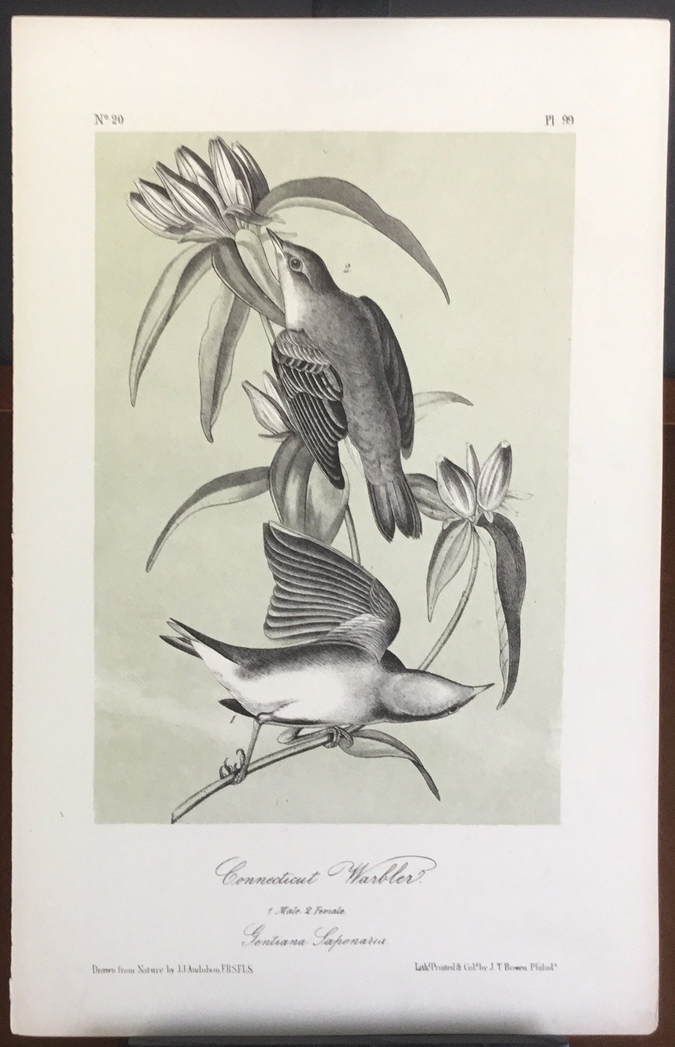 Audubon Octavo Connecticut Warbler, plate 99, uncolored test sheet, darker tint, 7 x 11