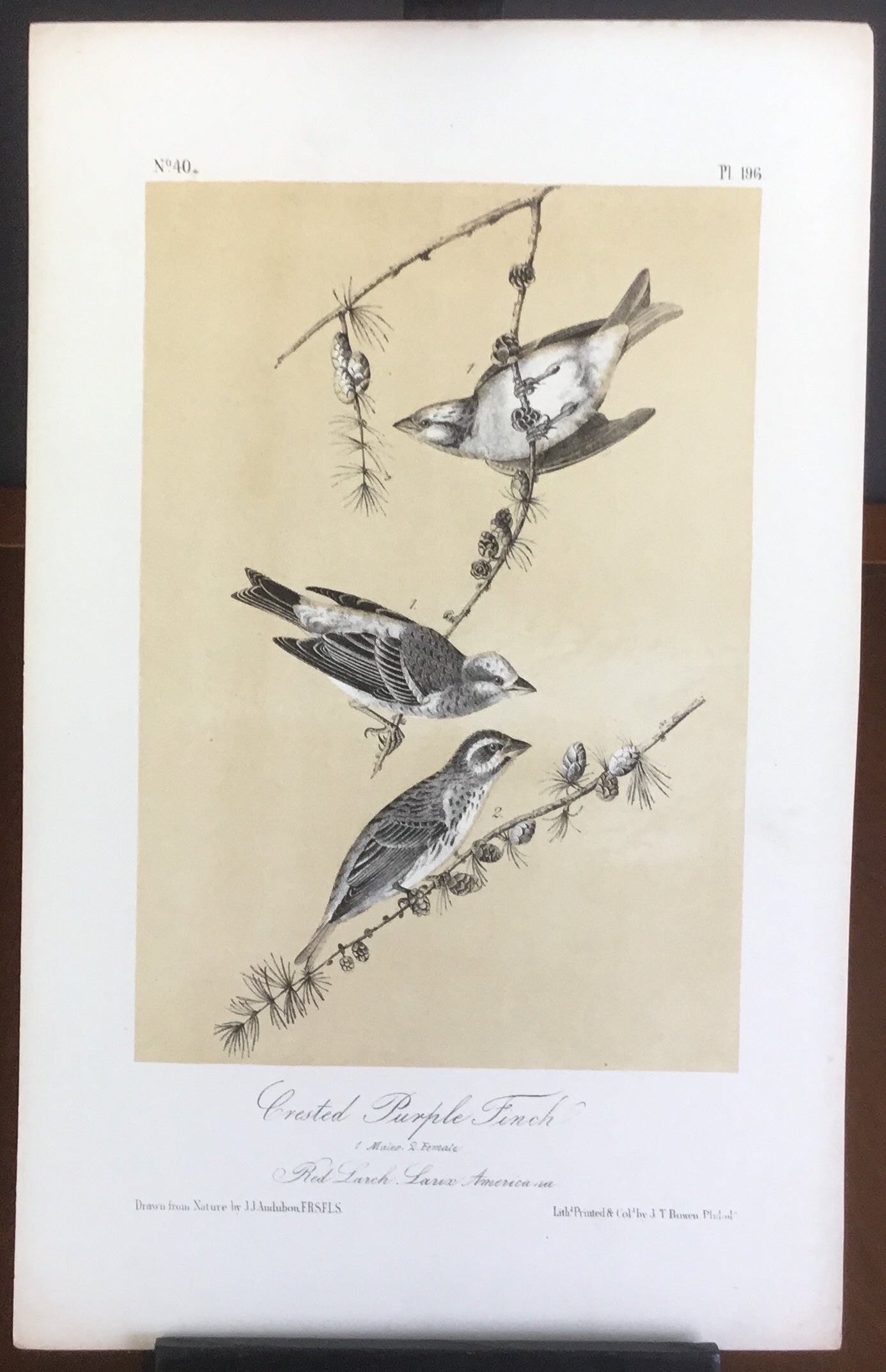 Audubon Octavo Crested Purple Finch, plate 196, uncolored test sheet, 7 x 11