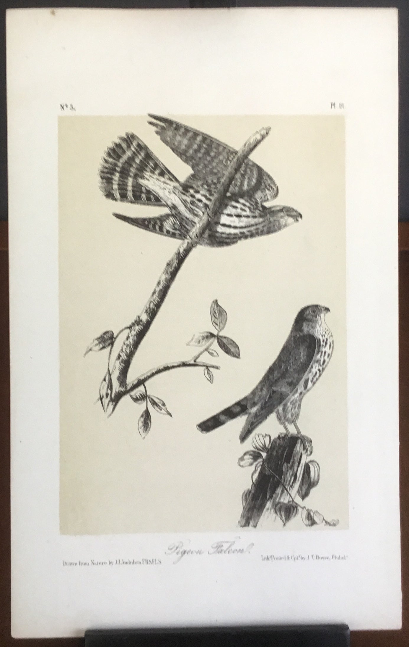 Audubon Octavo Pigeon Falcon, plate 21, uncolored test sheet. 7 x 11