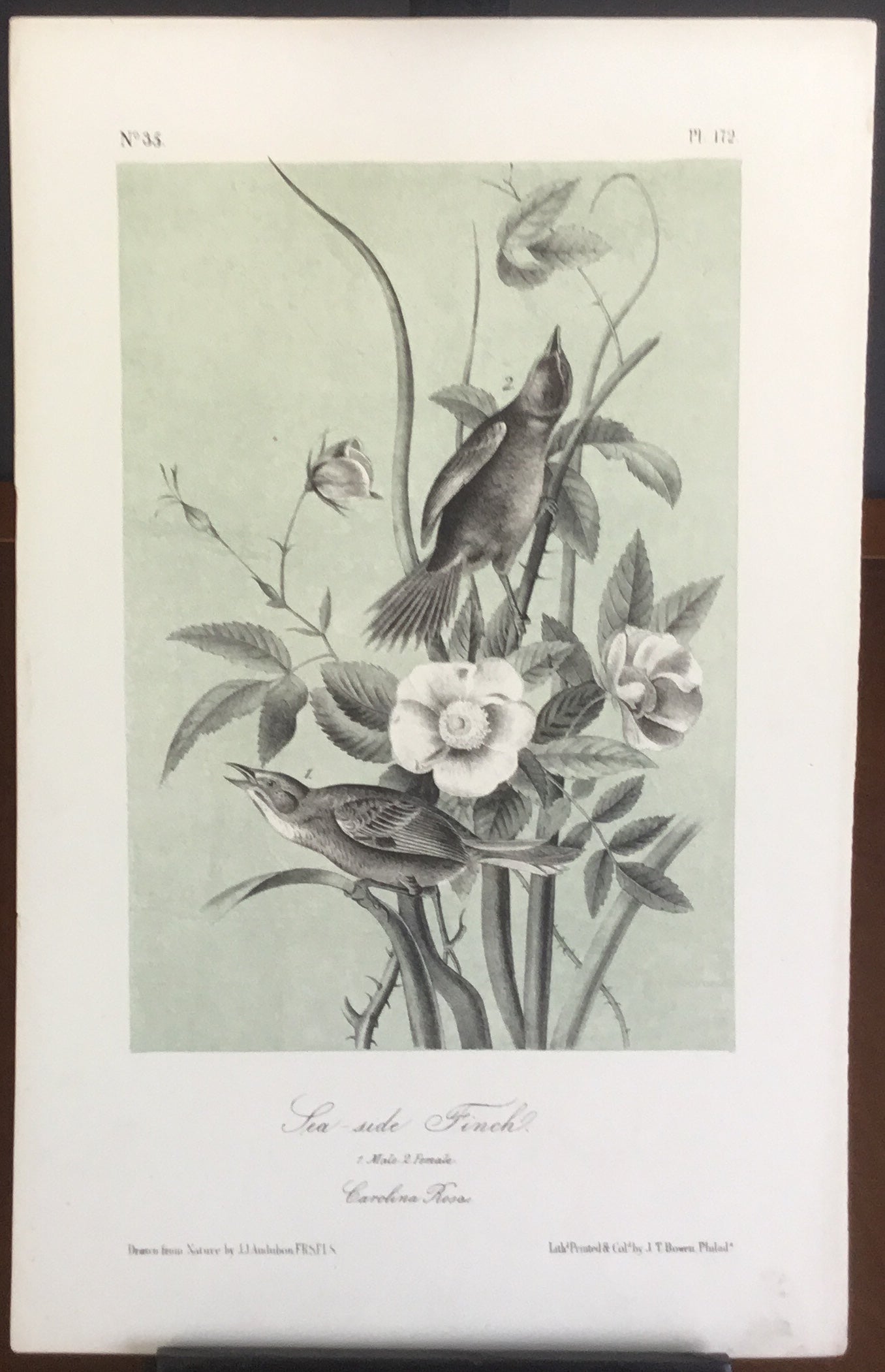 Audubon Octavo Sea-side Finch (3), plate 172, uncolored test sheet, 7 x 11