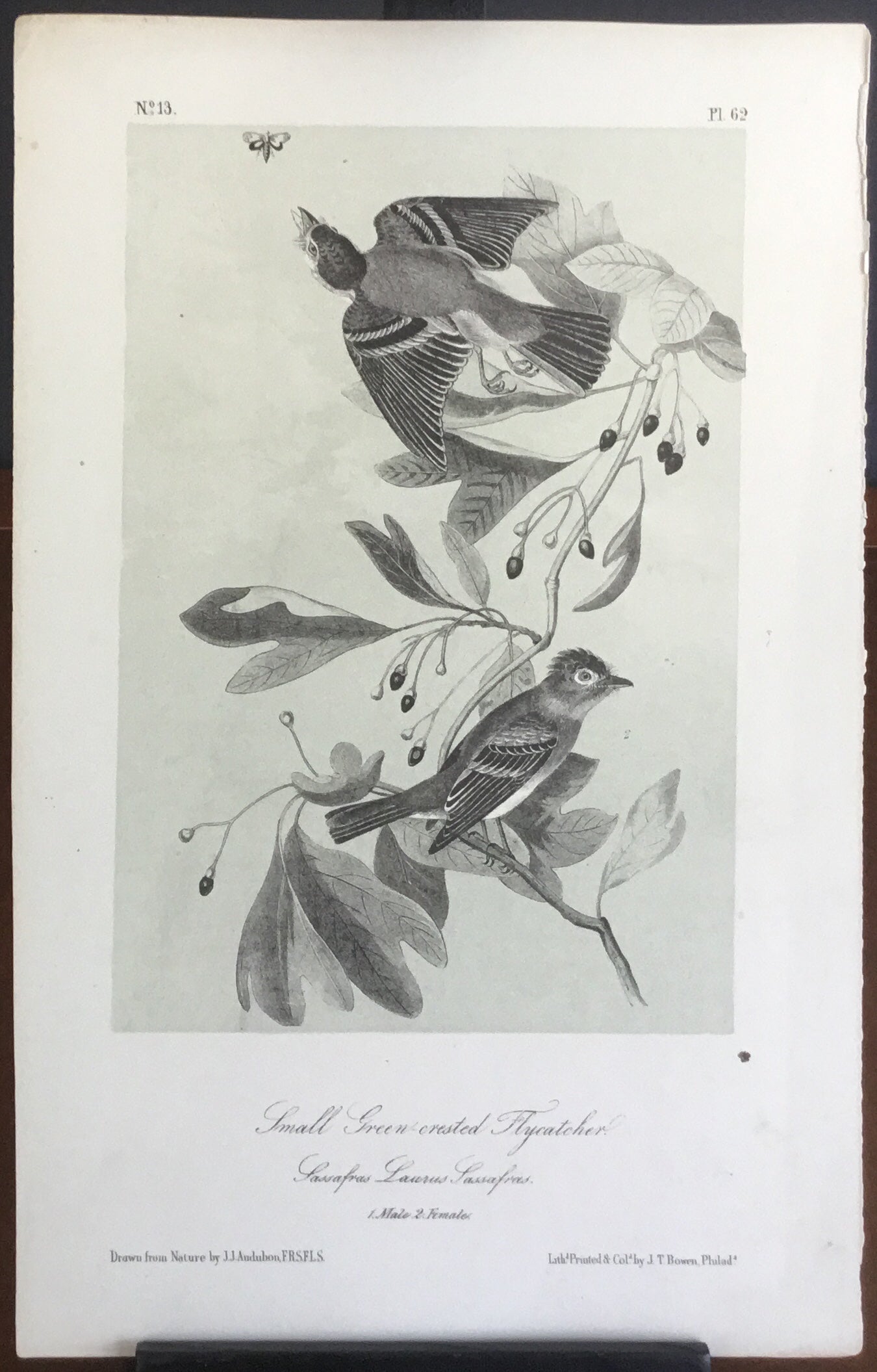 Audubon Octavo Small Green-crested Flycatcher, plate 62, uncolored test sheet. 7 x 11