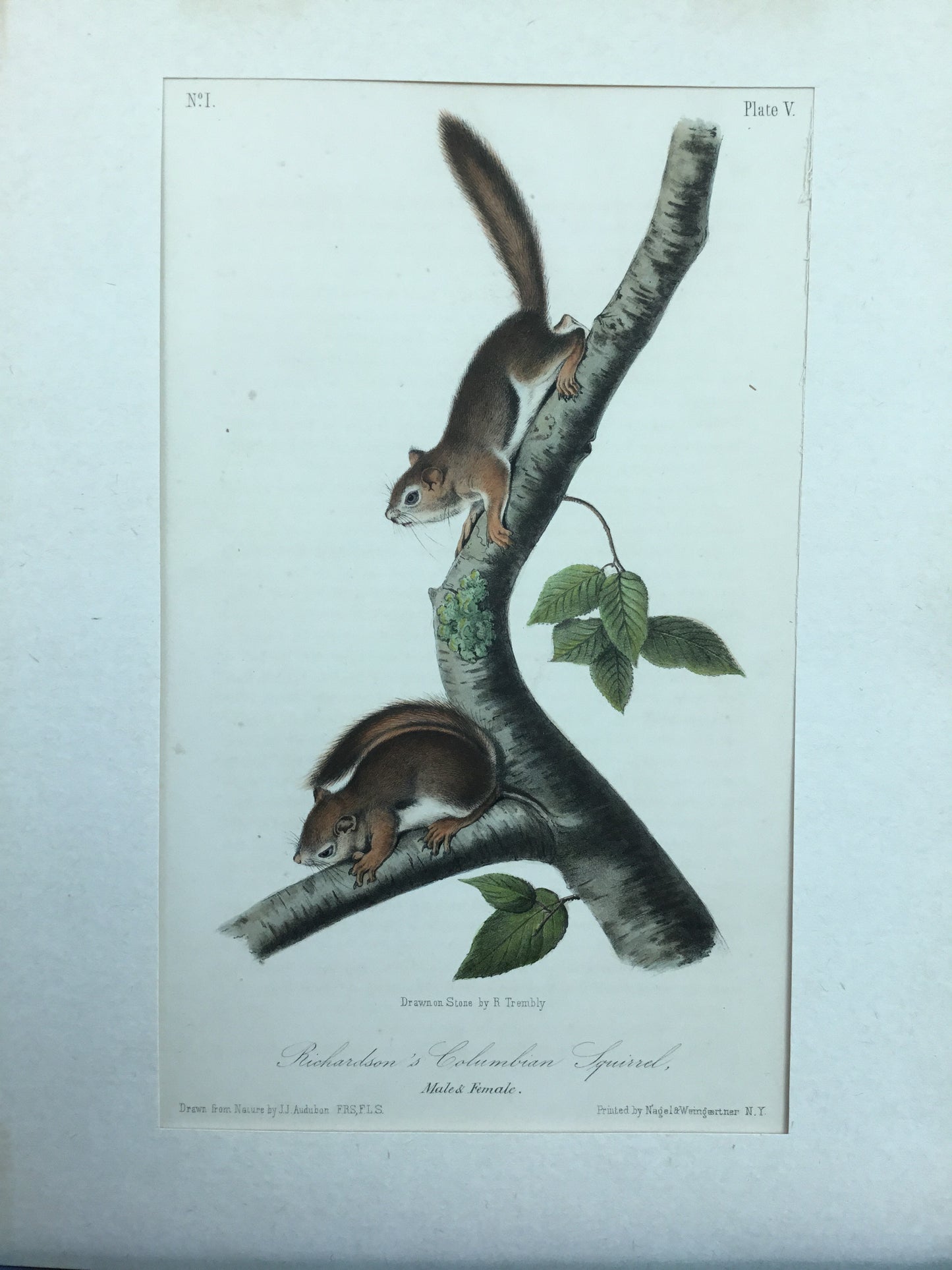 Audubon Original Octavo Quadruped 5, Richardson’s Colombian Squirrel measures 6 1/2 x 10 inches. Good condition. Light ink transfer from description page.