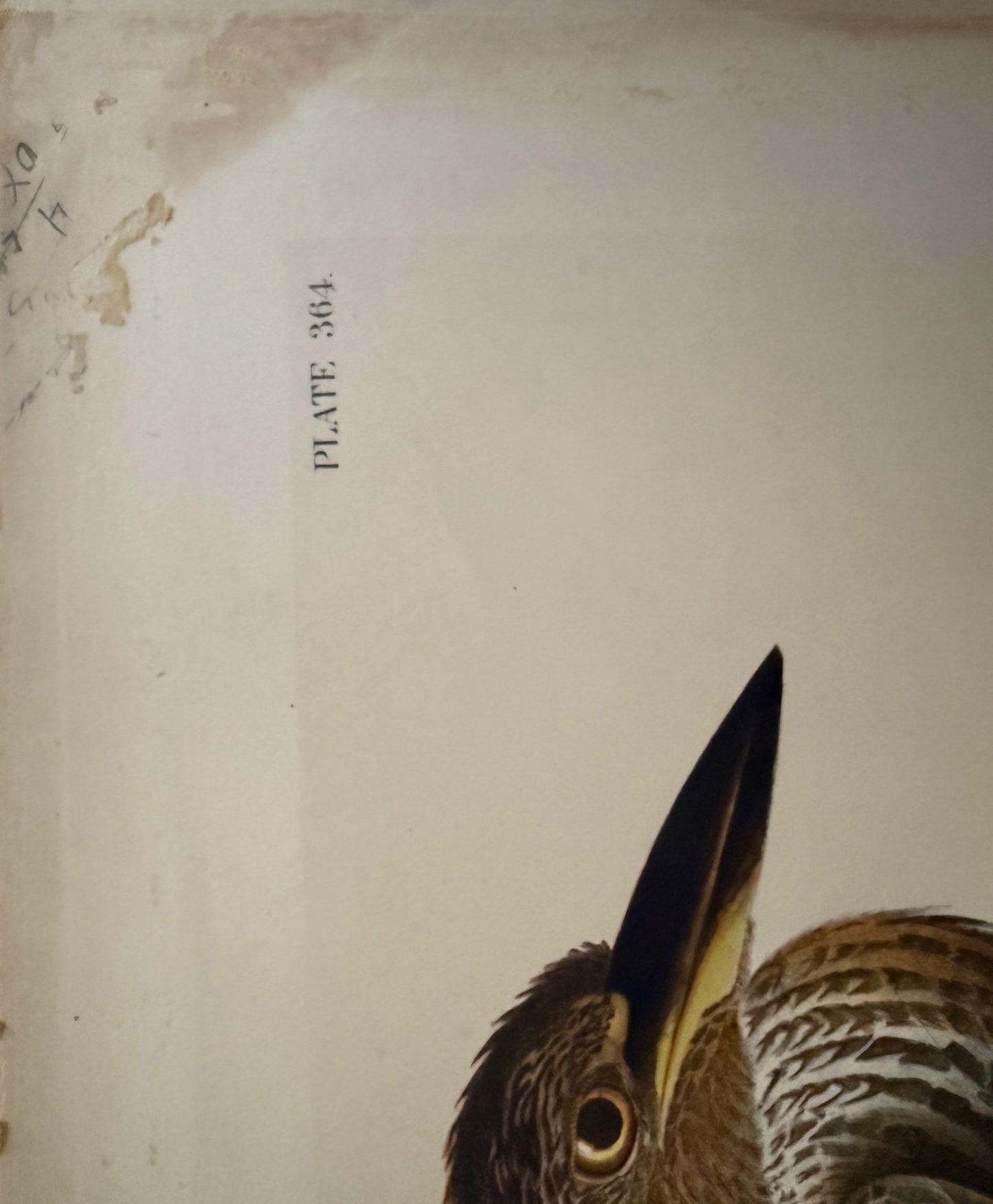 Family owned since original purchase and displayed in same home between Trenton and Princeton, NJ. The original image was composed by Audubon in 1831 near Charleston, SC.